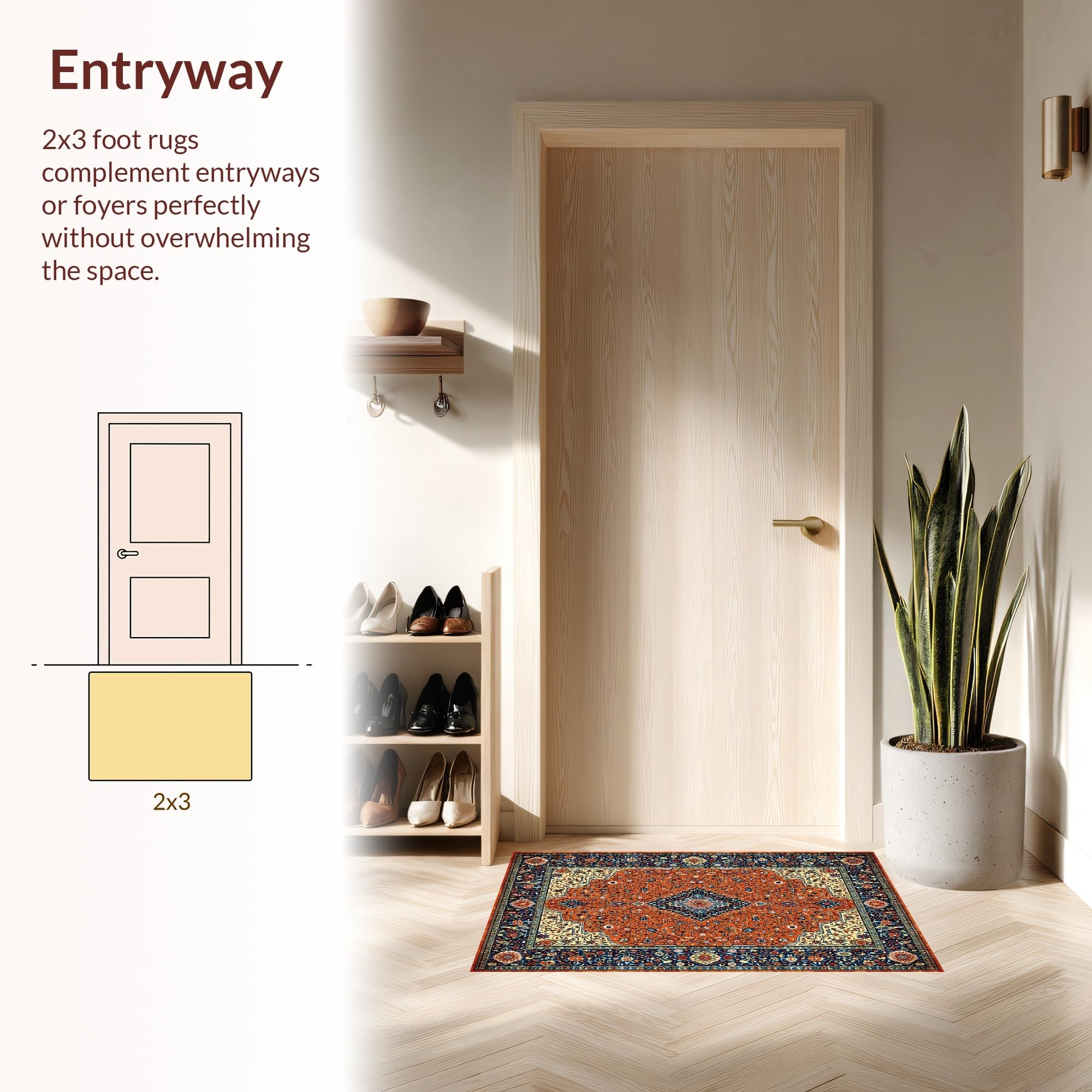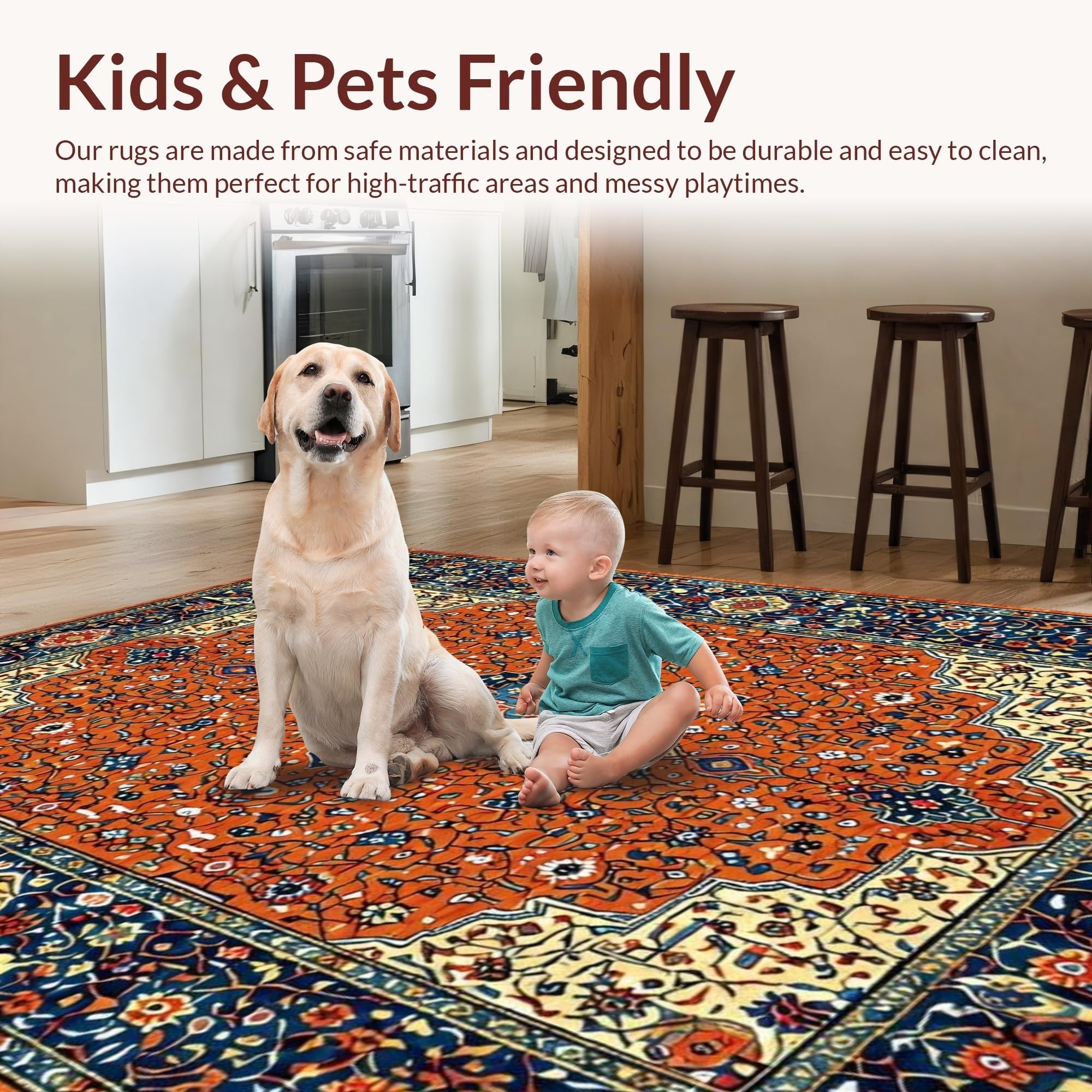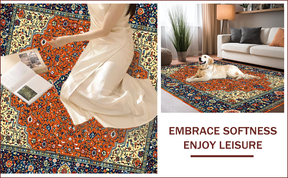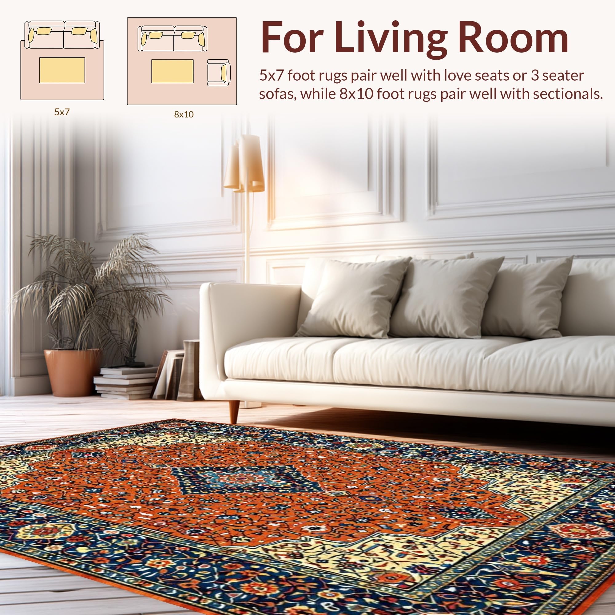 Ultra Soft Area Rug, Non Slip, Stain Resistant, Washable Area Rugs for Living Room, Bedroom, Elegant Multicolor Floral Pattern(Red) Overview: