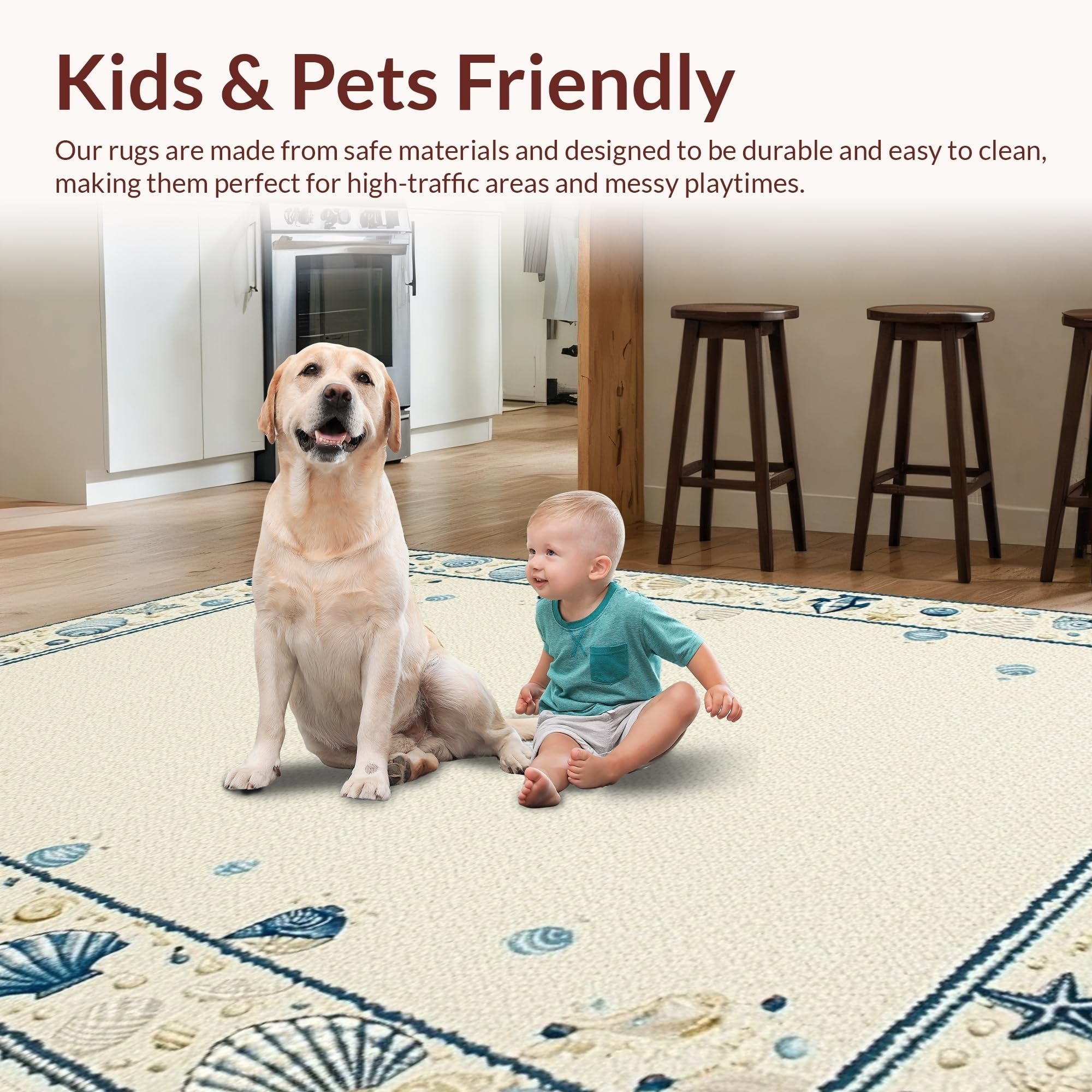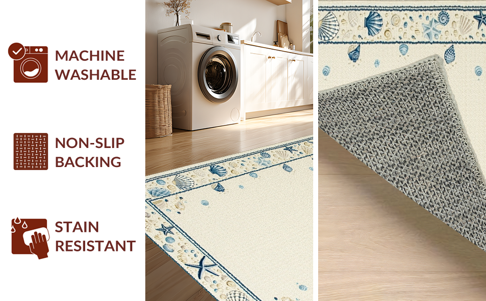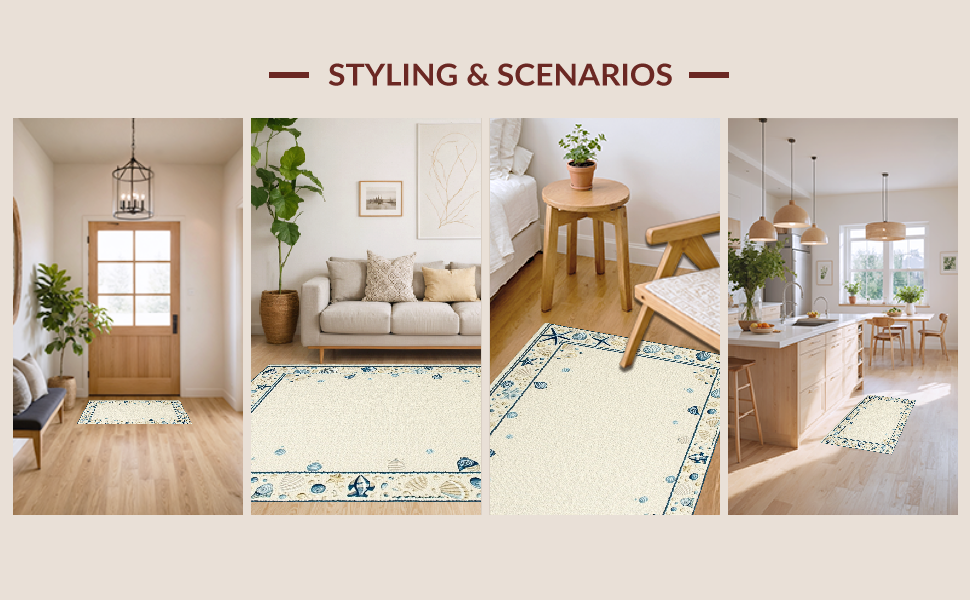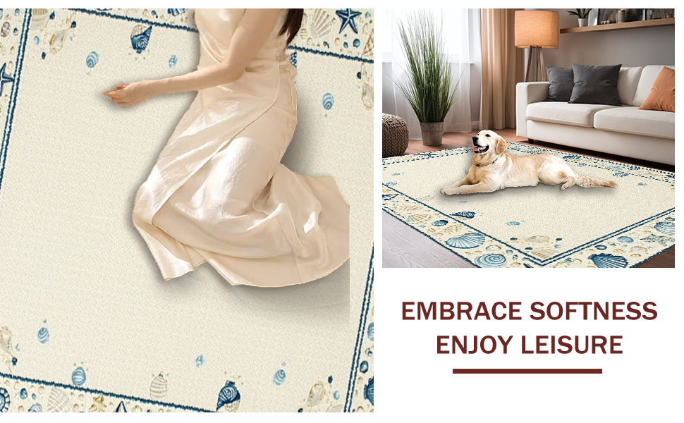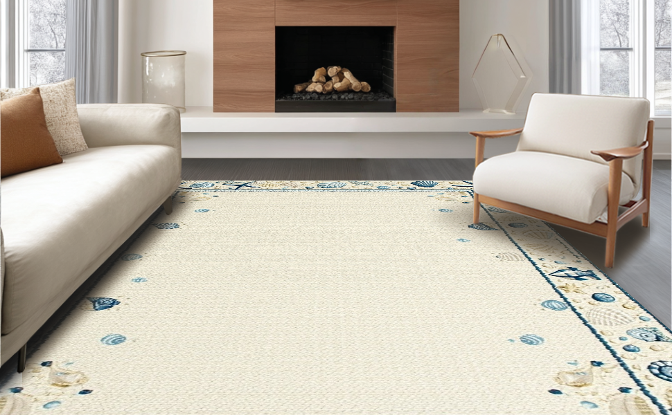 Ultra Soft Area Rug, Non Slip, Stain Resistant, Washable Area Rugs for Living Room, Bedroom, Elegant Multicolor Shell Arrangement(Beige) Overview: