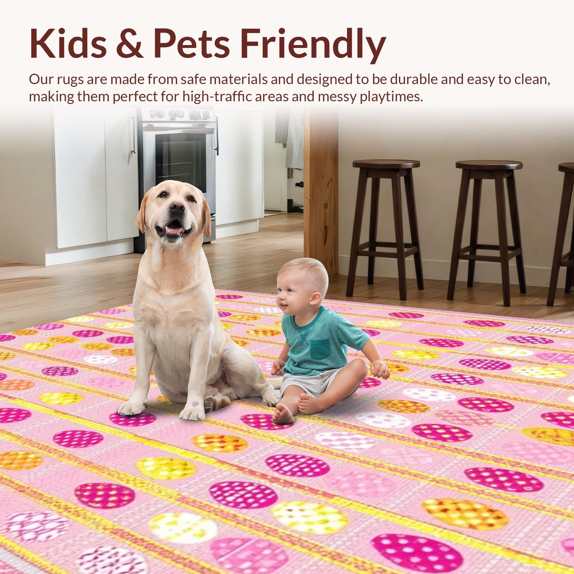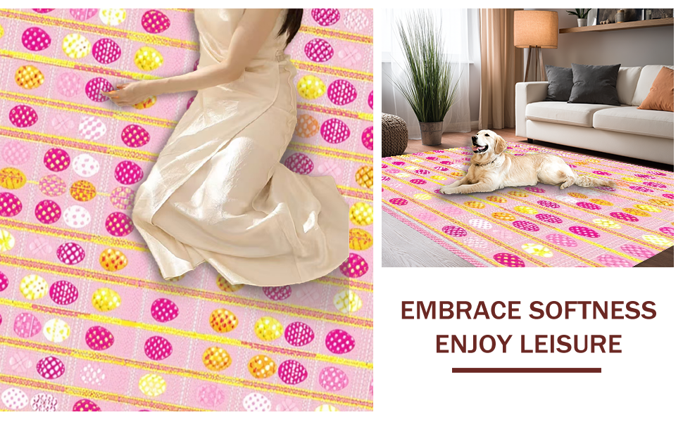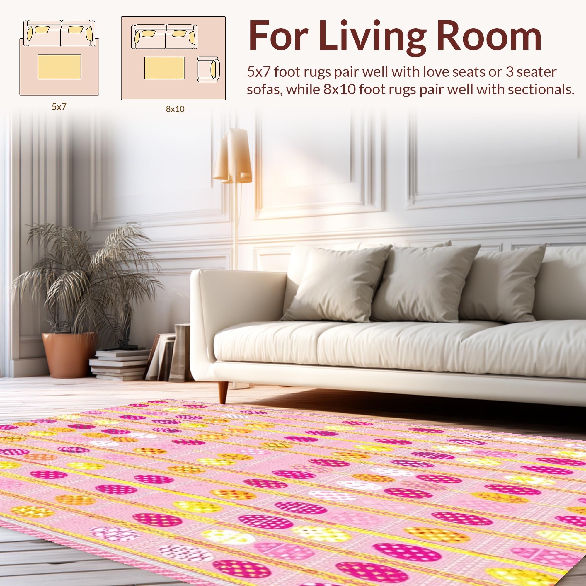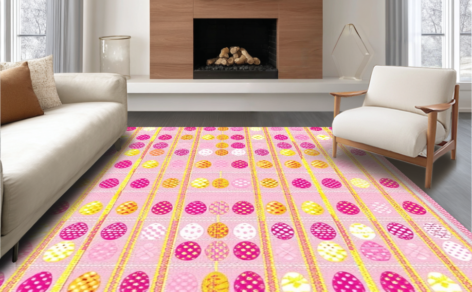 Ultra Soft Area Rug, Non Slip, Stain Resistant, Washable Area Rugs for Living Room, Bedroom, Elegant Multicolored Egg Arrangement(Pink) Overview:
