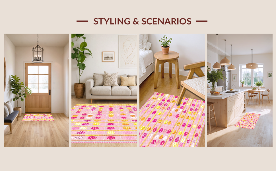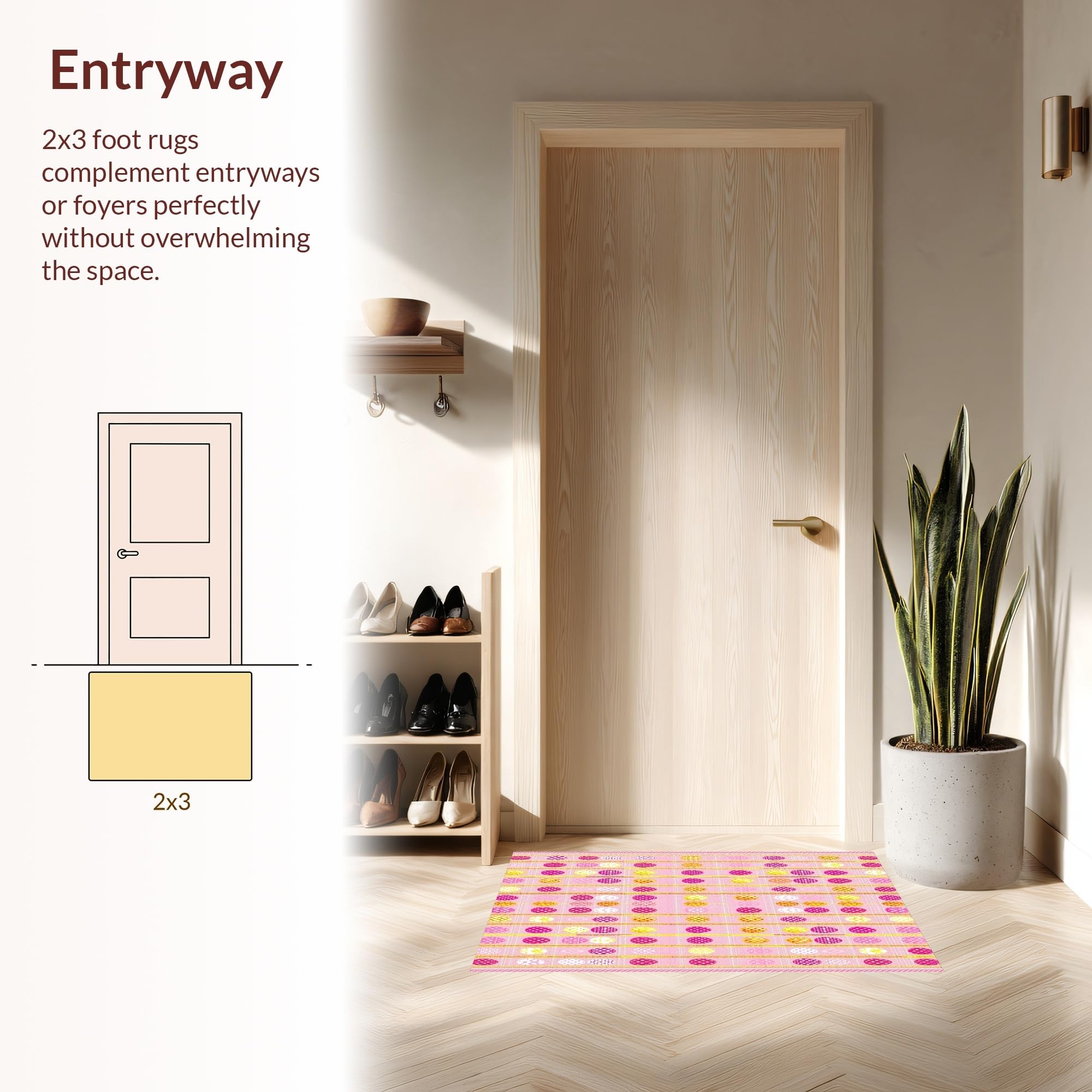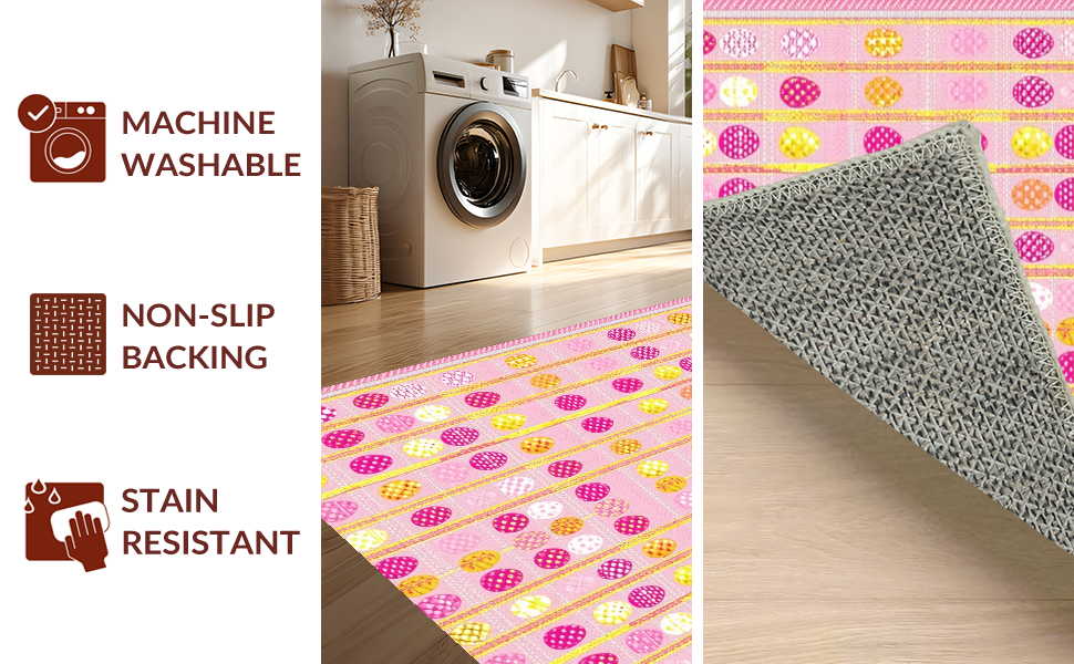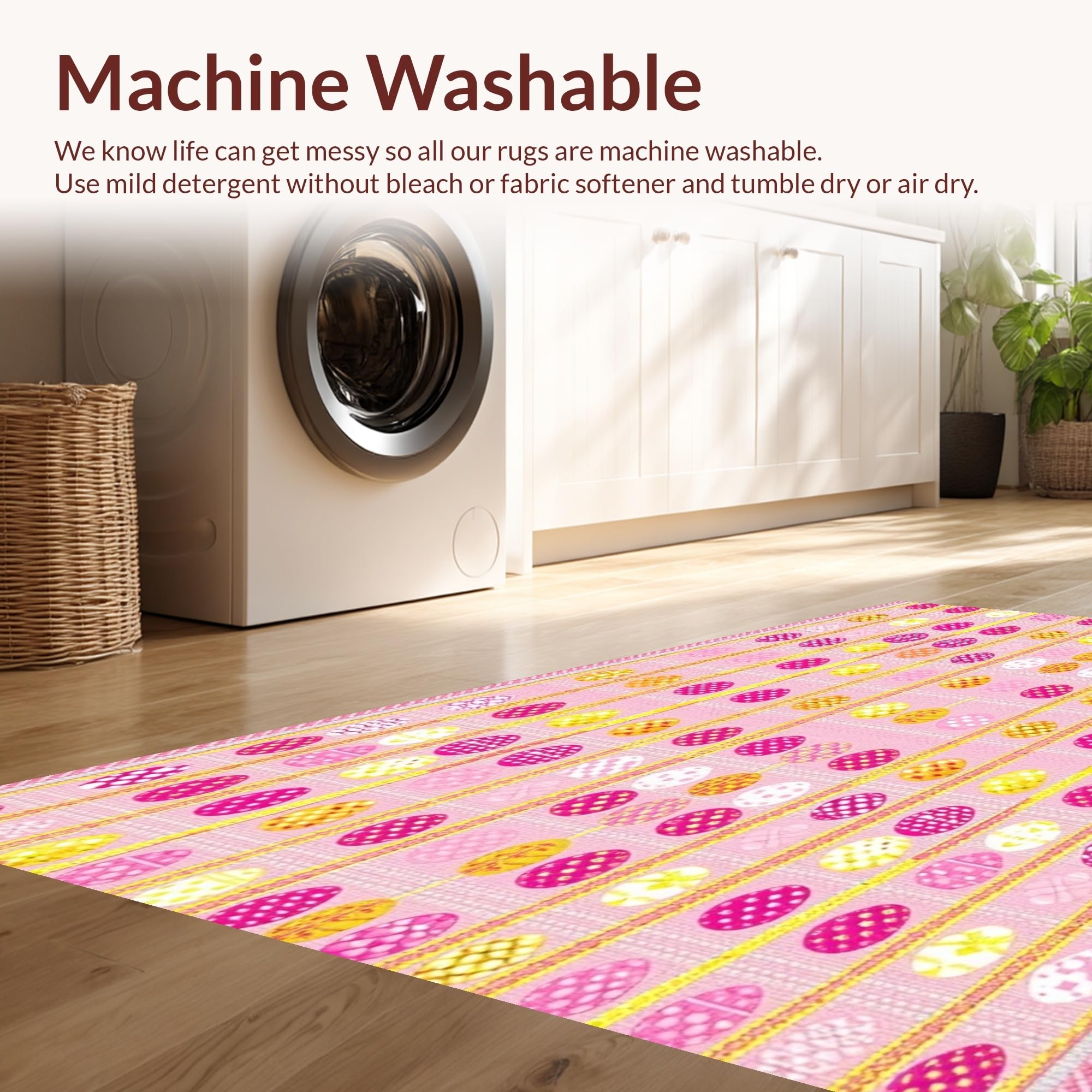 Ultra Soft Area Rug, Non Slip, Stain Resistant, Washable Area Rugs for Living Room, Bedroom, Elegant Multicolored Egg Arrangement(Pink) Overview: