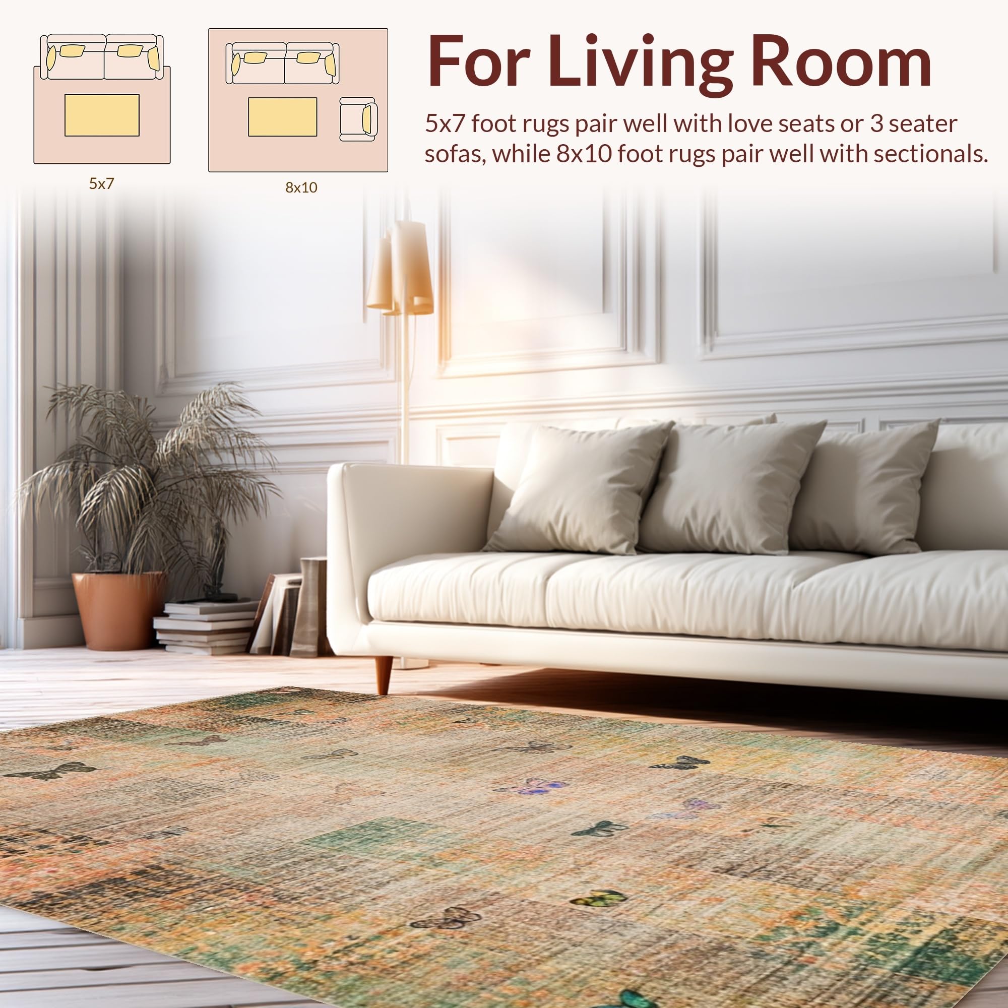 Ultra Soft Area Rug, Non Slip, Stain Resistant, Washable Area Rugs for Living Room, Bedroom, Elegant Muted Geometric Composition(Beige) Overview: