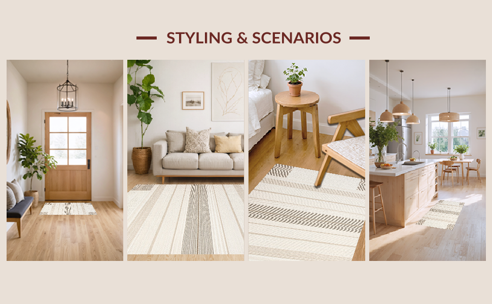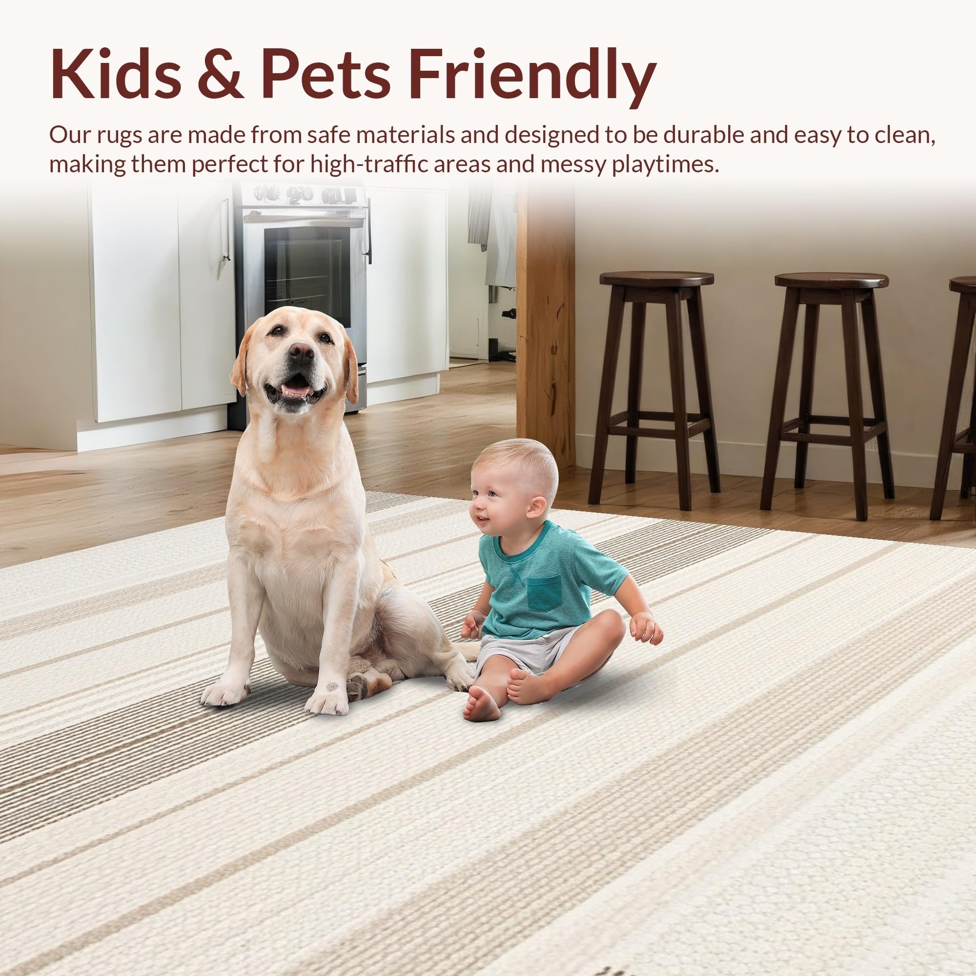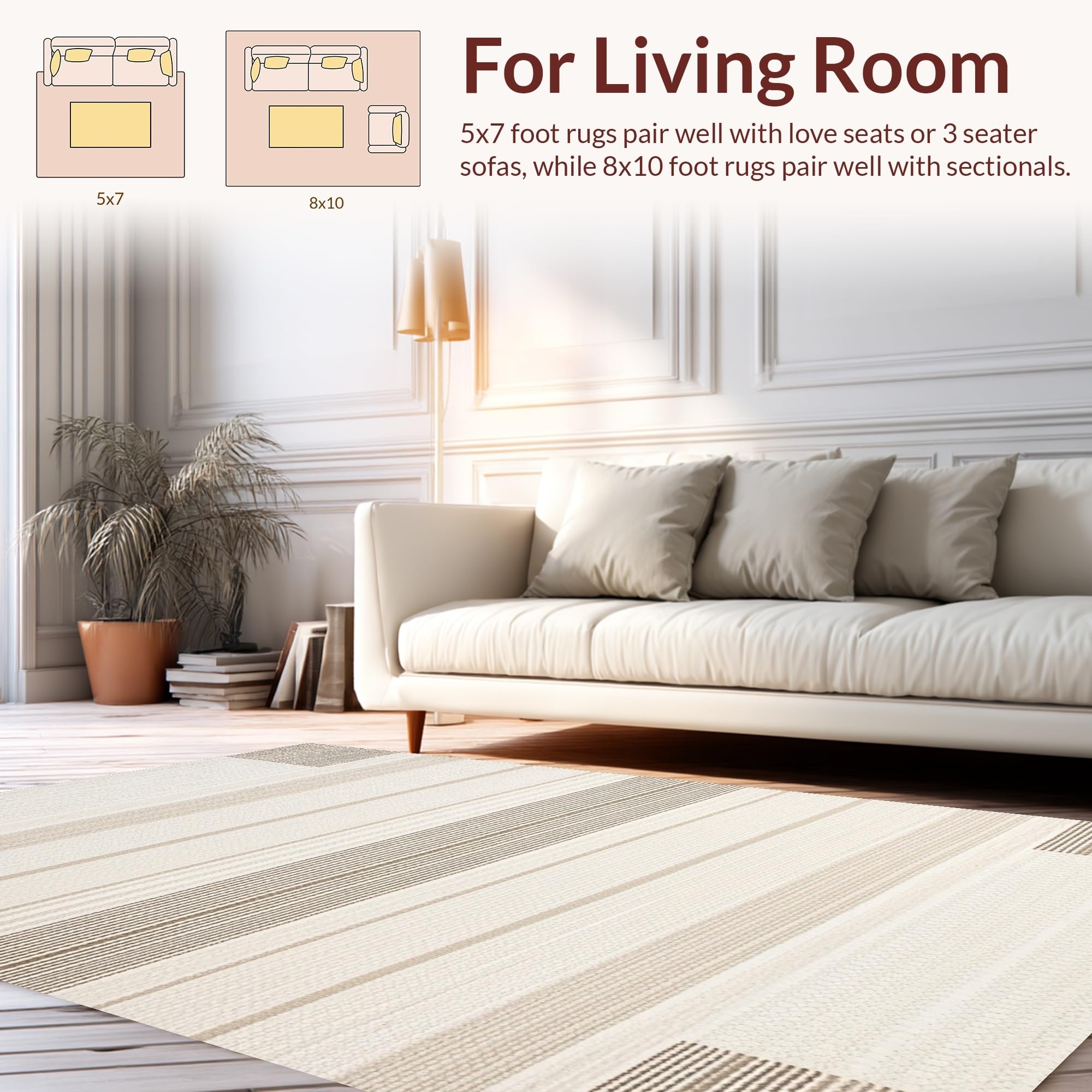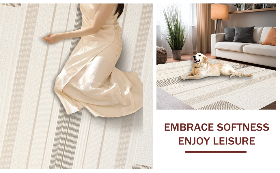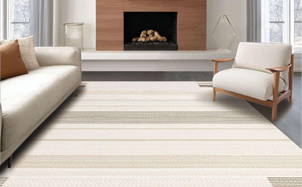 Ultra Soft Area Rug, Non Slip, Stain Resistant, Washable Area Rugs for Living Room, Bedroom, Elegant Muted Tidal Wave Aesthetic(Beige) Overview: