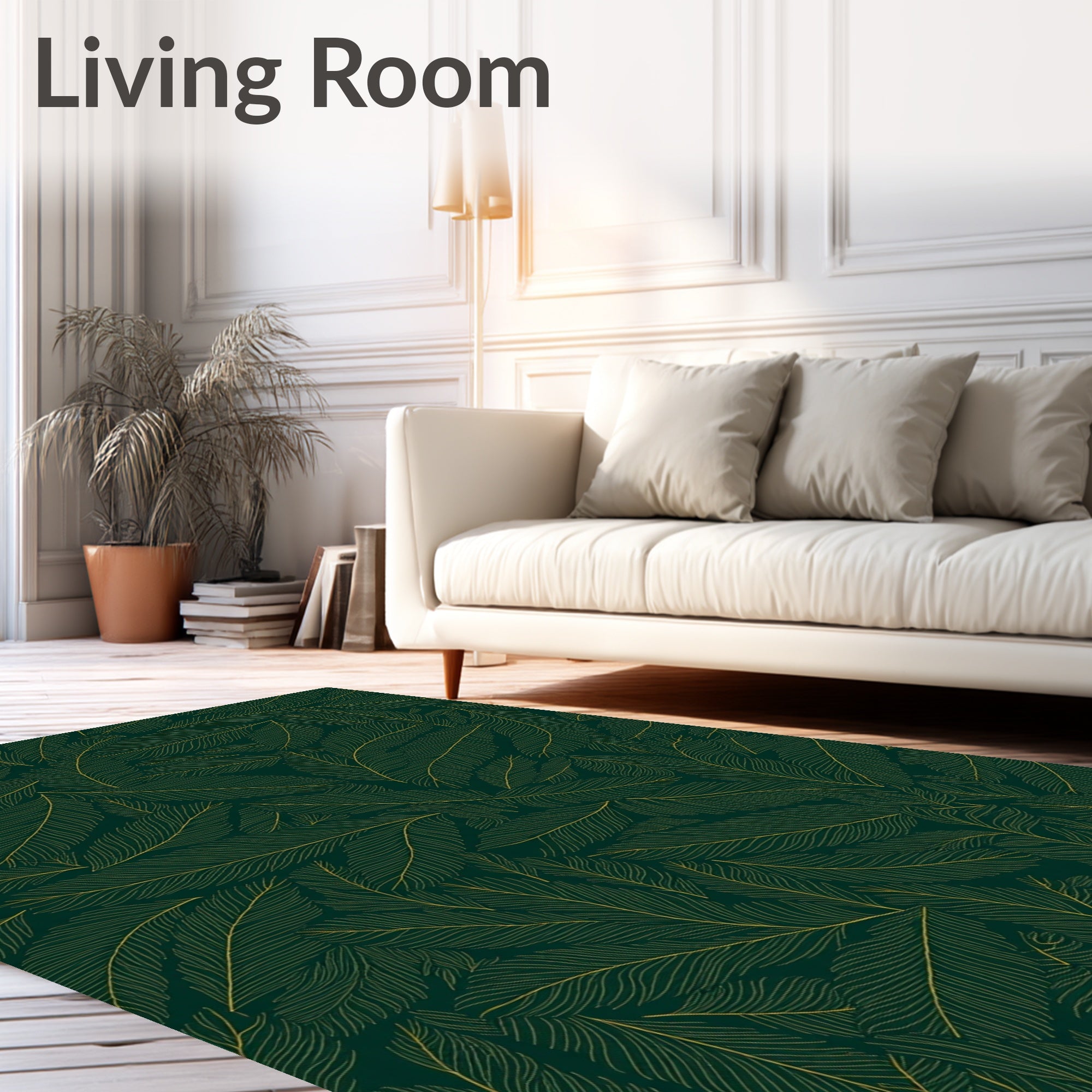 Ultra Soft Area Rug, Non Slip, Stain Resistant, Washable Area Rugs for Living Room, Bedroom, Elegant Mystical Jungle Foliage Labyrinth Noble Palatial(Green) Overview: