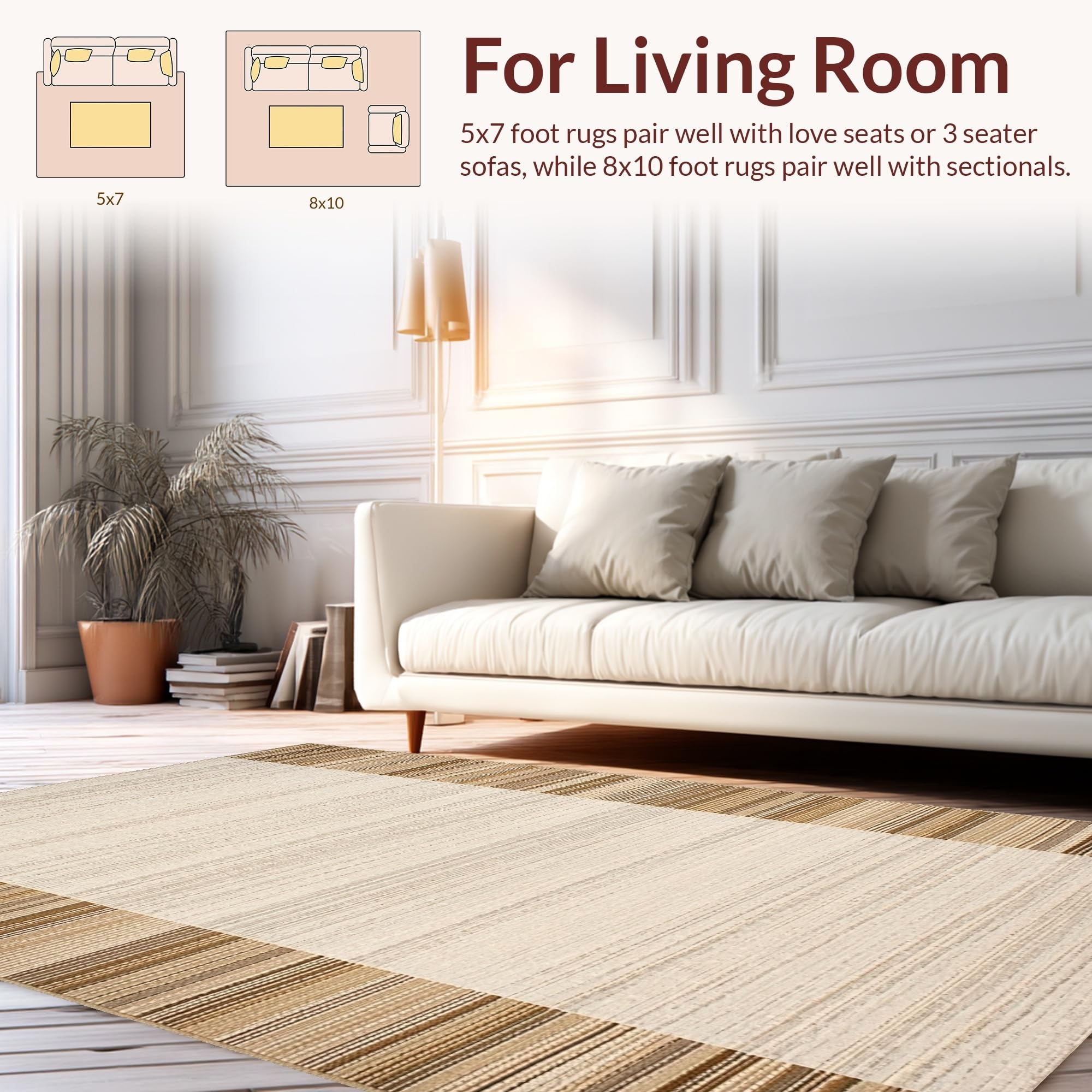 Ultra Soft Area Rug, Non Slip, Stain Resistant, Washable Area Rugs for Living Room, Bedroom, Elegant Natural Fiber Elegance(Beige) Overview: