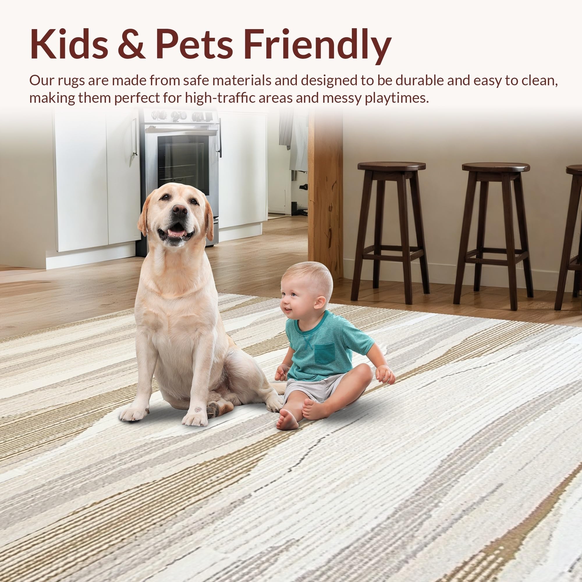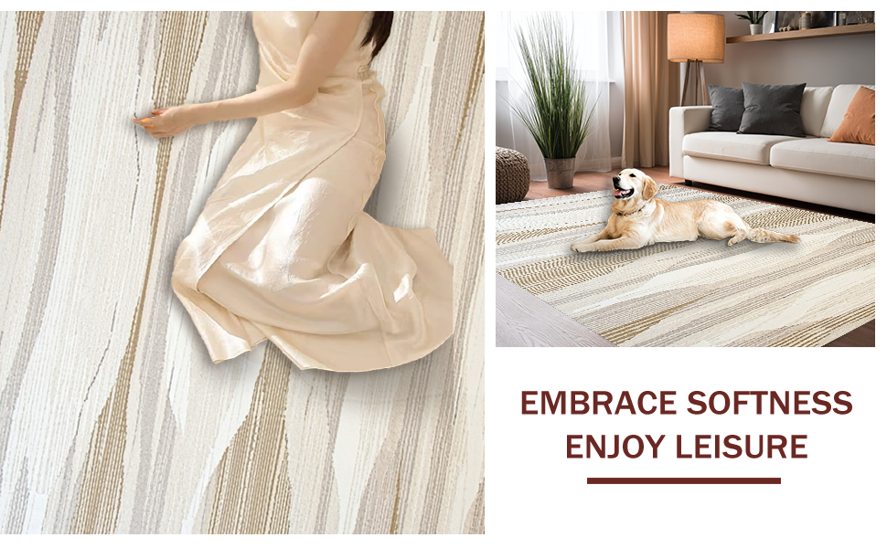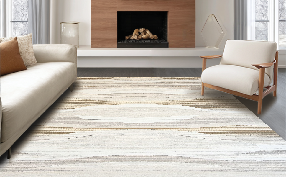 Ultra Soft Area Rug, Non Slip, Stain Resistant, Washable Area Rugs for Living Room, Bedroom, Elegant Natural Scalloped Texture(Beige) Overview: