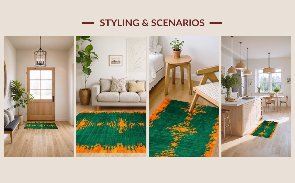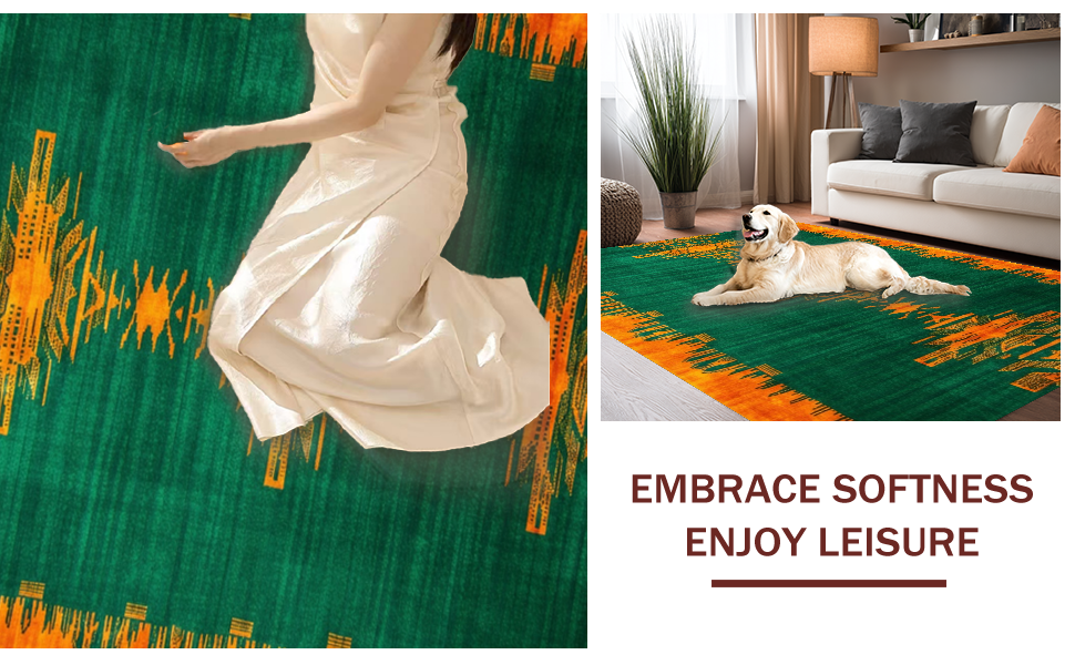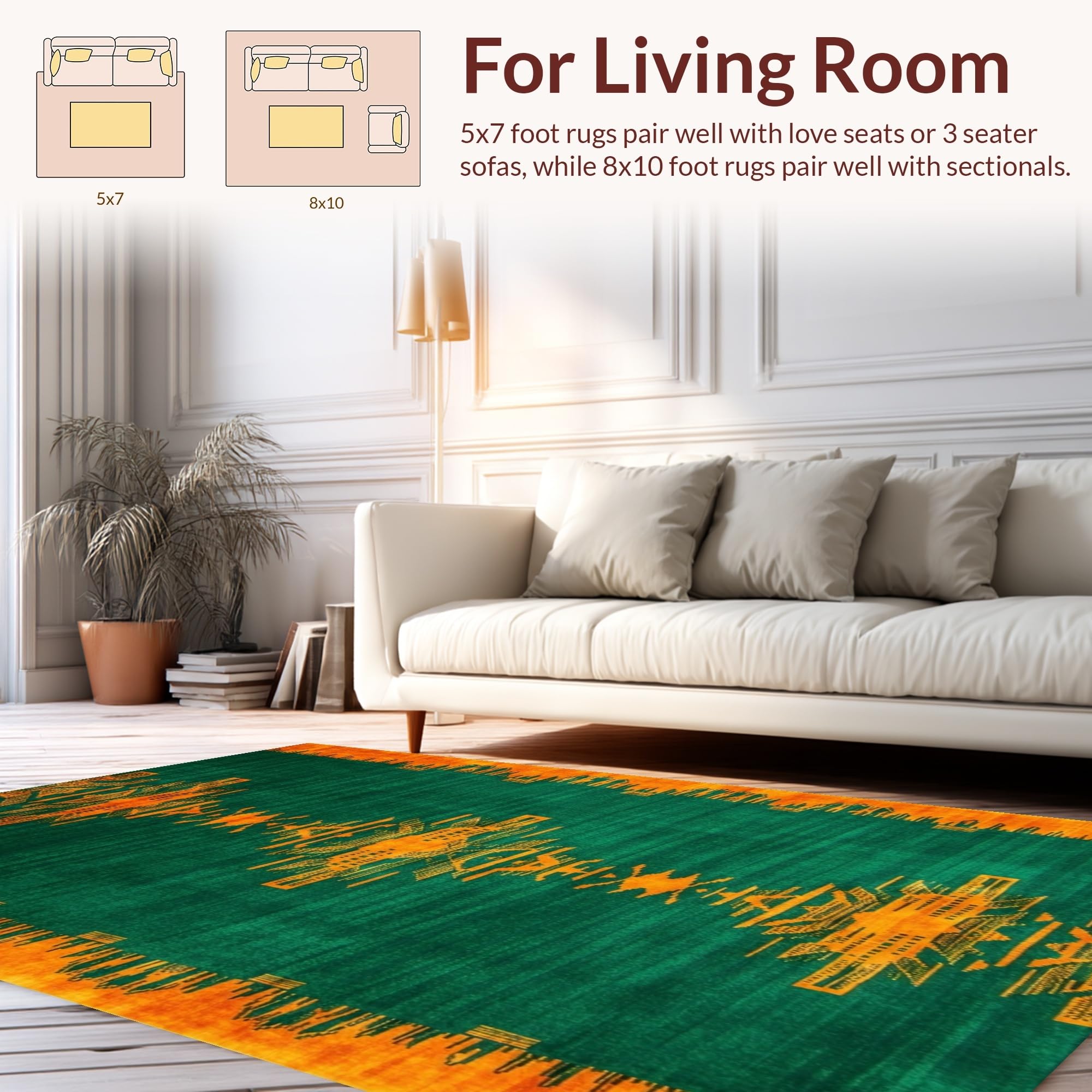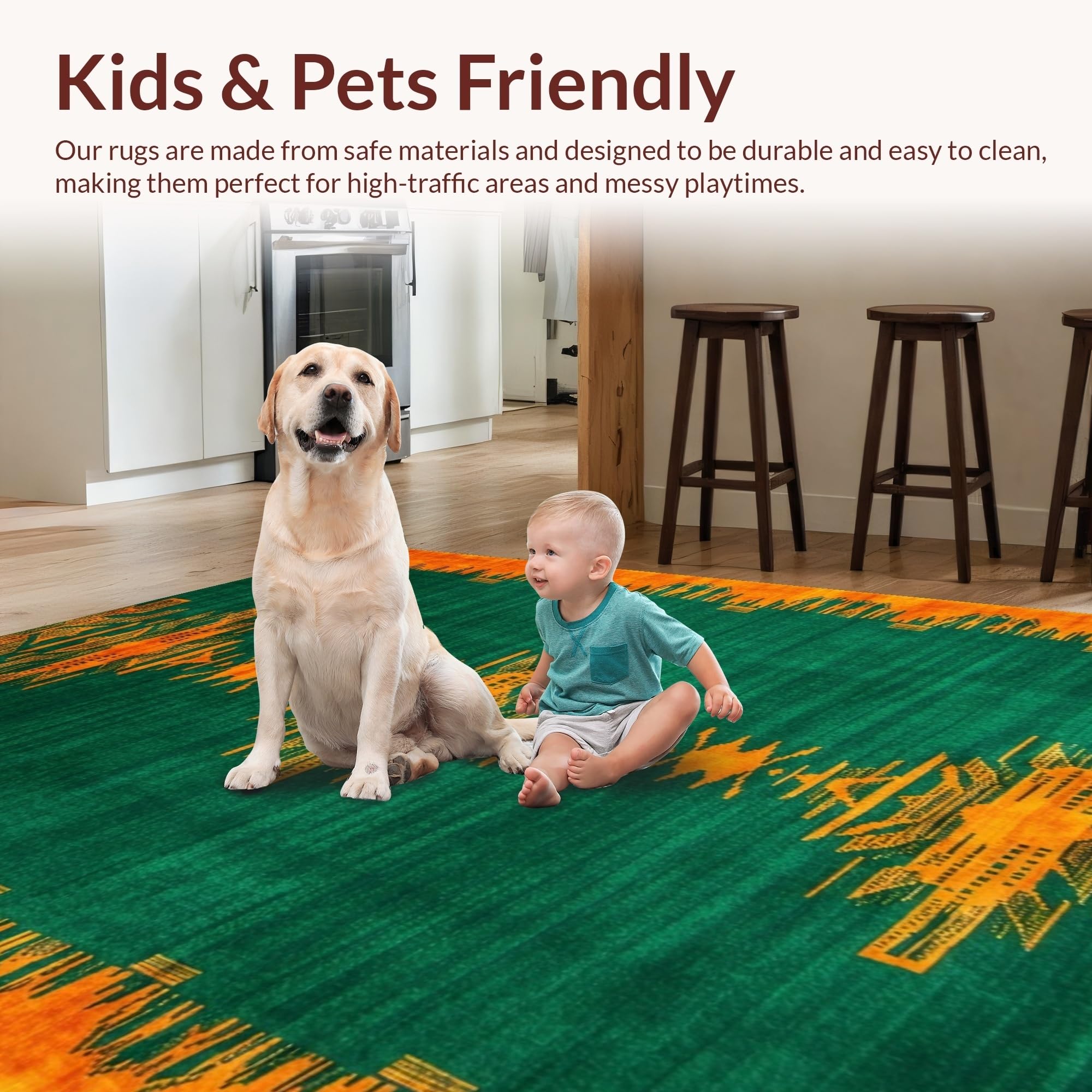 Ultra Soft Area Rug, Non Slip, Stain Resistant, Washable Area Rugs for Living Room, Bedroom, Elegant Naturalistic Color Palette(Green) Overview: