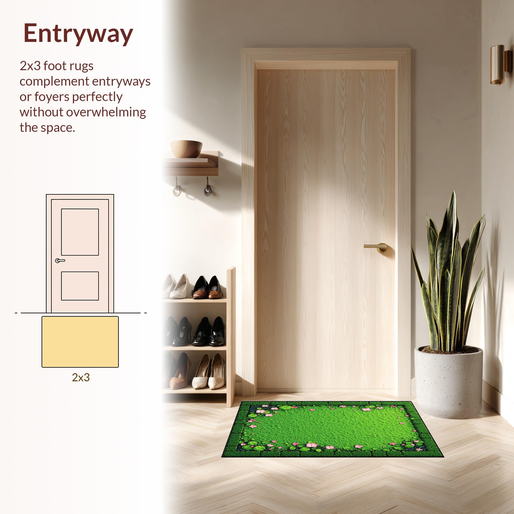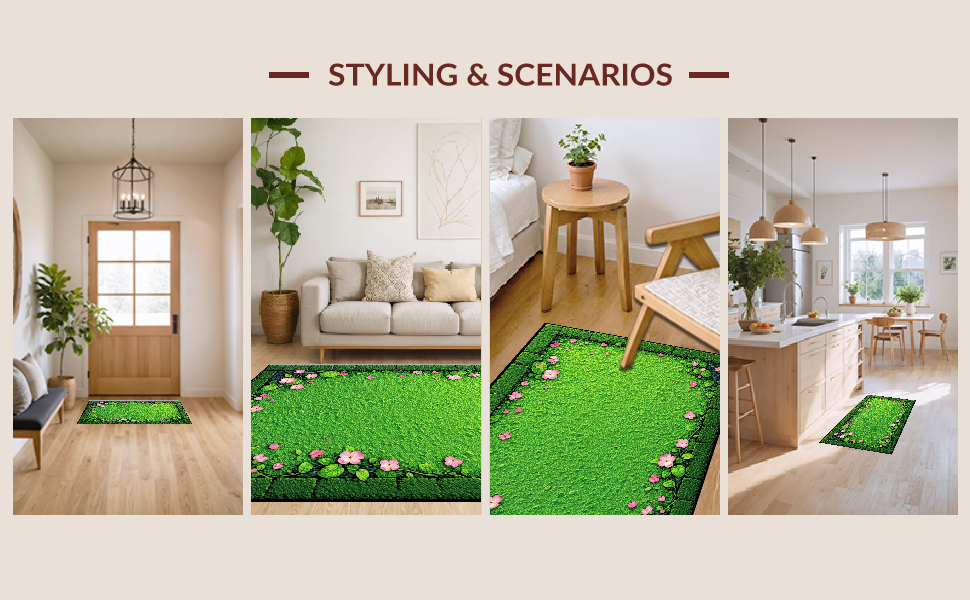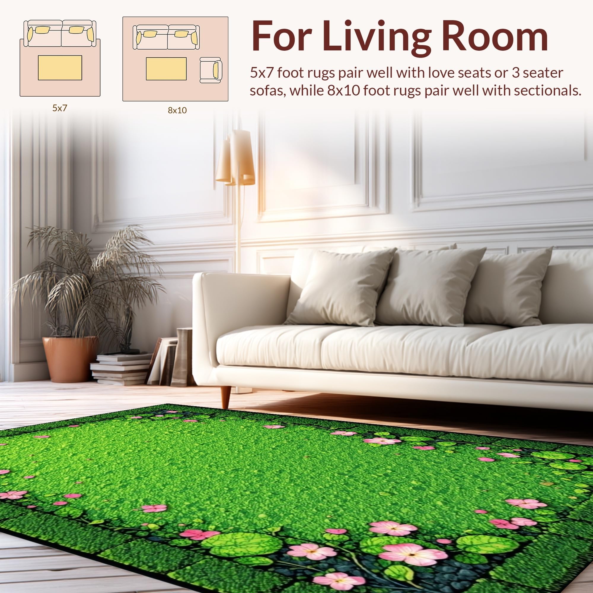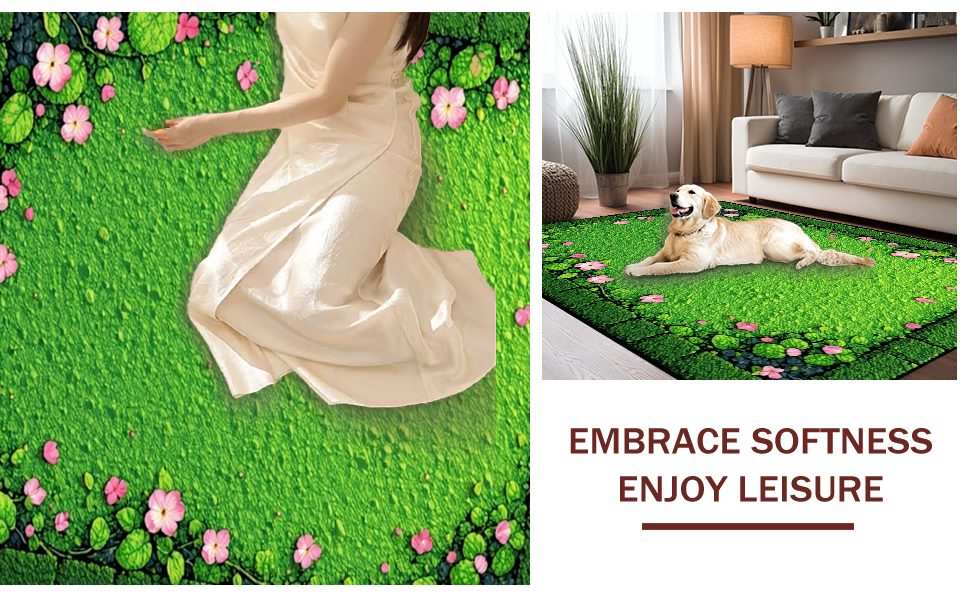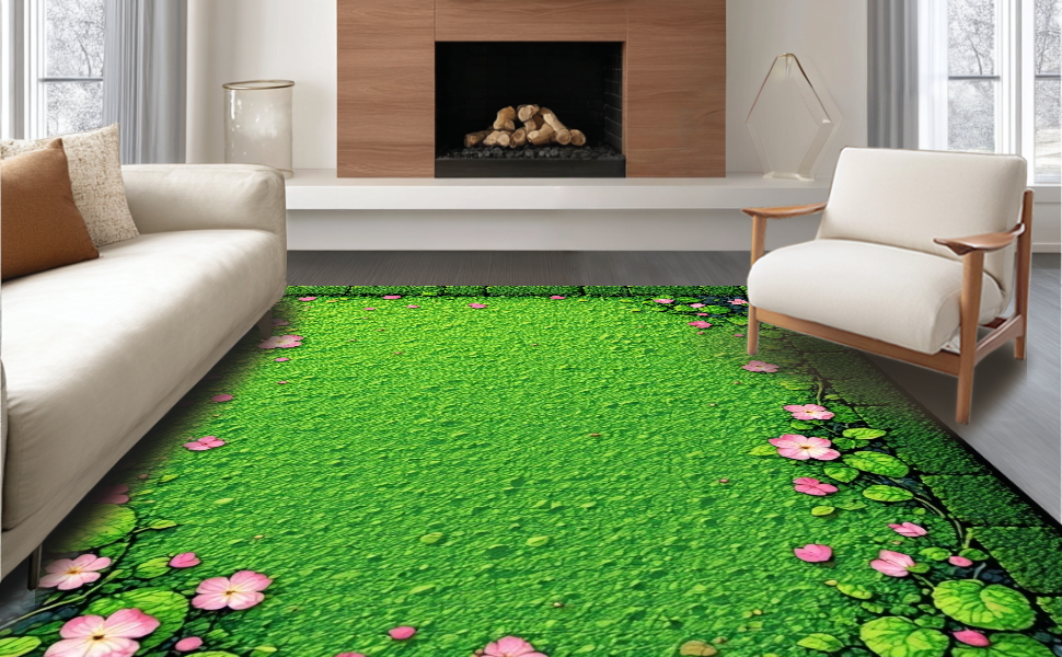Ultra Soft Area Rug, Non Slip, Stain Resistant, Washable Area Rugs for Living Room, Bedroom, Elegant Nature-Inspired Composition(Green) Overview: