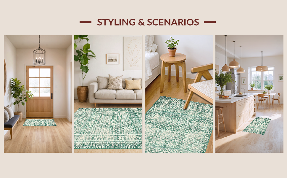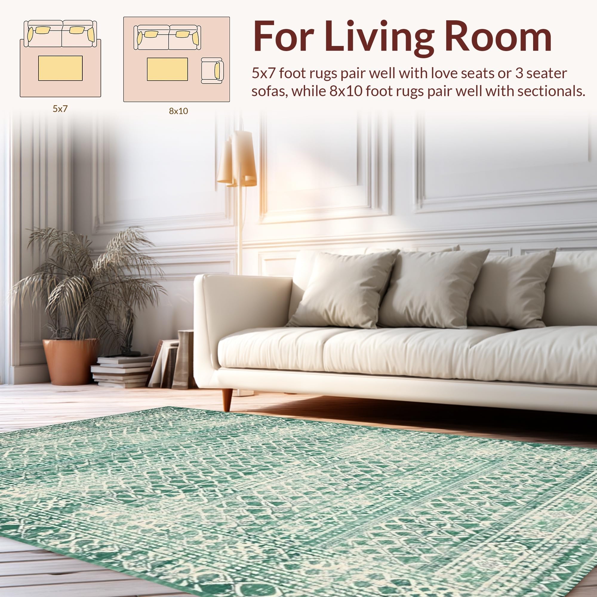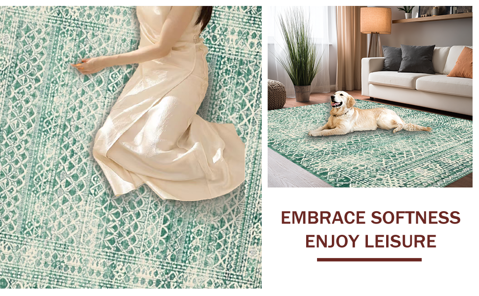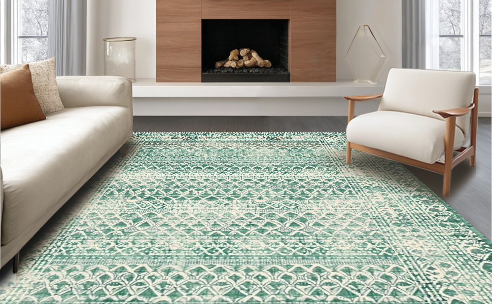 Ultra Soft Area Rug, Non Slip, Stain Resistant, Washable Area Rugs for Living Room, Bedroom, Elegant Nature-Inspired Design(Green) Overview: