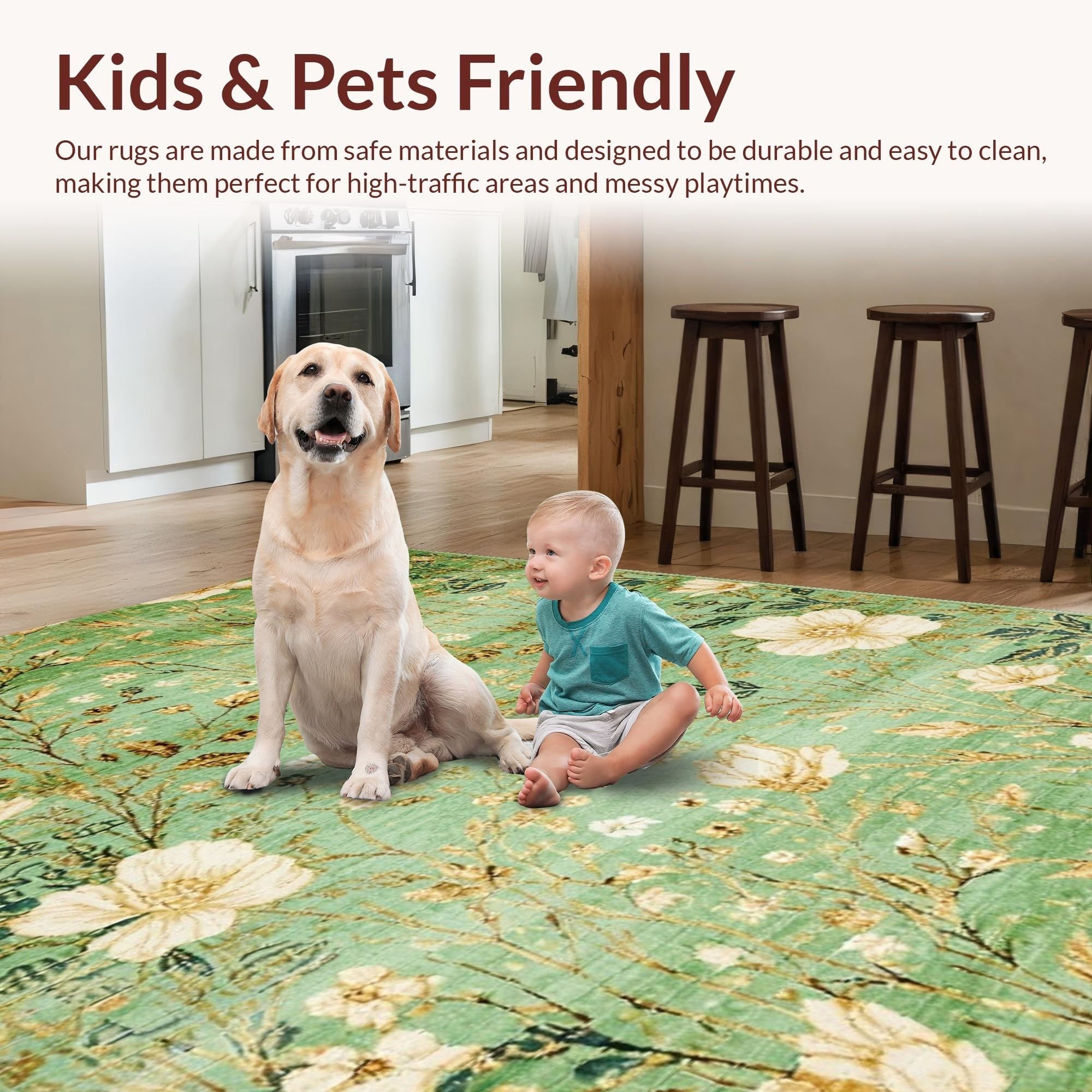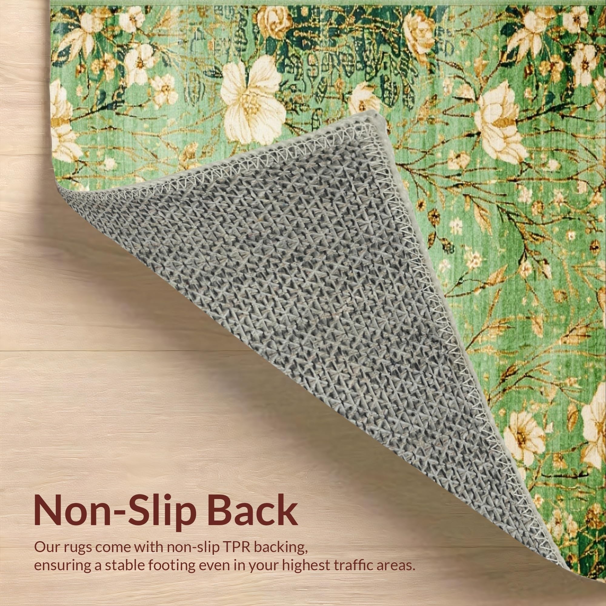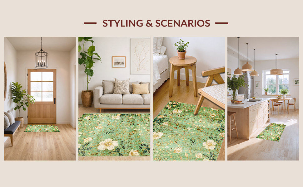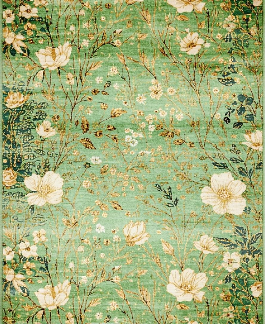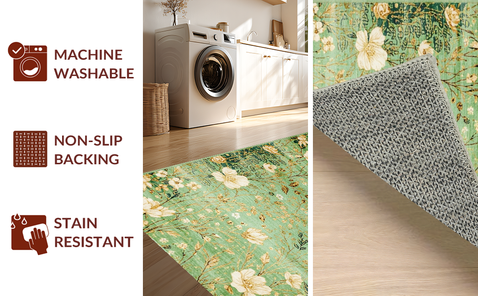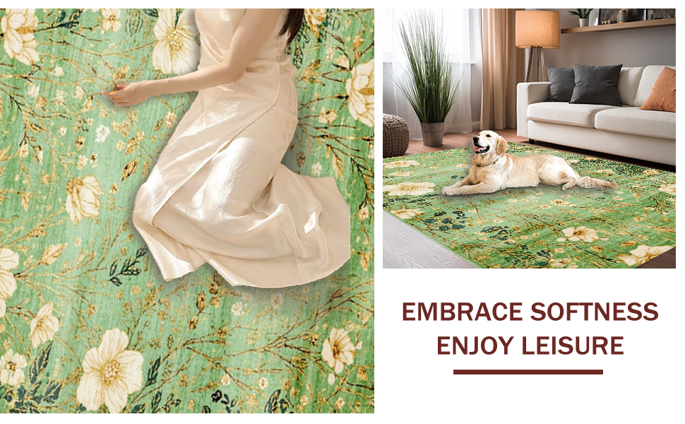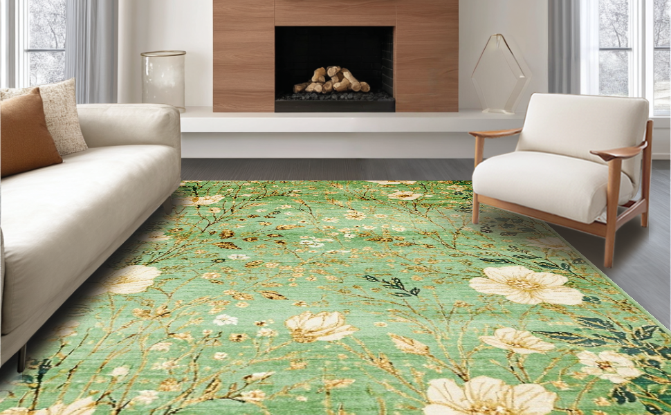 Ultra Soft Area Rug, Non Slip, Stain Resistant, Washable Area Rugs for Living Room, Bedroom, Elegant Nature Inspired Motif(Green) Overview: