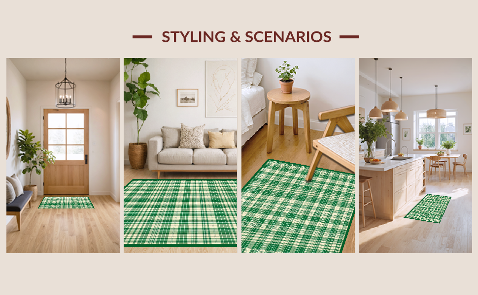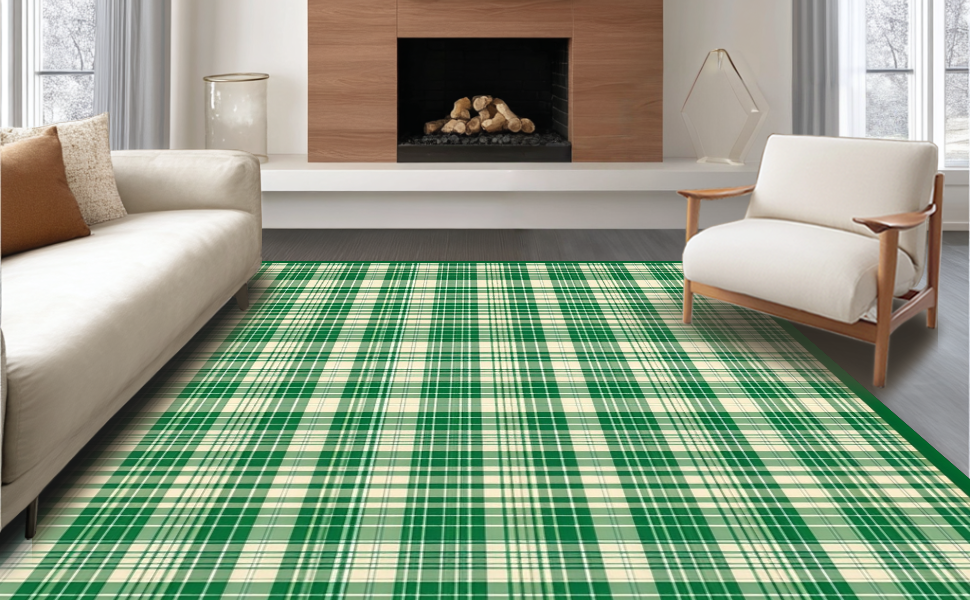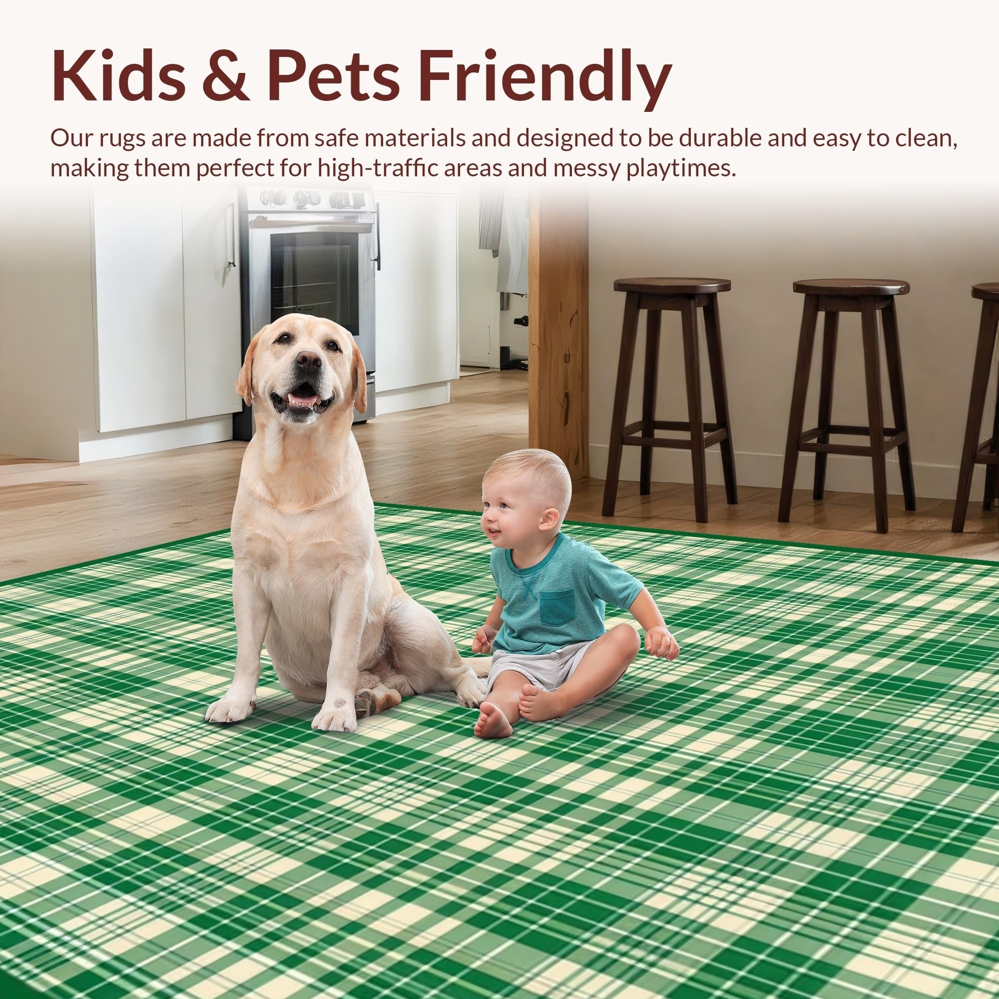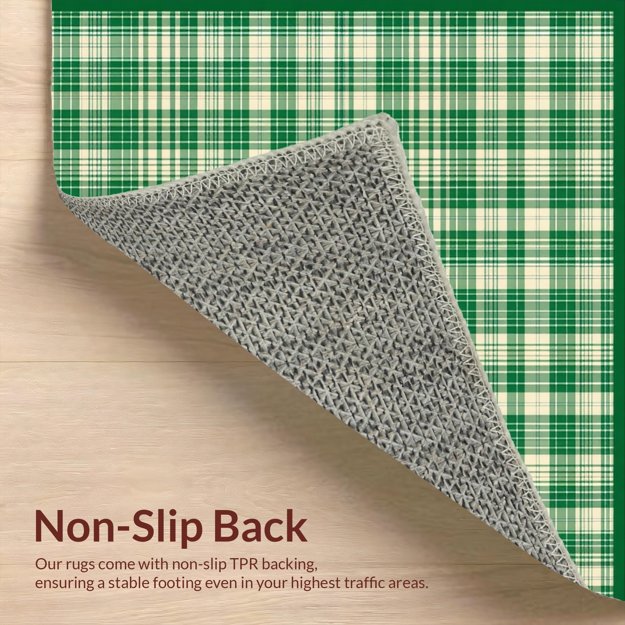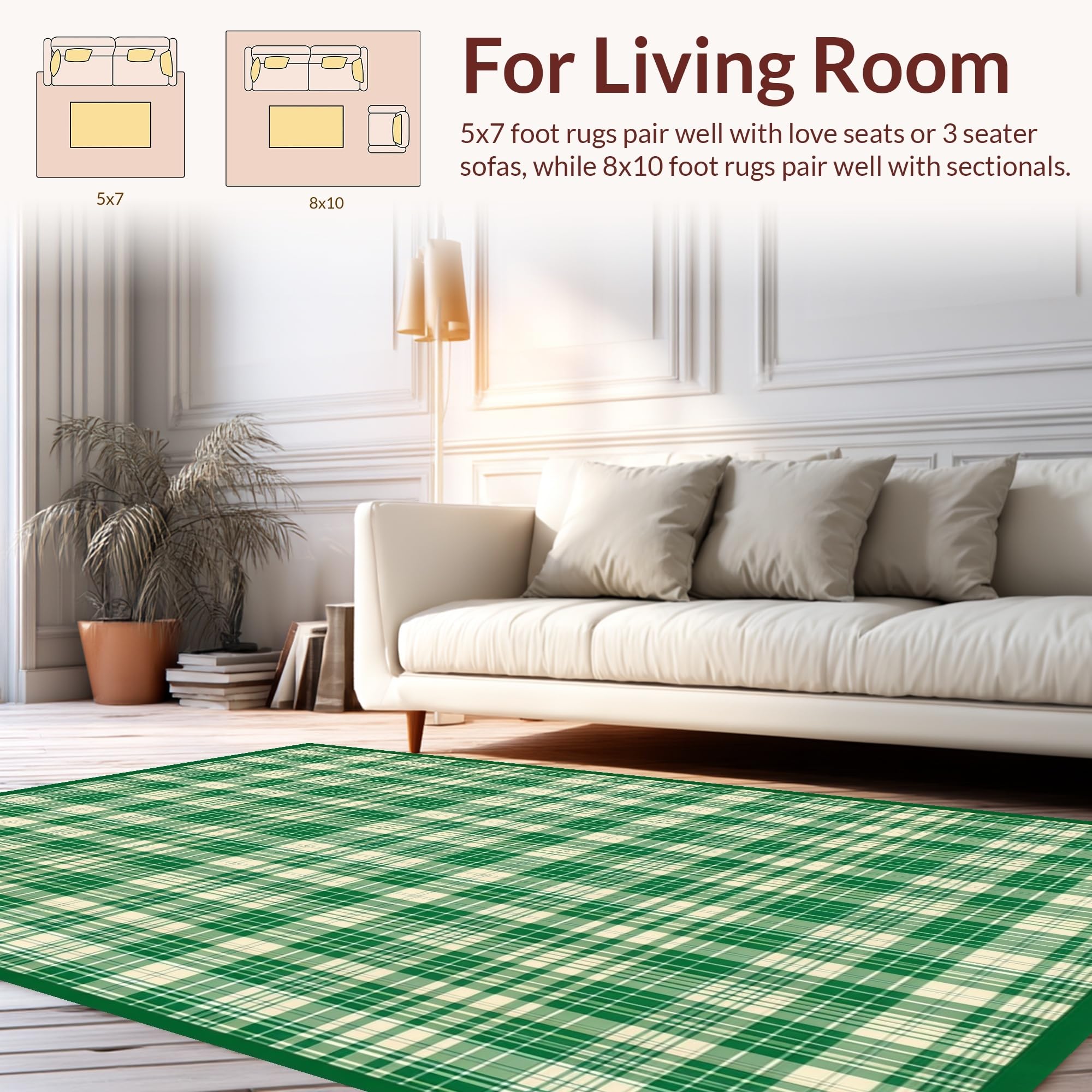 Ultra Soft Area Rug, Non Slip, Stain Resistant, Washable Area Rugs for Living Room, Bedroom, Elegant Nature-Inspired Tartan Design(Green) Overview: