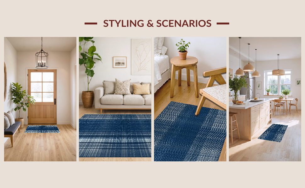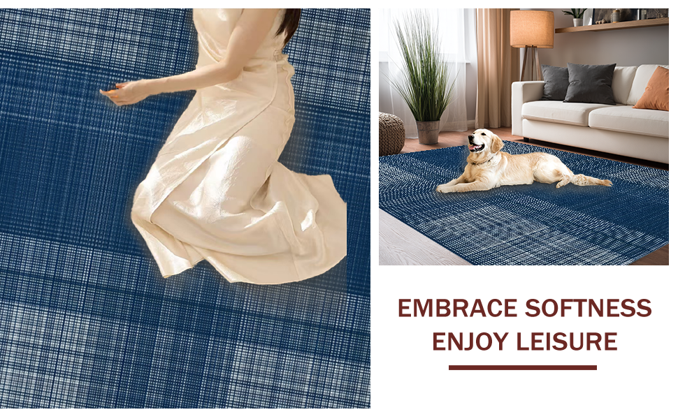 Ultra Soft Area Rug, Non Slip, Stain Resistant, Washable Area Rugs for Living Room, Bedroom, Elegant Navy Tiled Aesthetic(Blue) Overview: