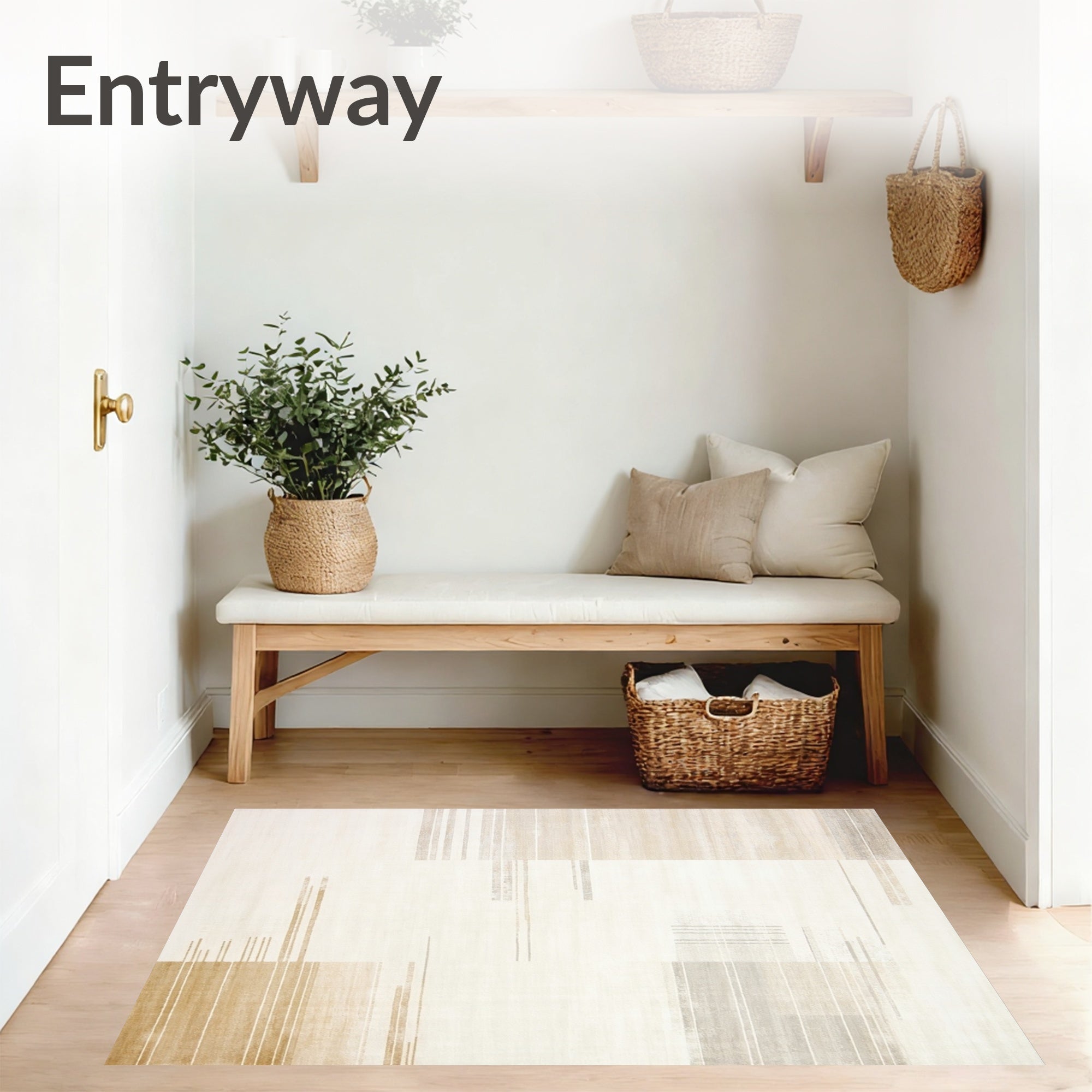 Ultra Soft Area Rug, Non Slip, Stain Resistant, Washable Area Rugs for Living Room, Bedroom, Elegant Neutral Area Subtle Geometric Ink Wash Design(Beige) Overview: