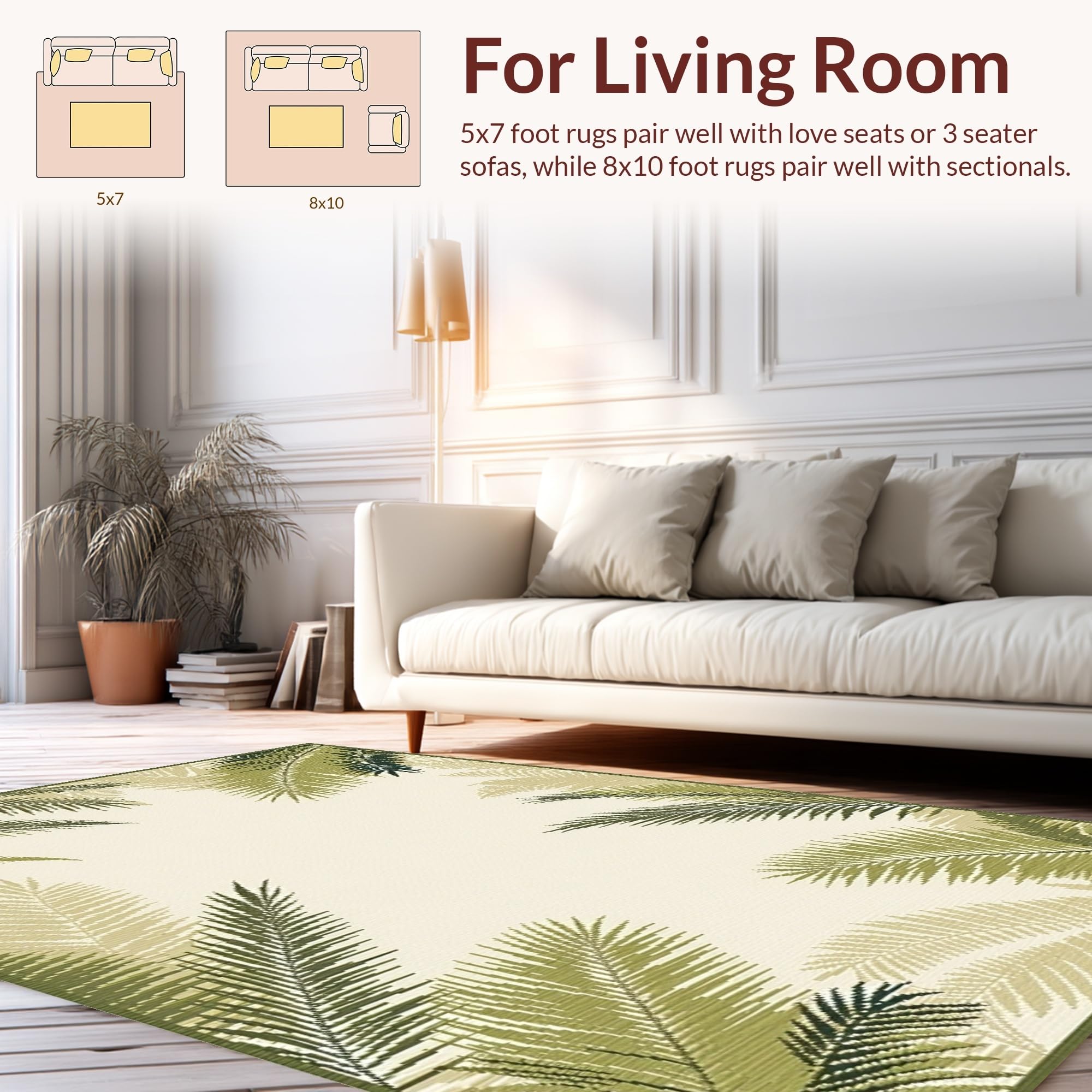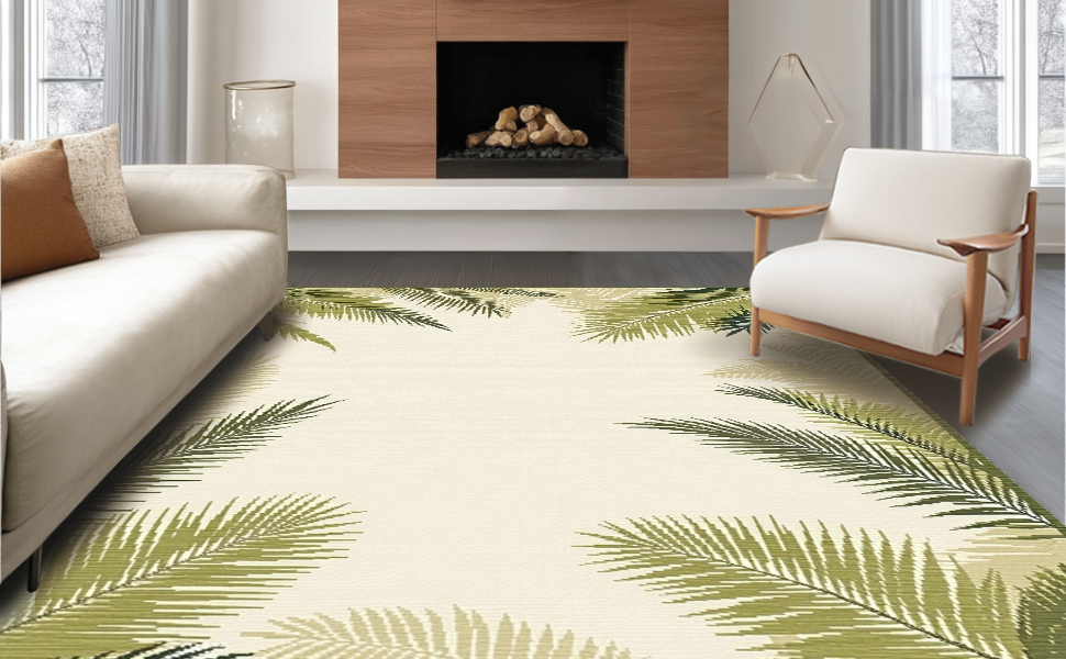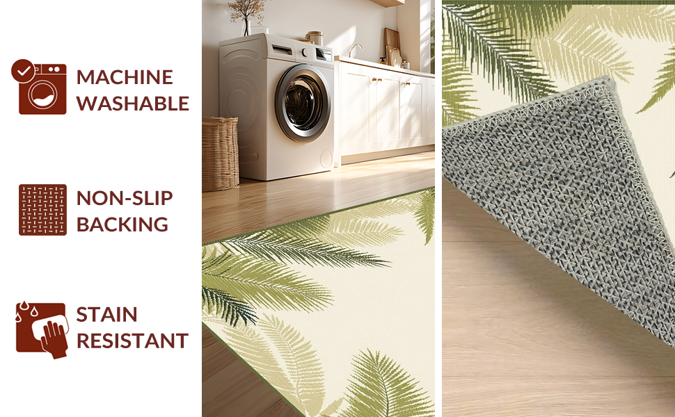 Ultra Soft Area Rug, Non Slip, Stain Resistant, Washable Area Rugs for Living Room, Bedroom, Elegant Neutral Botanical Design(Beige) Overview: