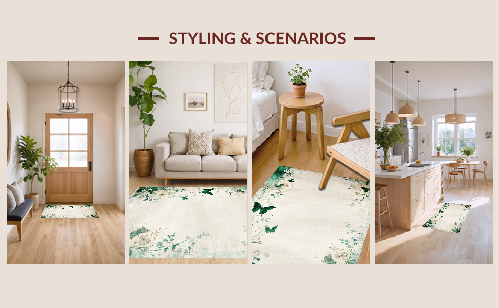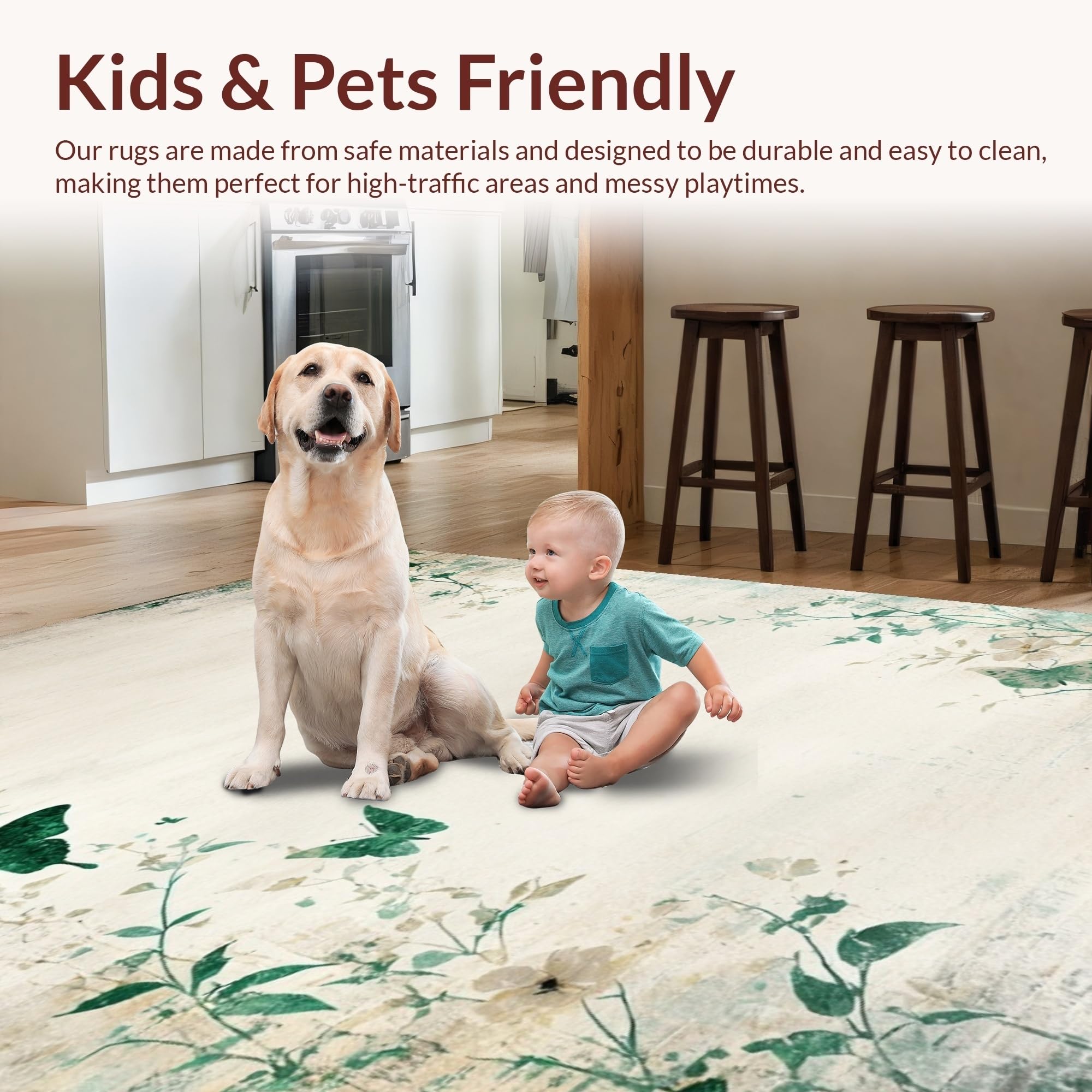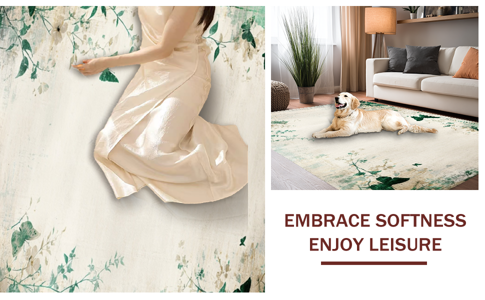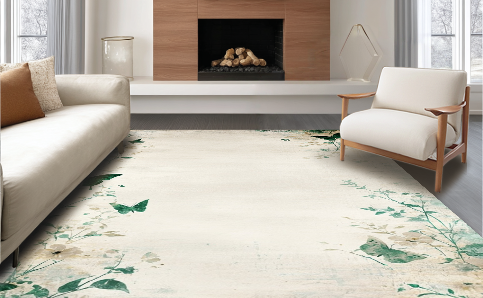 Ultra Soft Area Rug, Non Slip, Stain Resistant, Washable Area Rugs for Living Room, Bedroom, Elegant Neutral Botanical Motif(Beige) Overview: