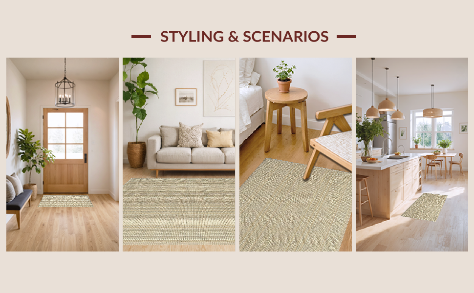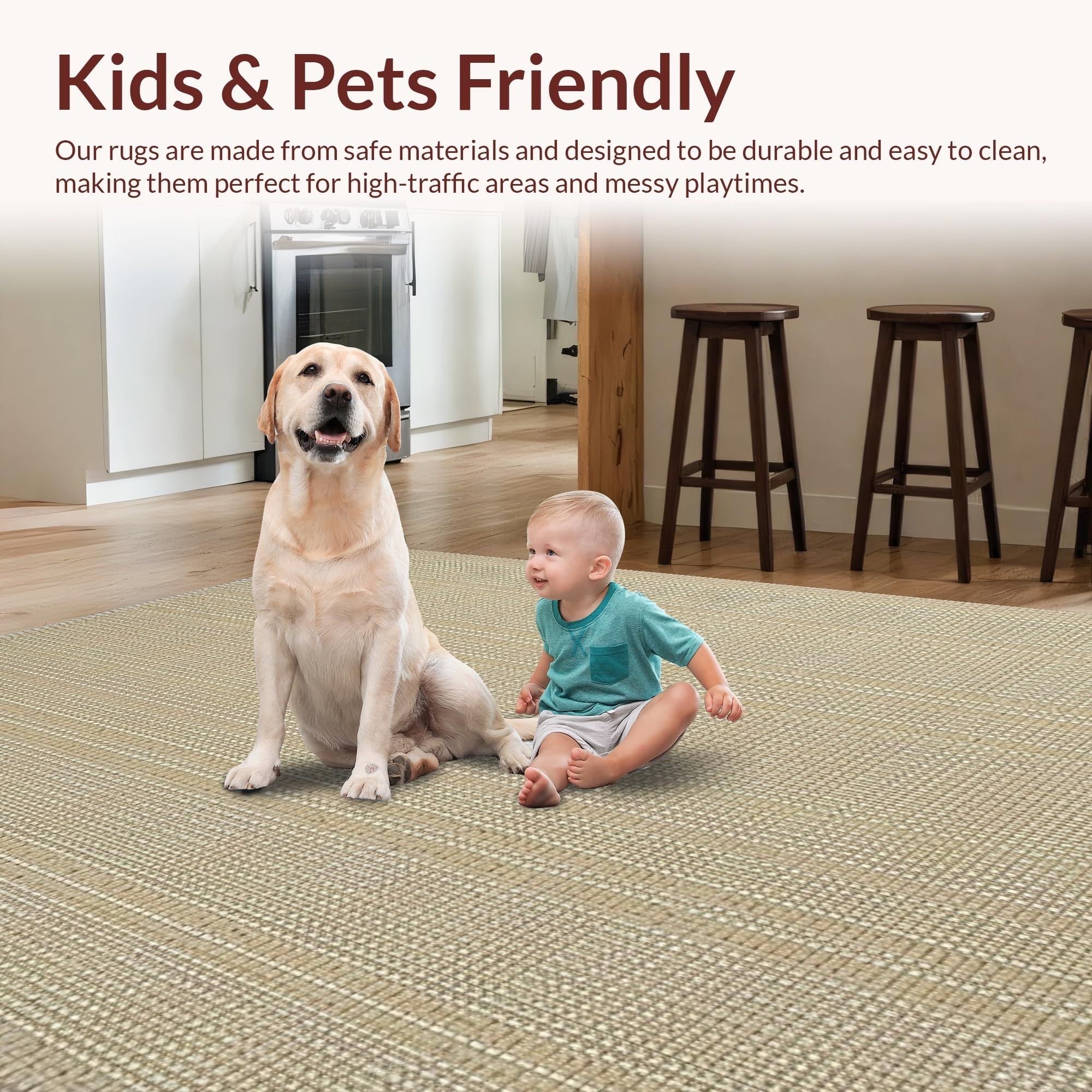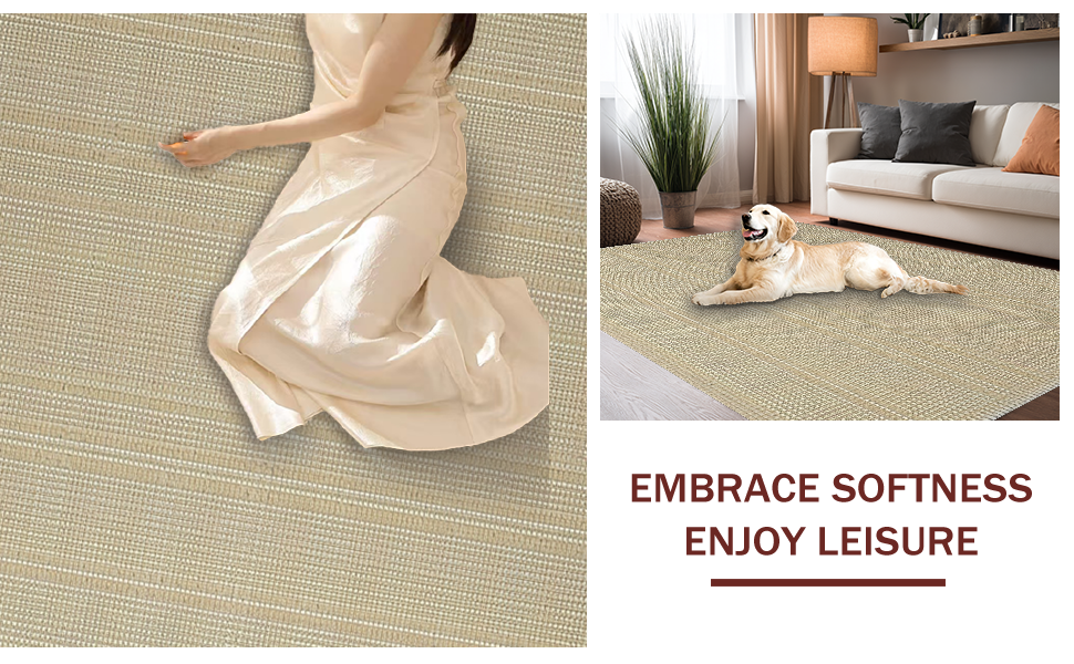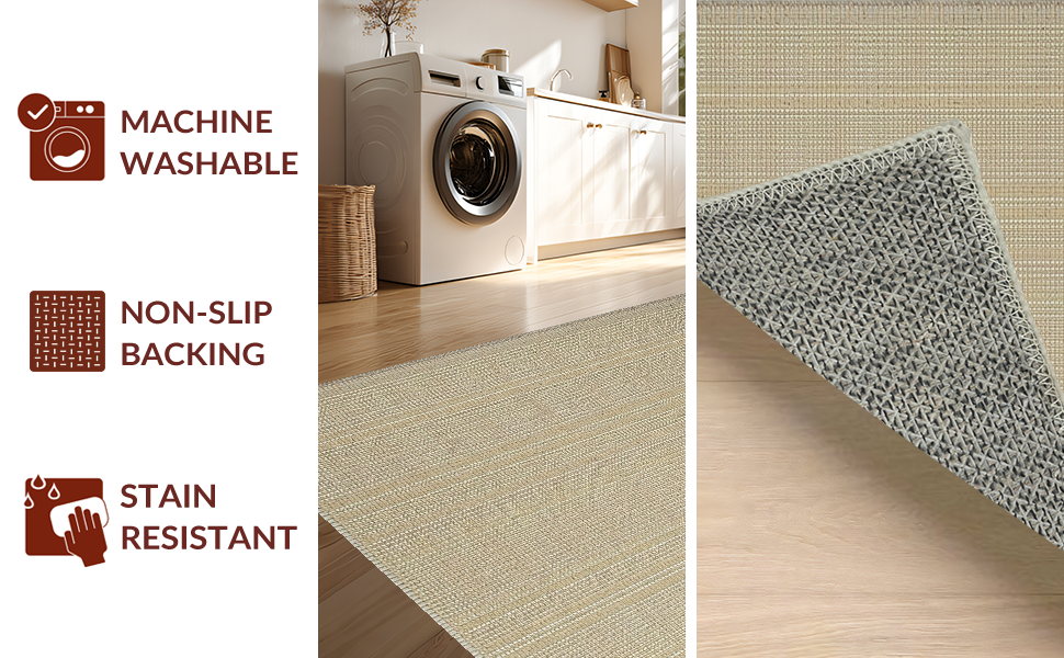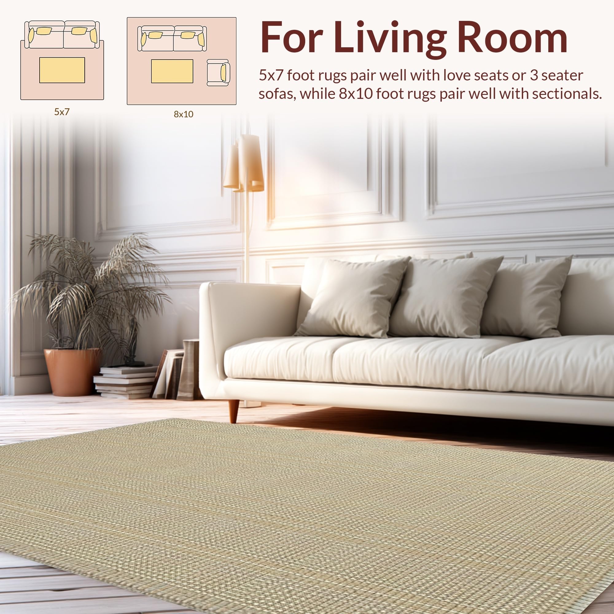 Ultra Soft Area Rug, Non Slip, Stain Resistant, Washable Area Rugs for Living Room, Bedroom, Elegant Neutral Braided Texture(Beige) Overview: