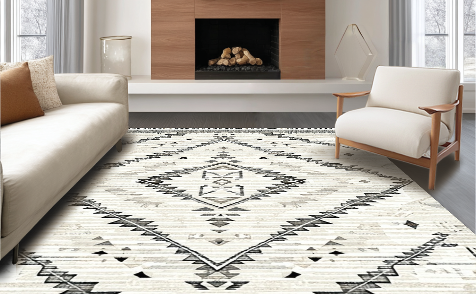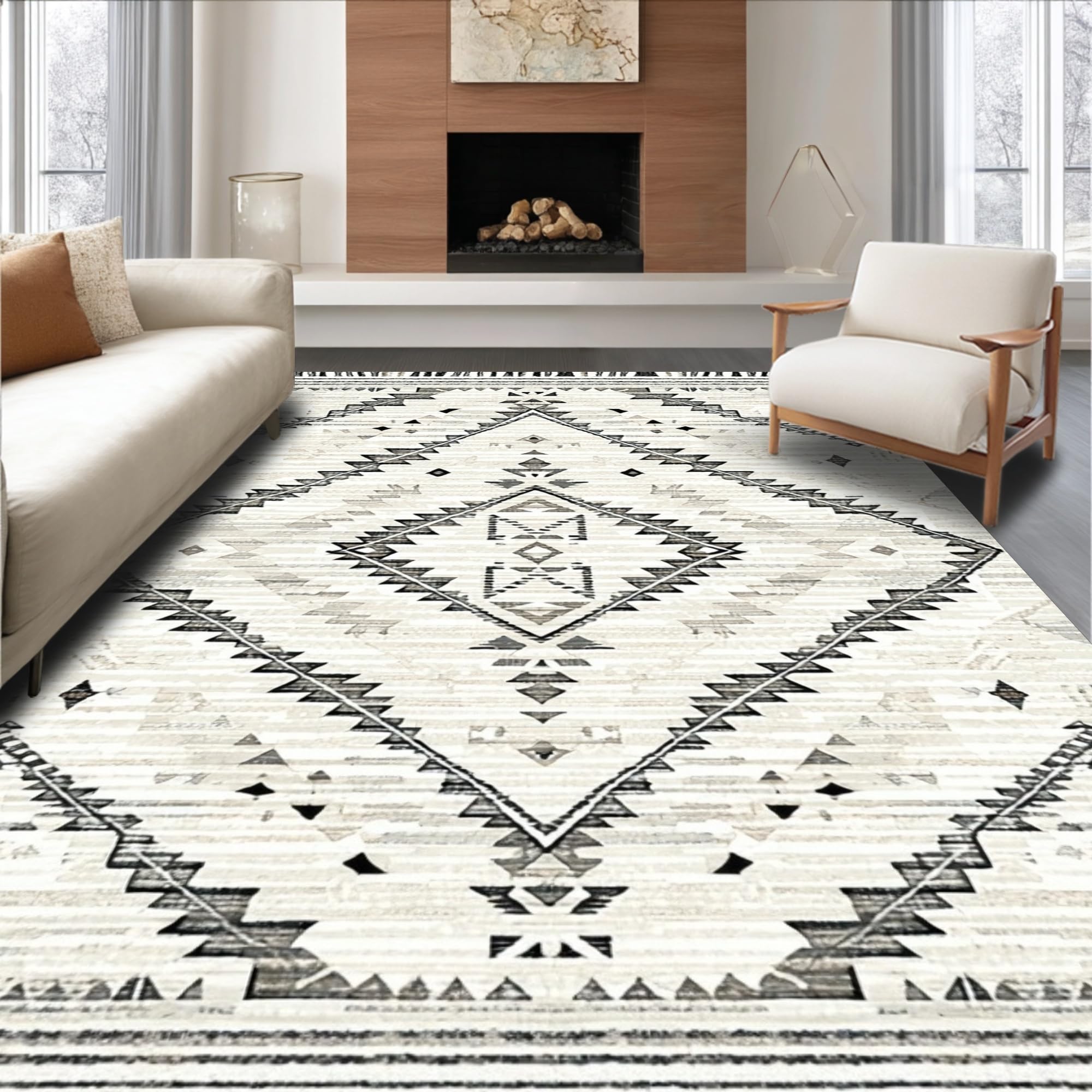 Ultra Soft Area Rug, Non Slip, Stain Resistant, Washable Area Rugs for Living Room, Bedroom, Elegant Neutral Diamond Motif(Gray) Overview: