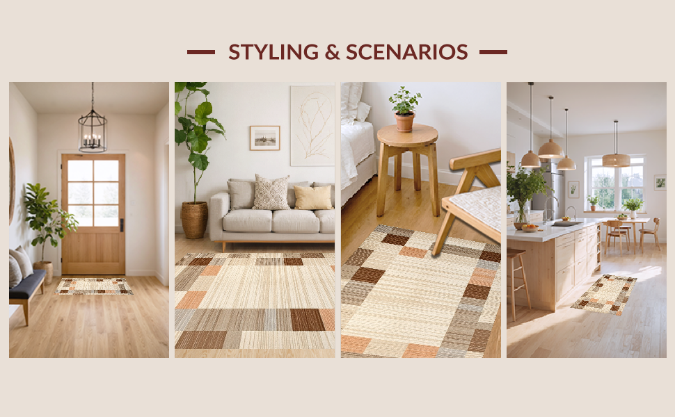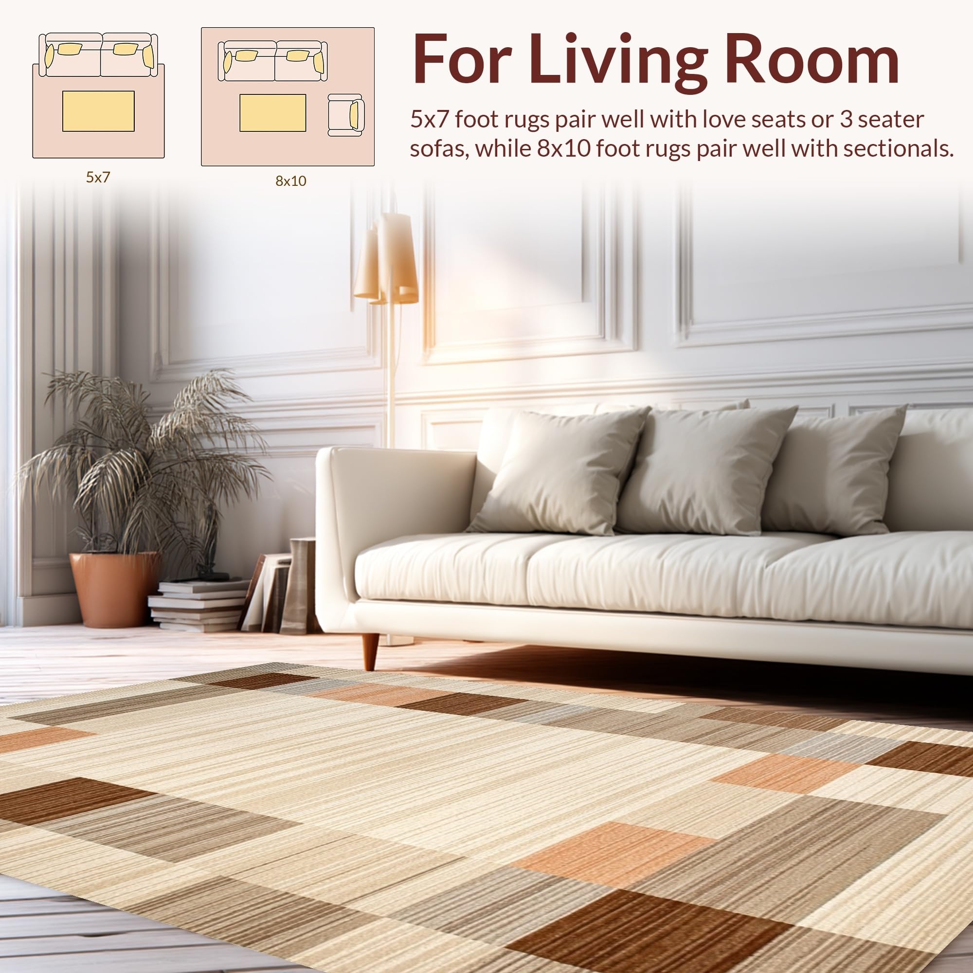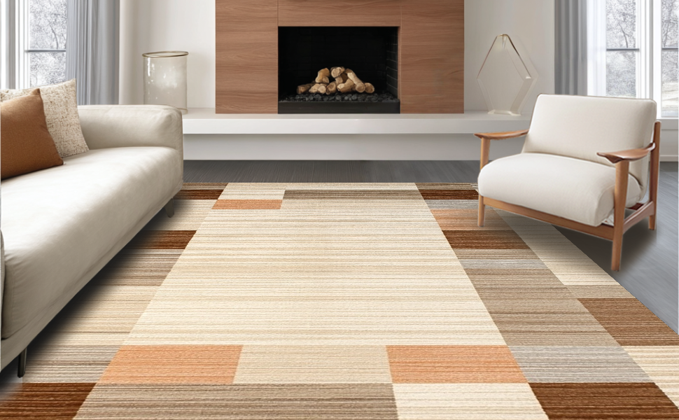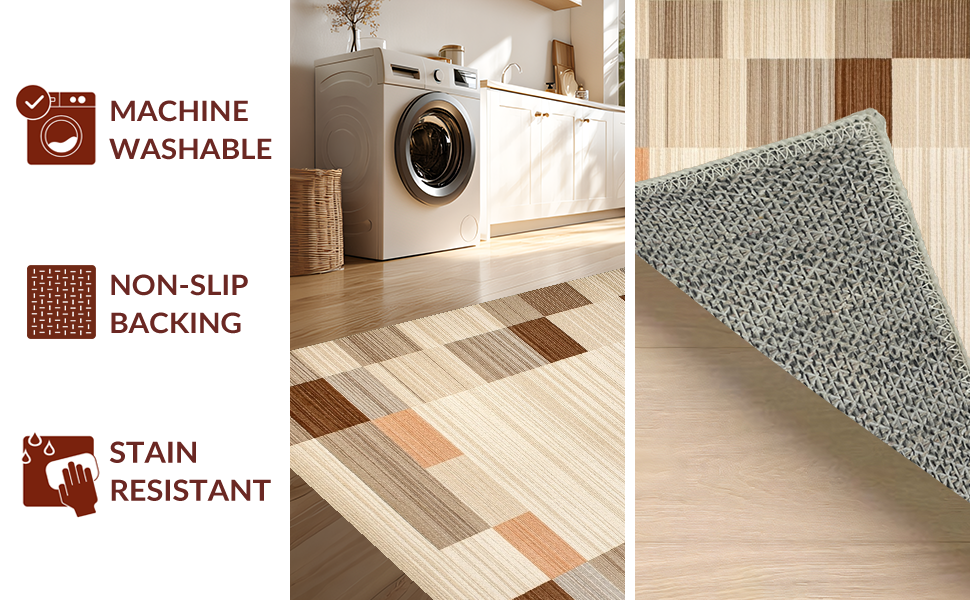 Ultra Soft Area Rug, Non Slip, Stain Resistant, Washable Area Rugs for Living Room, Bedroom, Elegant Neutral Diamond Pattern(Beige) Overview: