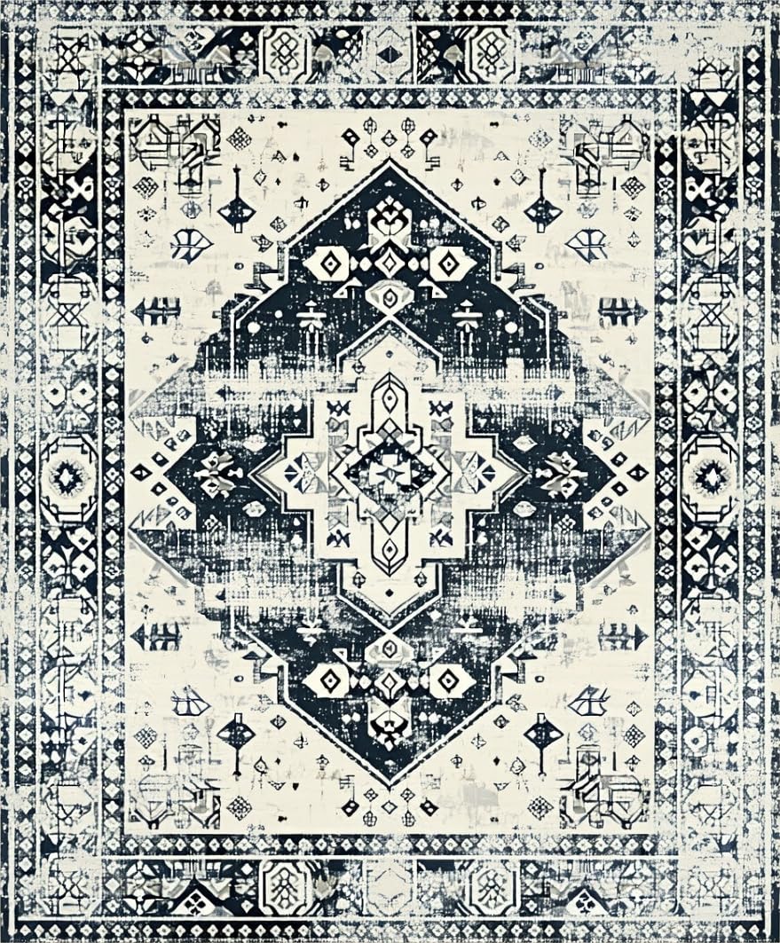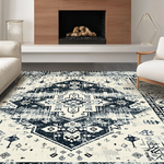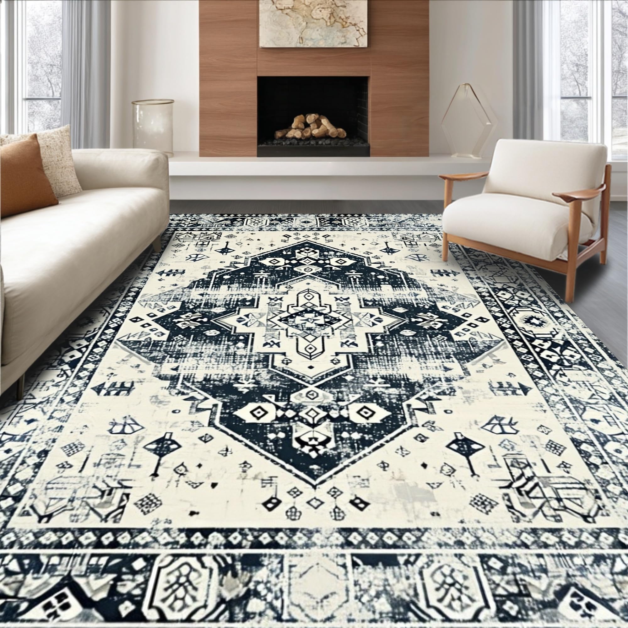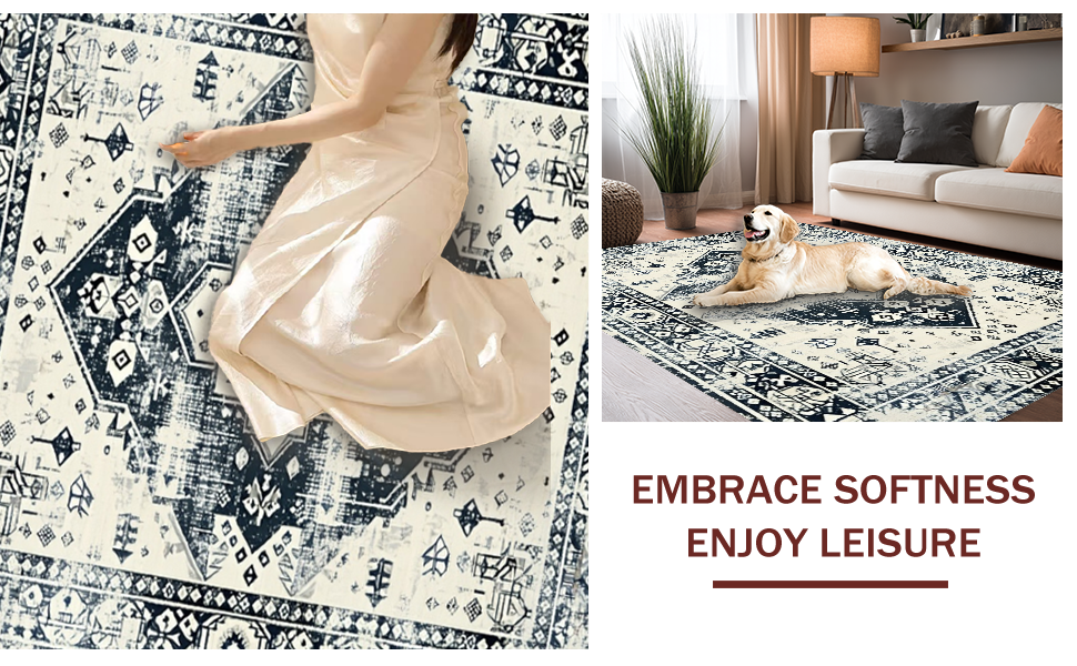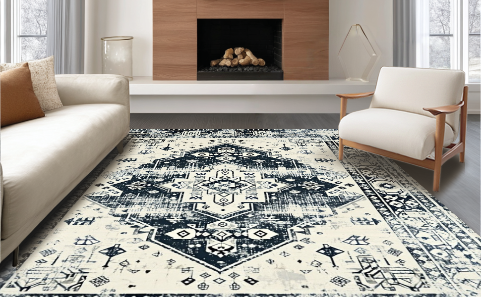 Ultra Soft Area Rug, Non Slip, Stain Resistant, Washable Area Rugs for Living Room, Bedroom, Elegant Neutral Geometric Harmony(Blue) Overview: