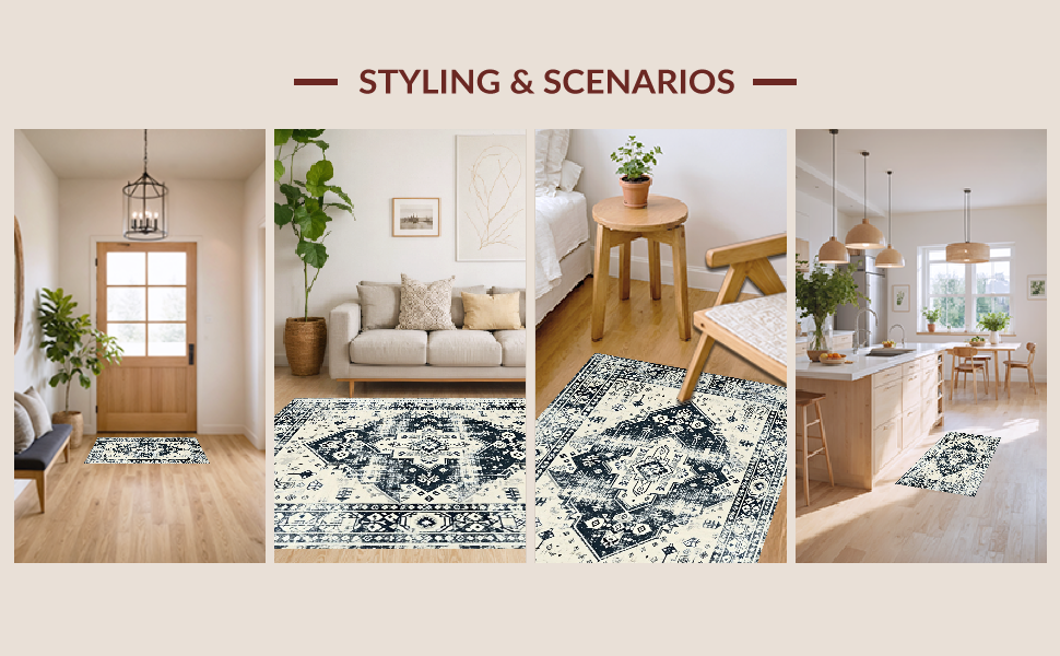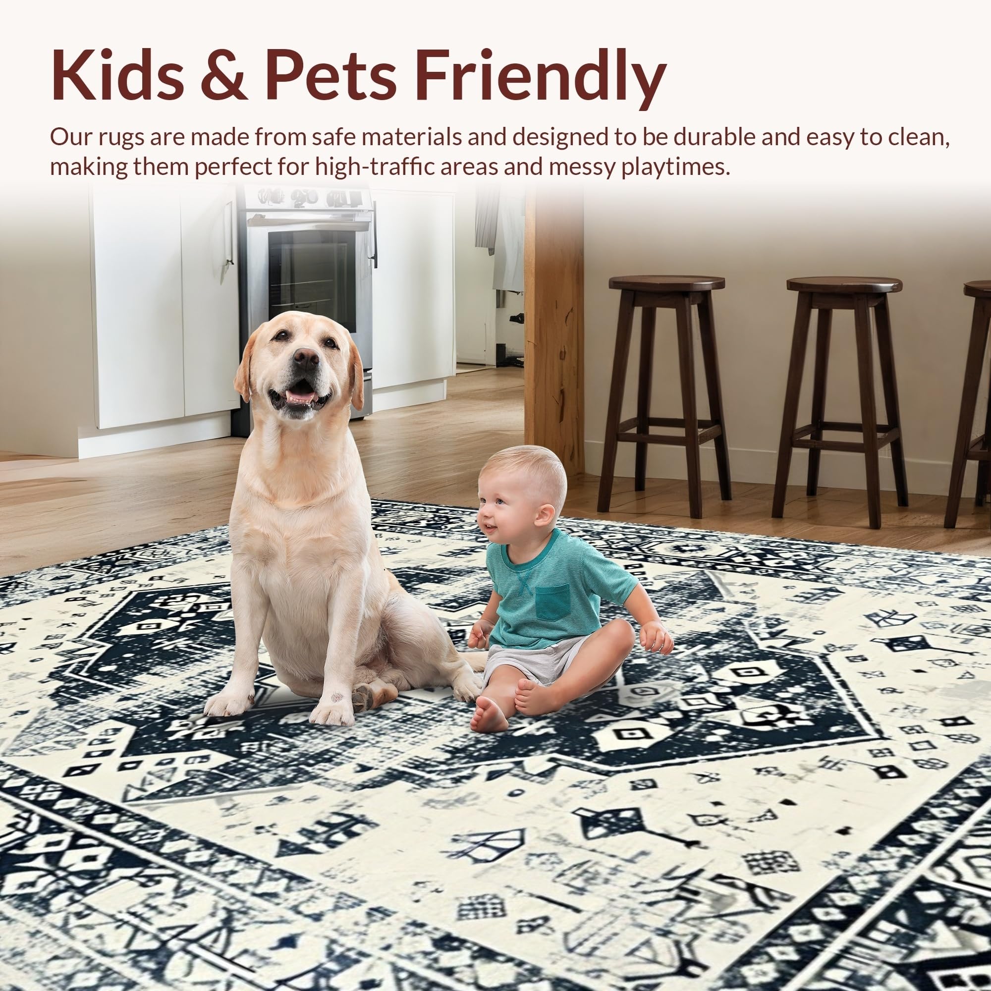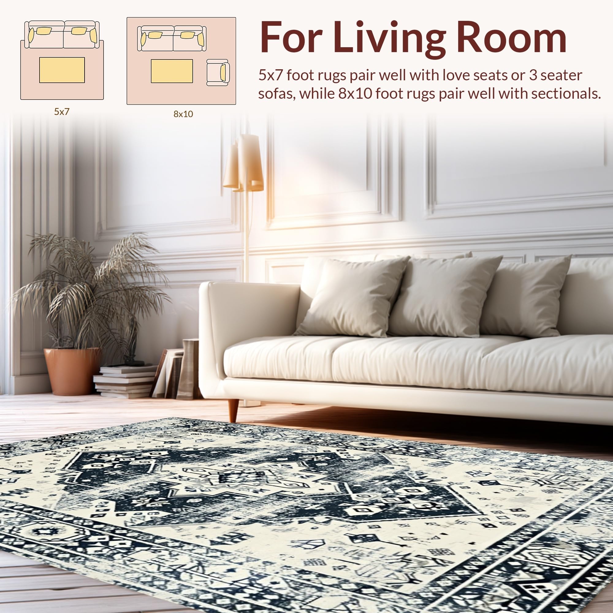 Ultra Soft Area Rug, Non Slip, Stain Resistant, Washable Area Rugs for Living Room, Bedroom, Elegant Neutral Geometric Harmony(Blue) Overview: