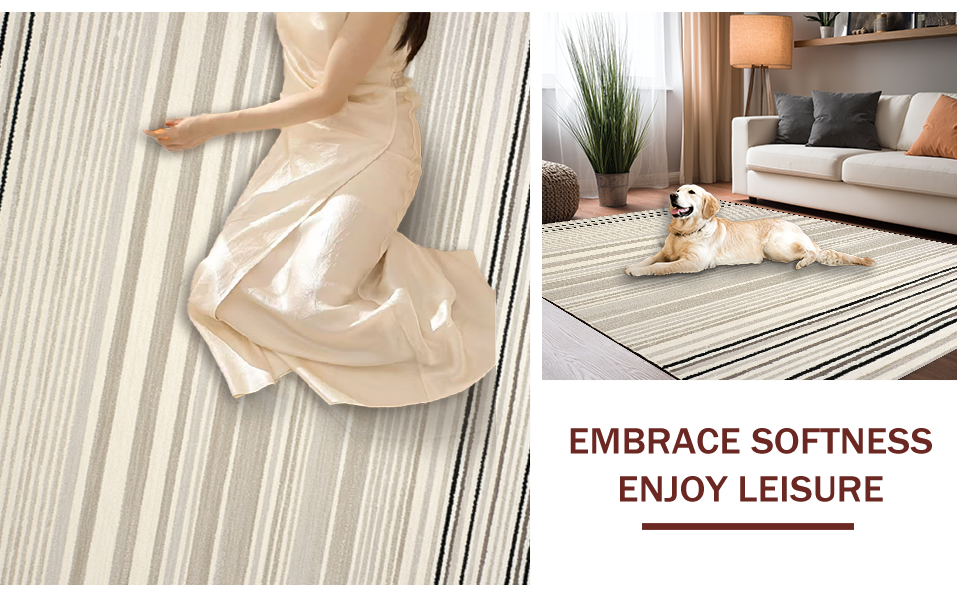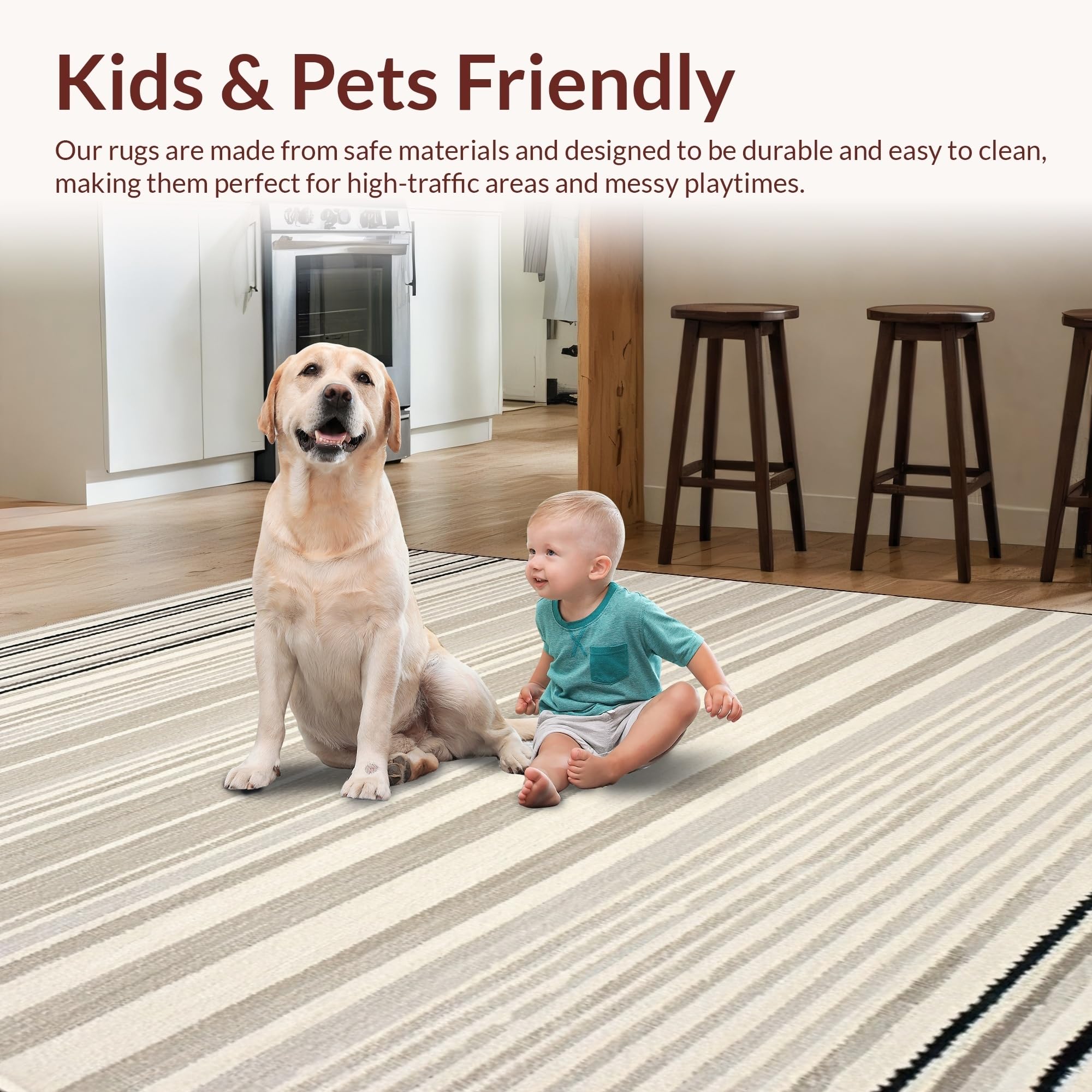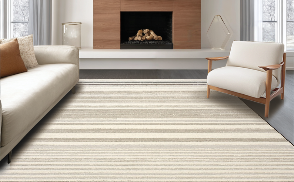 Ultra Soft Area Rug, Non Slip, Stain Resistant, Washable Area Rugs for Living Room, Bedroom, Elegant Neutral Stripe Scheme(Beige) Overview: