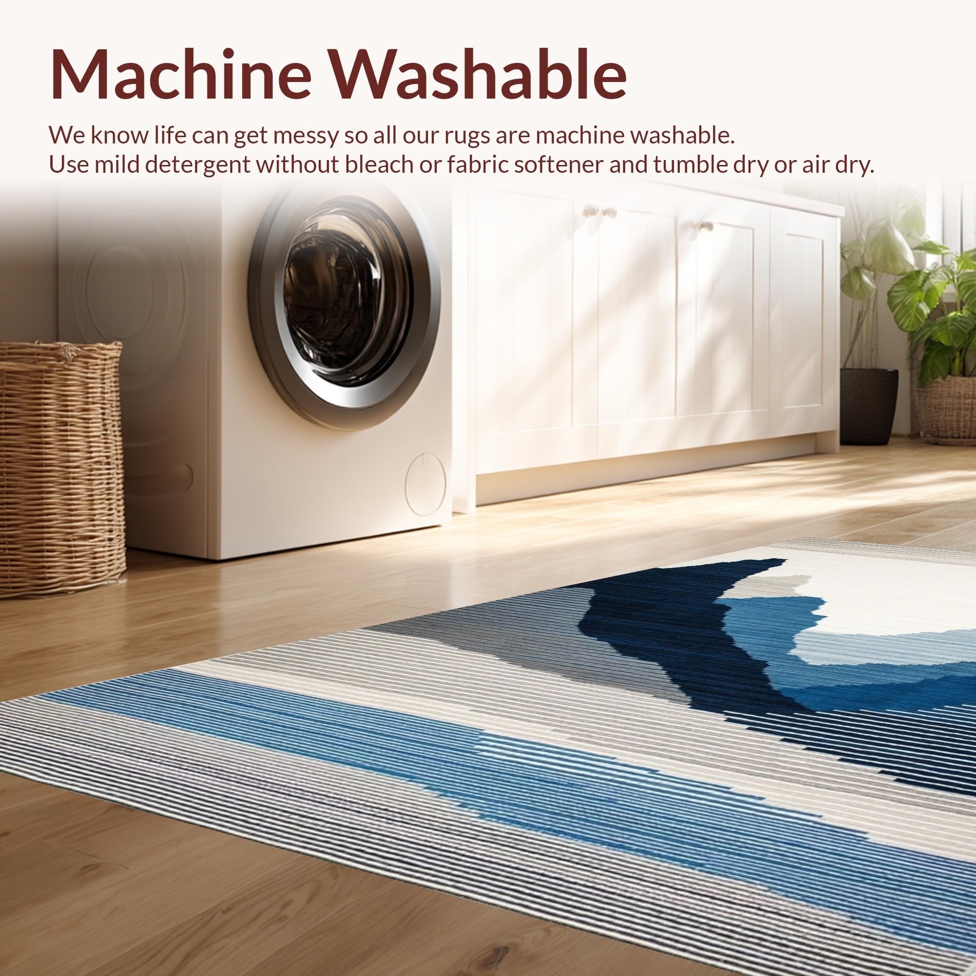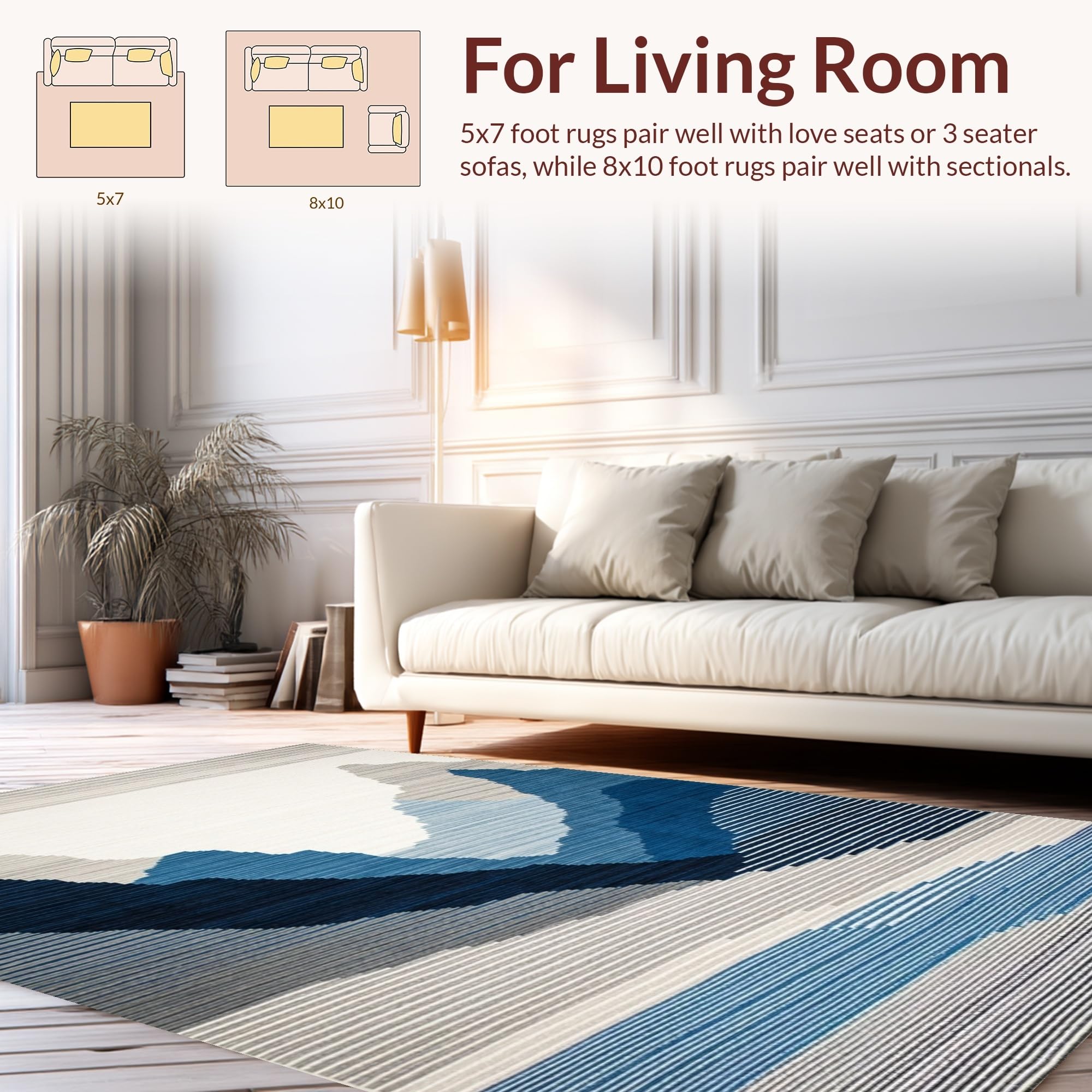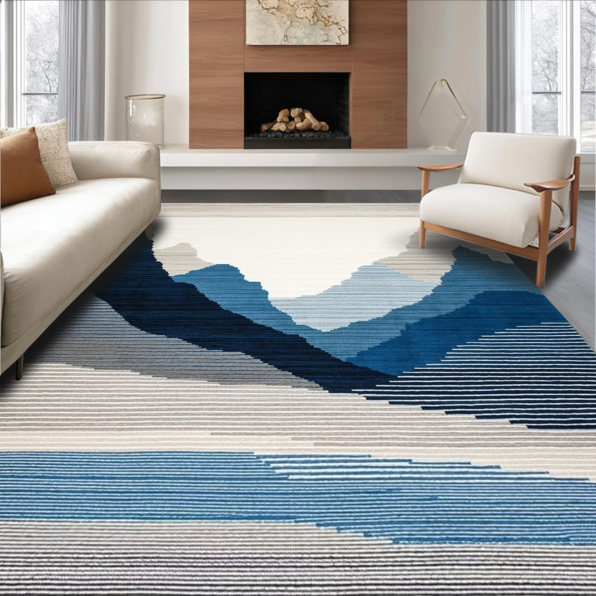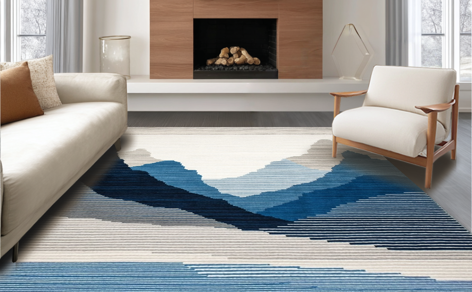Ultra Soft Area Rug, Non Slip, Stain Resistant, Washable Area Rugs for Living Room, Bedroom, Elegant Neutral Toned Mountain Aesthetic(Blue) Overview: