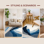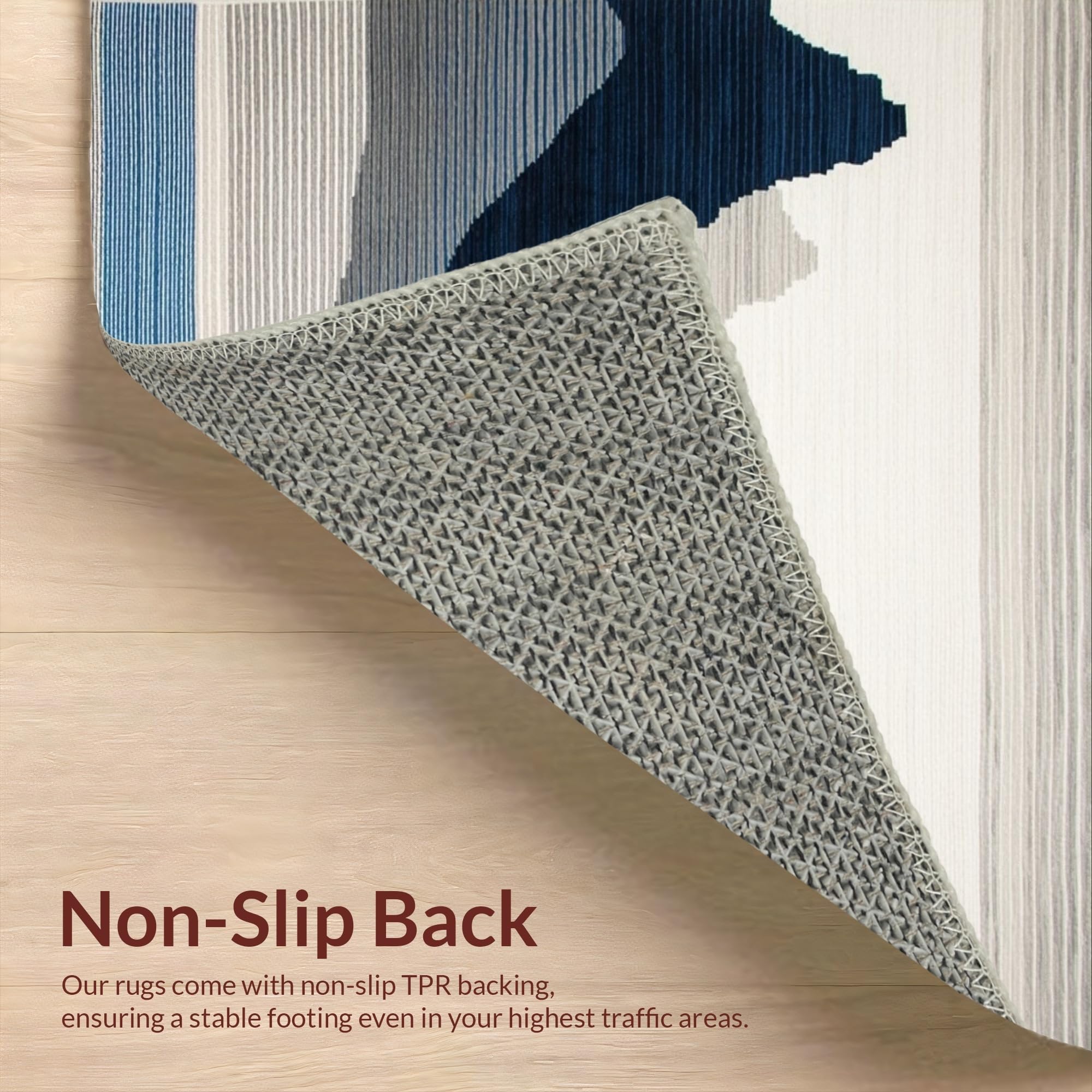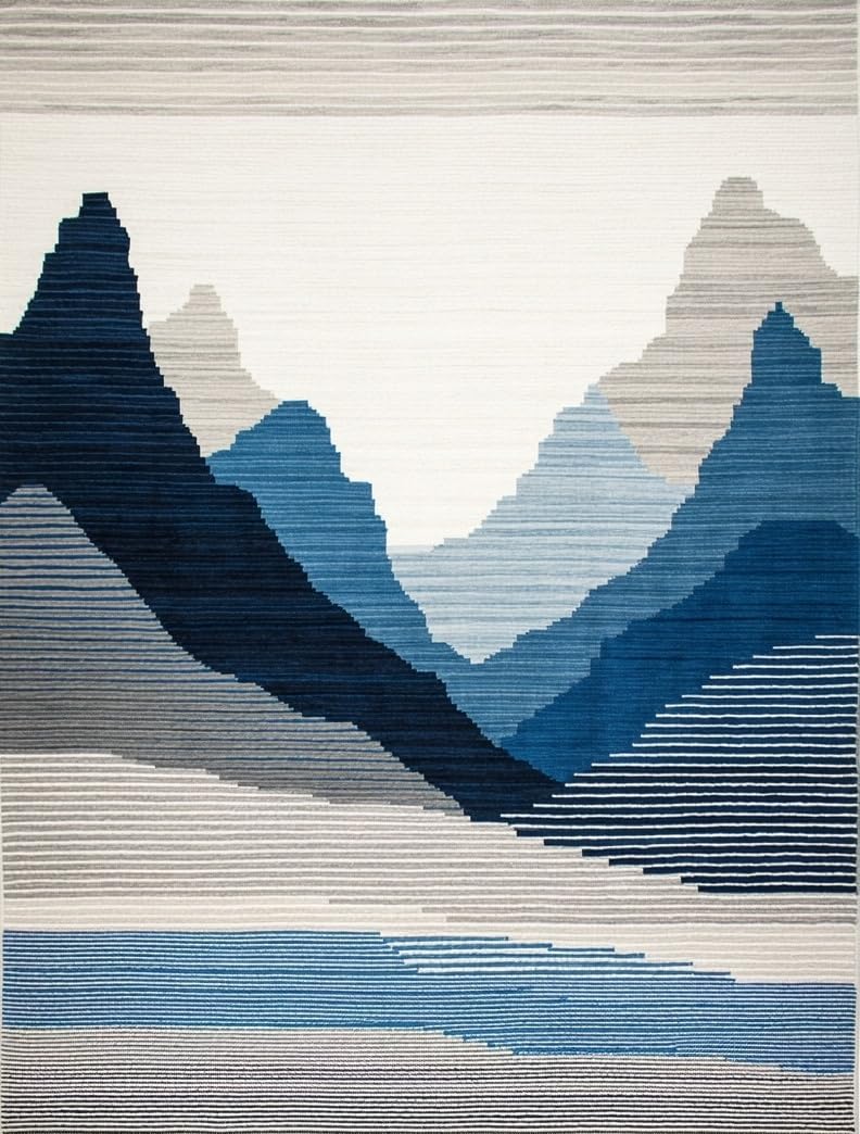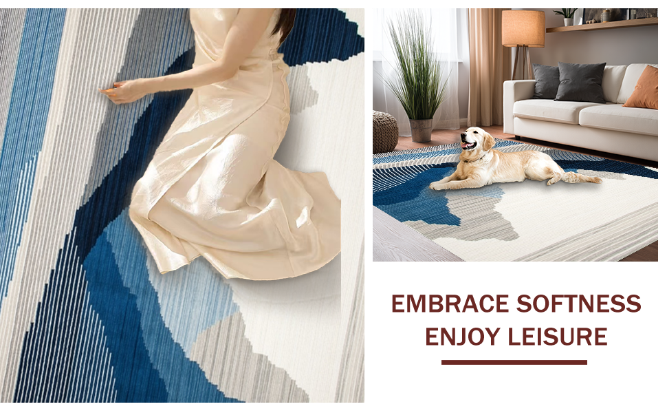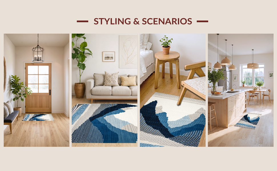Ultra Soft Area Rug, Non Slip, Stain Resistant, Washable Area Rugs for Living Room, Bedroom, Elegant Neutral Toned Mountain Aesthetic(Blue) Overview: