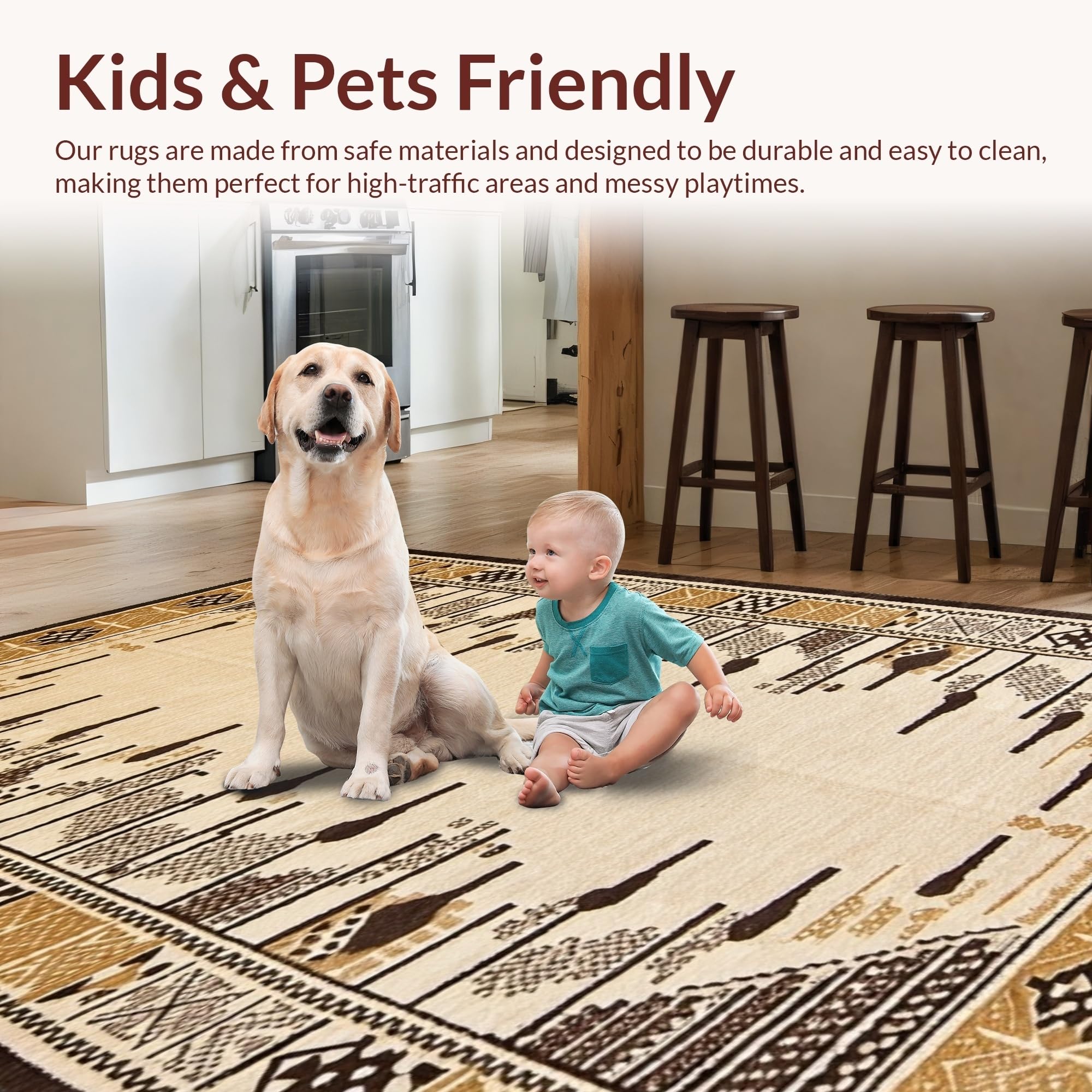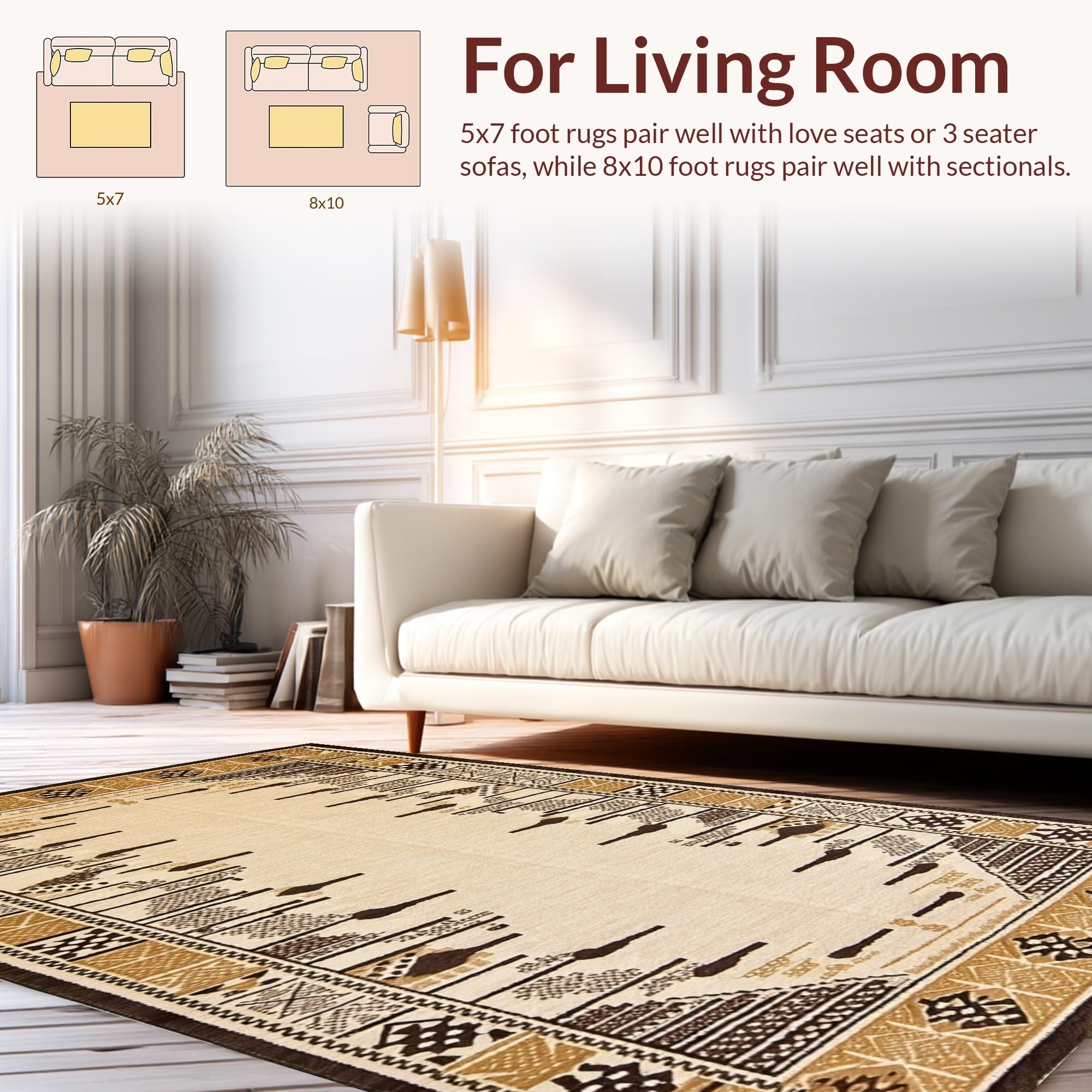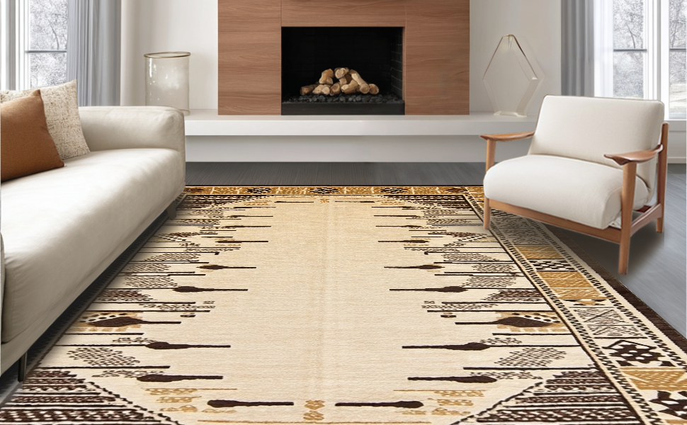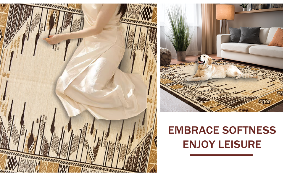 Ultra Soft Area Rug, Non Slip, Stain Resistant, Washable Area Rugs for Living Room, Bedroom, Elegant Neutral Toned Texture(Beige) Overview: