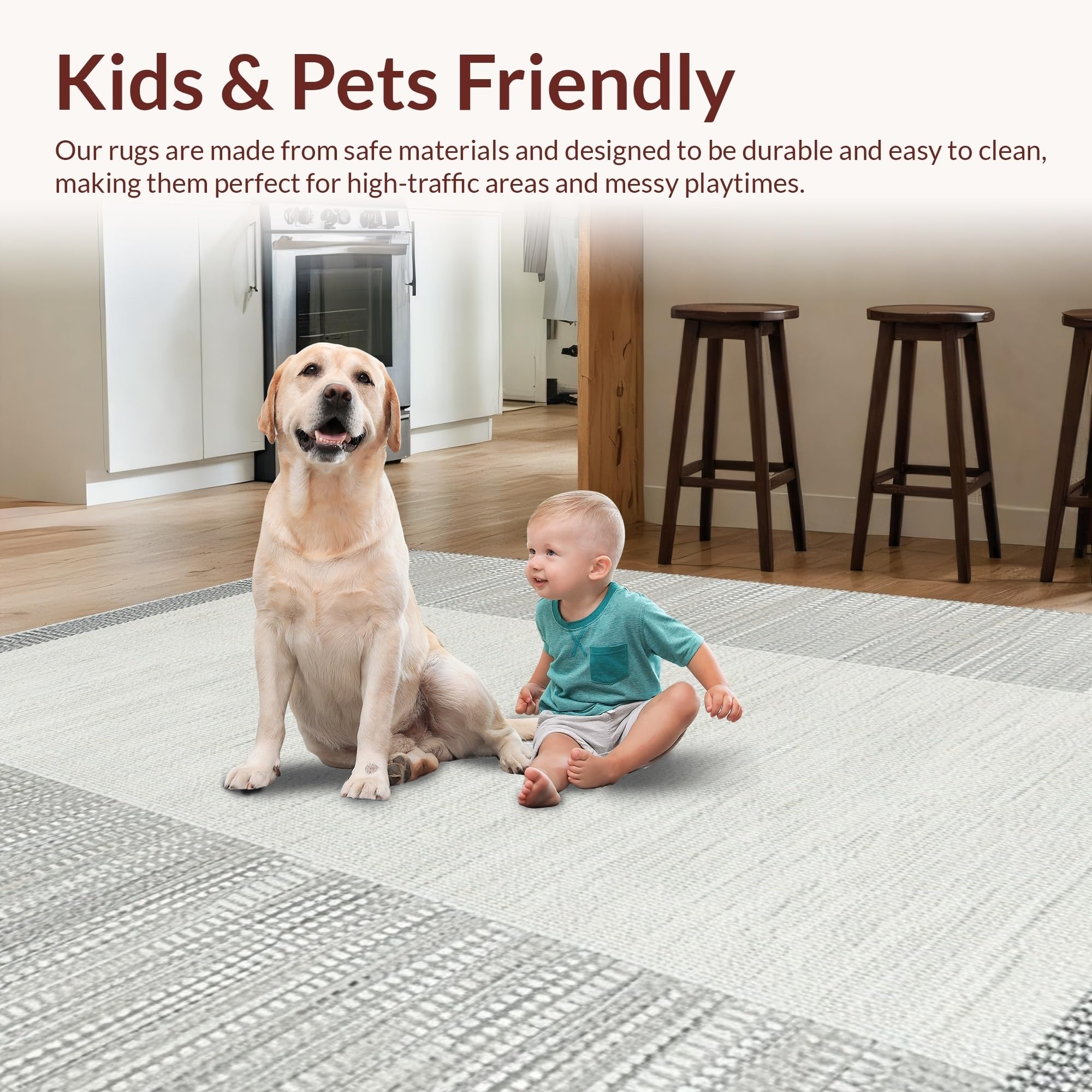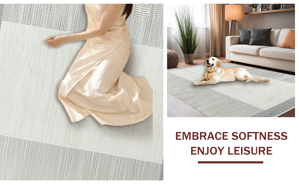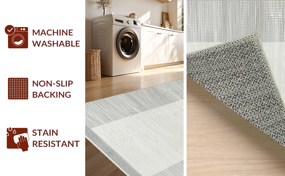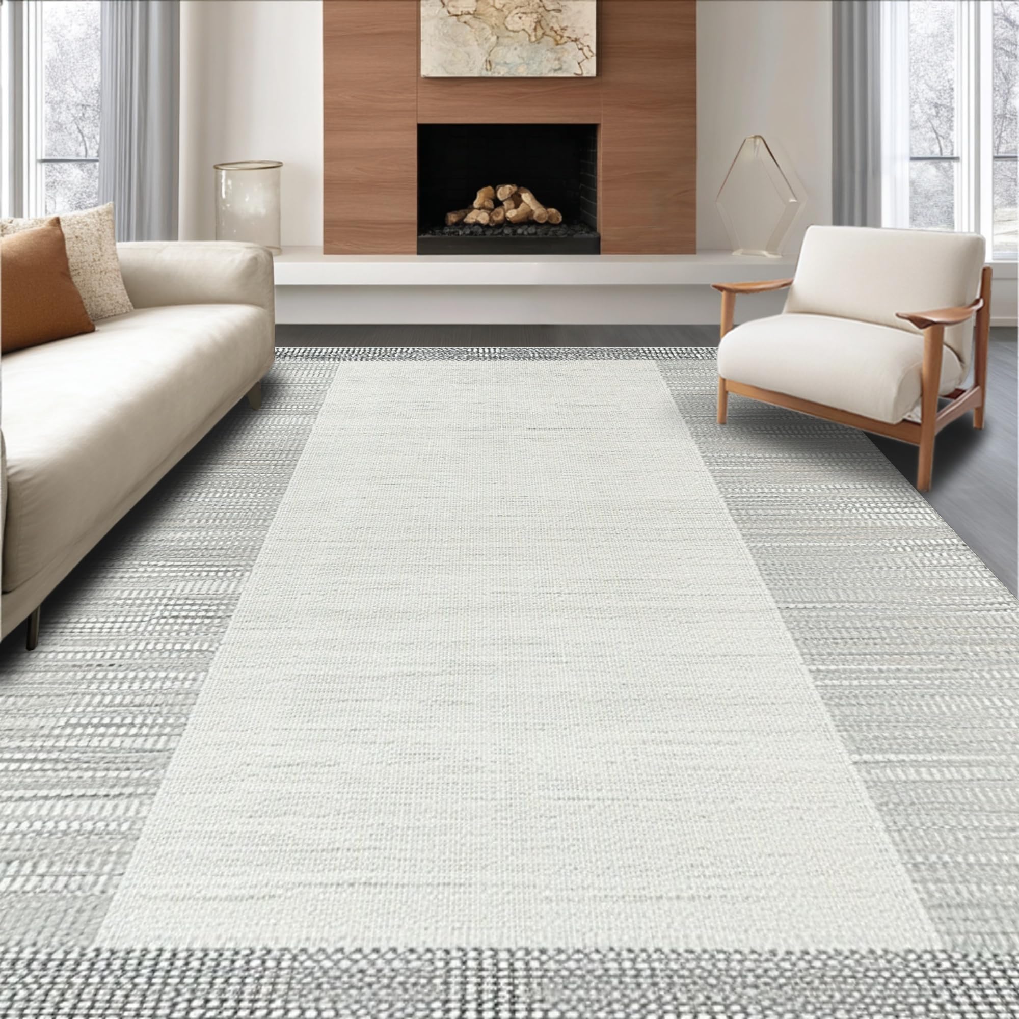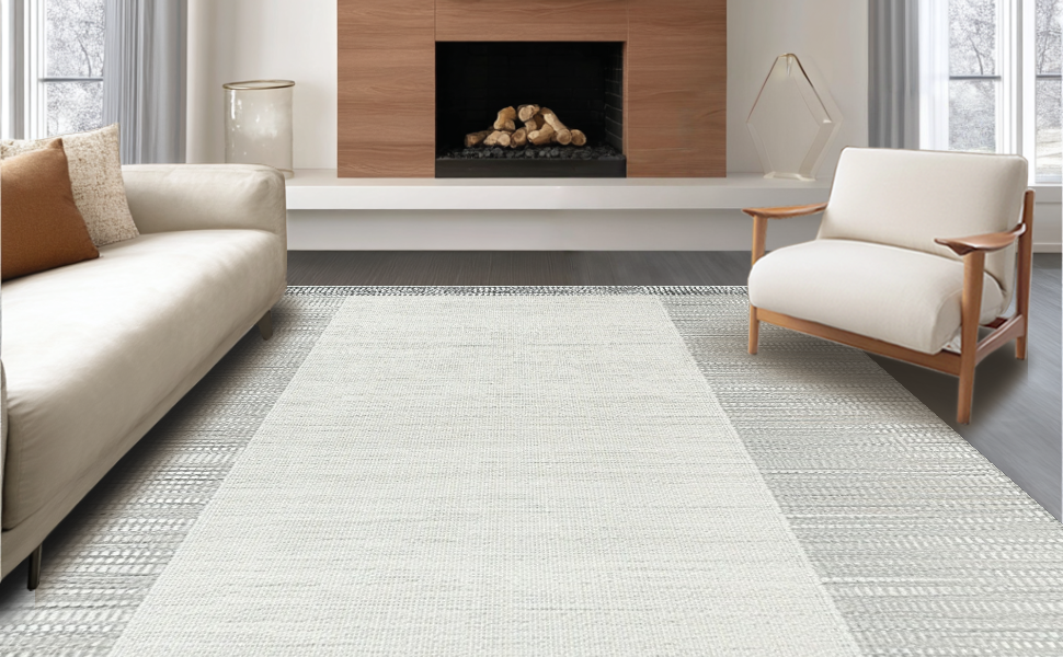 Ultra Soft Area Rug, Non Slip, Stain Resistant, Washable Area Rugs for Living Room, Bedroom, Elegant Neutral Toned Weave Design(Gray) Overview: