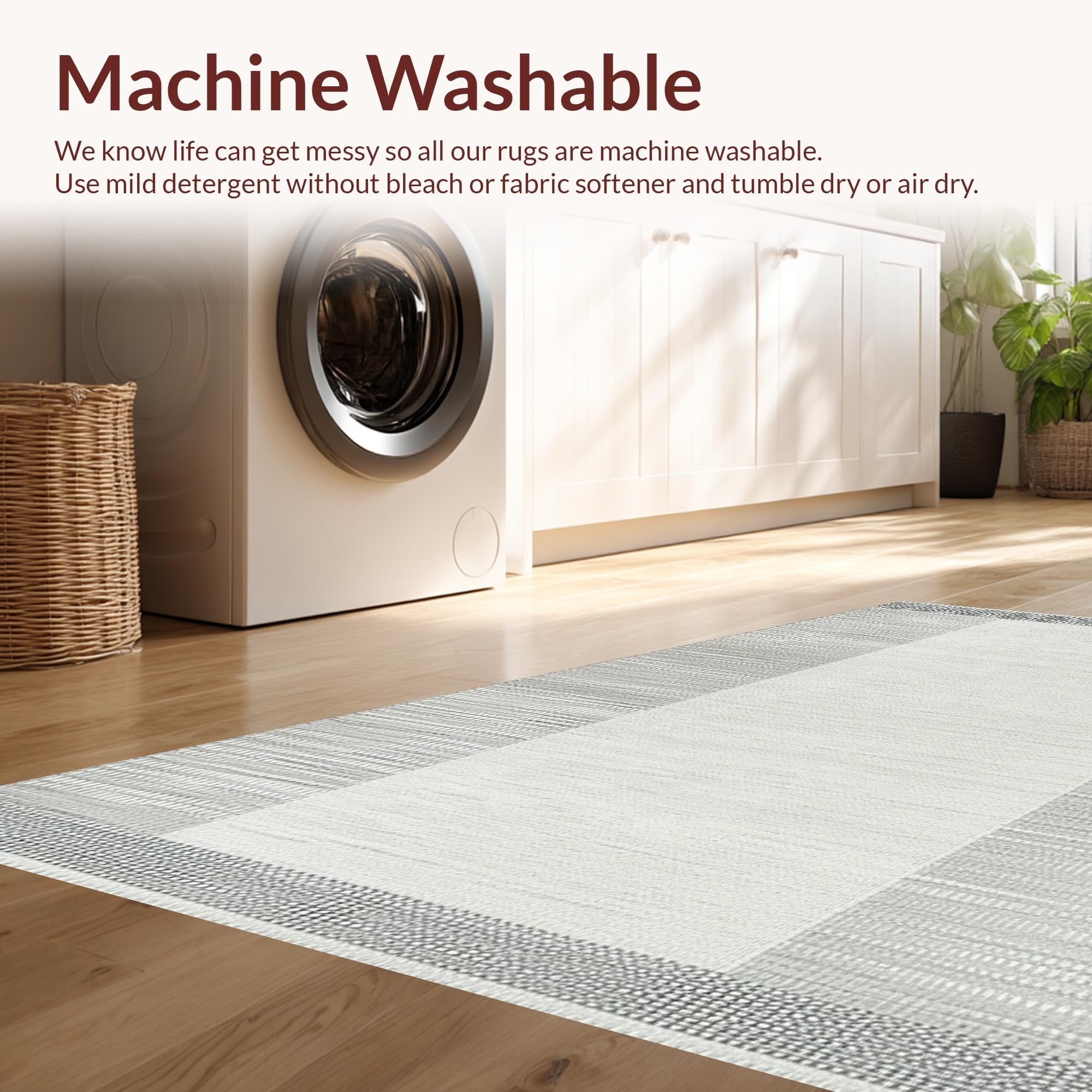 - Machine Washable: Our rugs can be easily thrown in the wash machine.