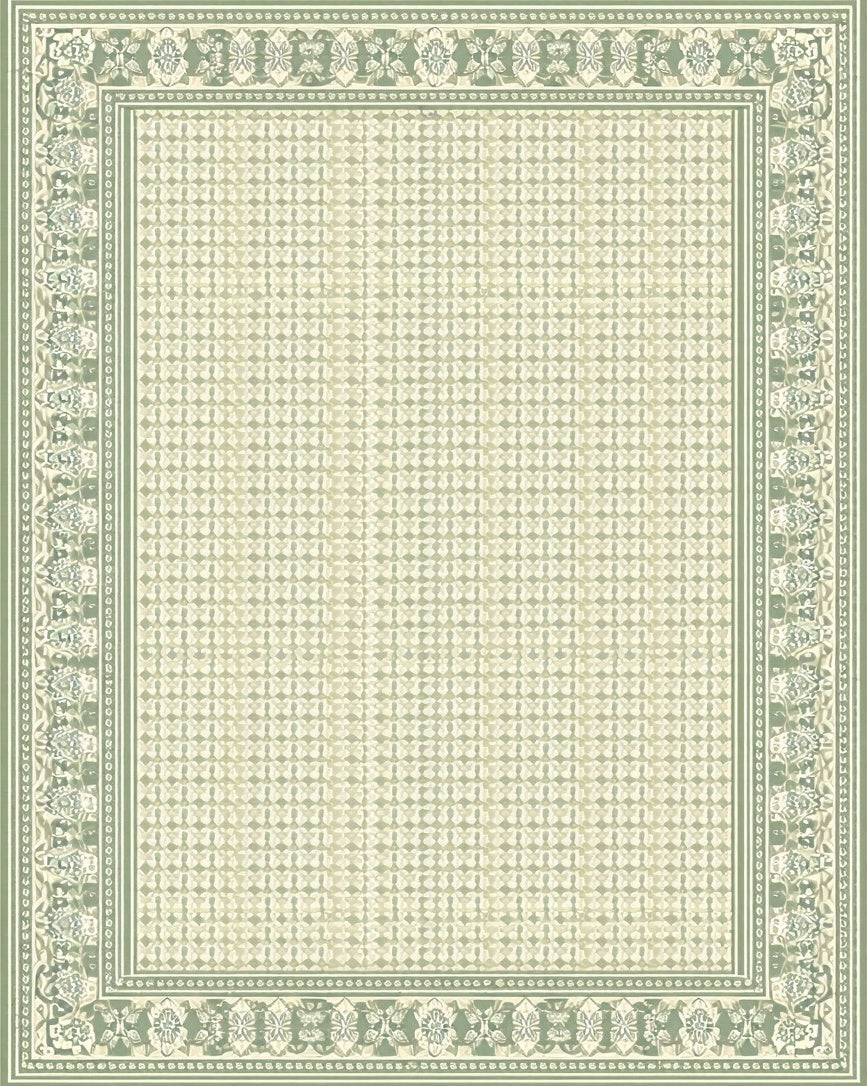 Elegant Non Slip with Beige Ground and Sage Green Ornate Geometric(Green)