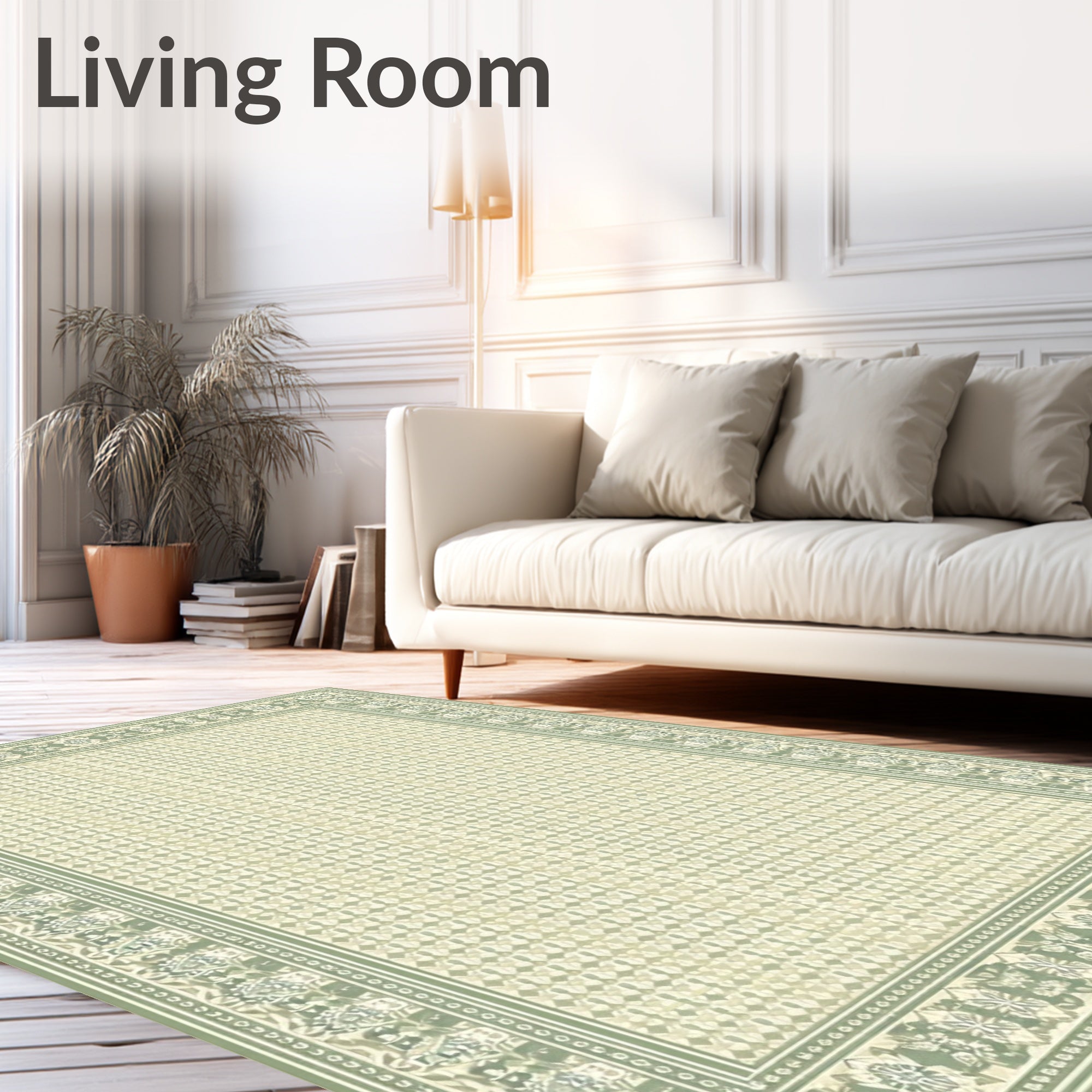 Ultra Soft Area Rug, Non Slip, Stain Resistant, Washable Area Rugs for Living Room, Bedroom, Elegant Non Slip with Beige Ground and Sage Green Ornate Geometric(Green) Overview: