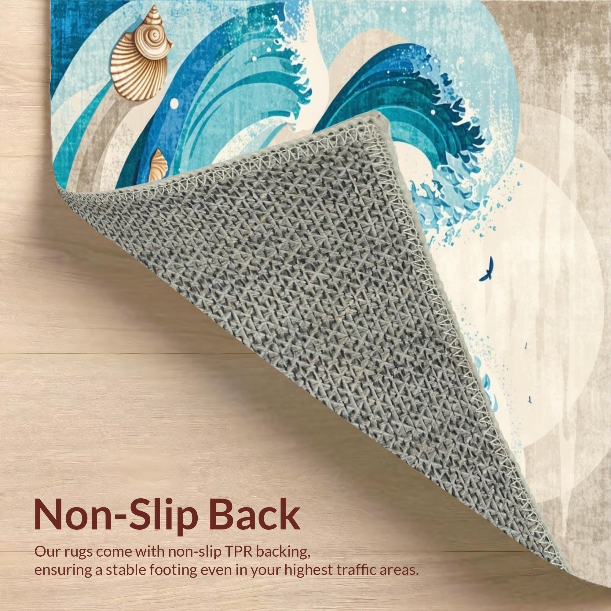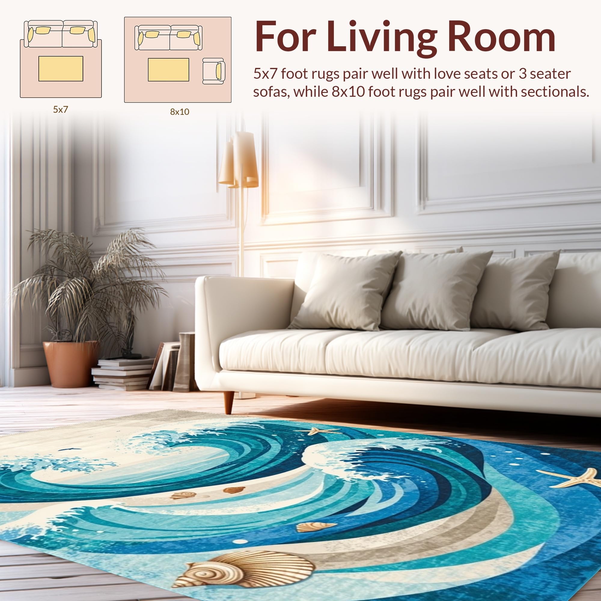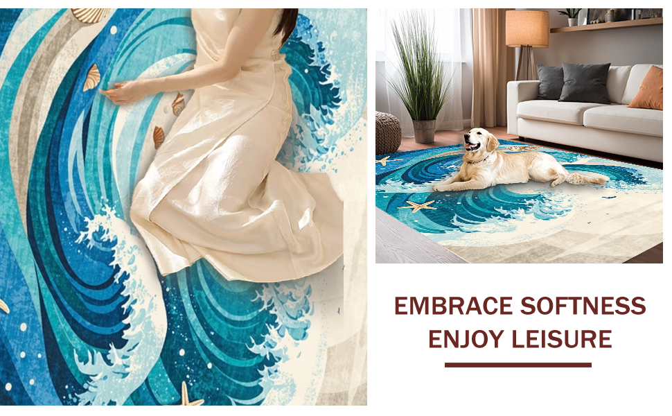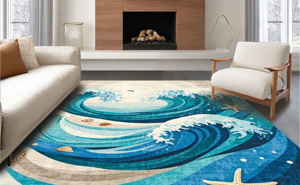 Ultra Soft Area Rug, Non Slip, Stain Resistant, Washable Area Rugs for Living Room, Bedroom, Elegant Ocean Wave Aesthetic(Blue) Overview: