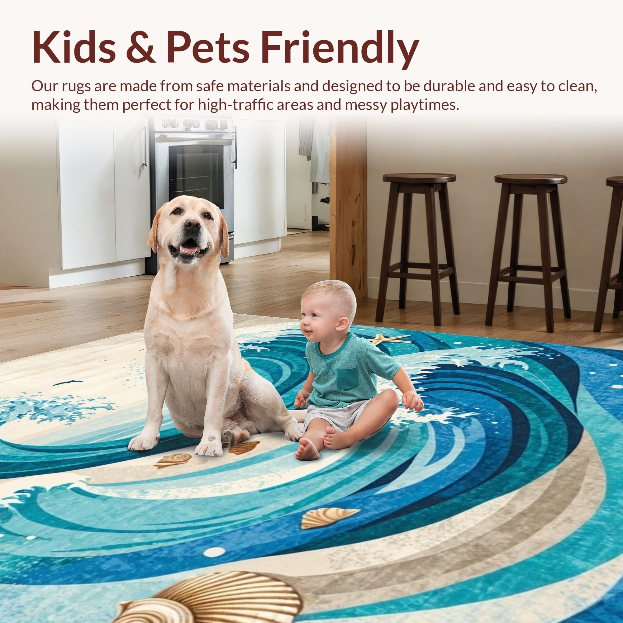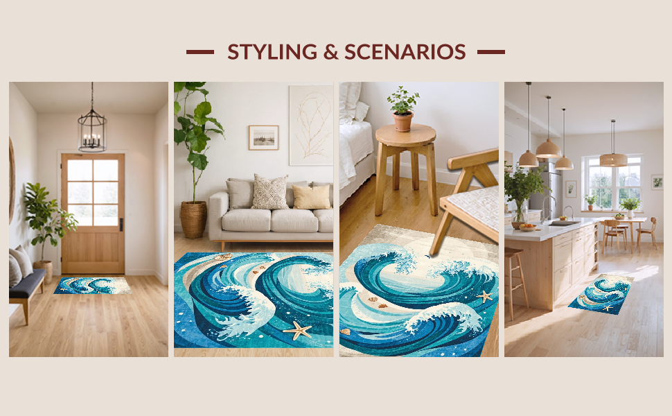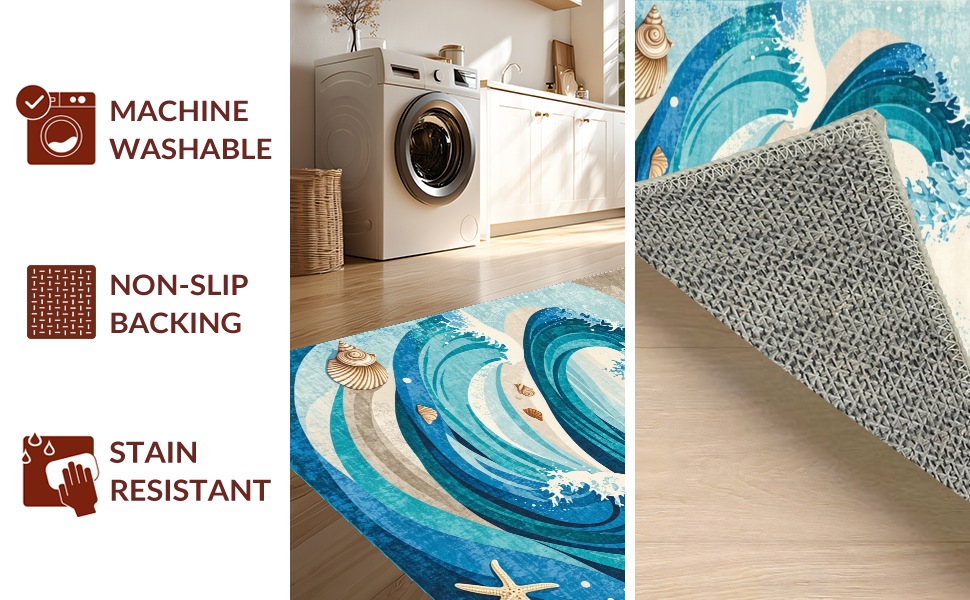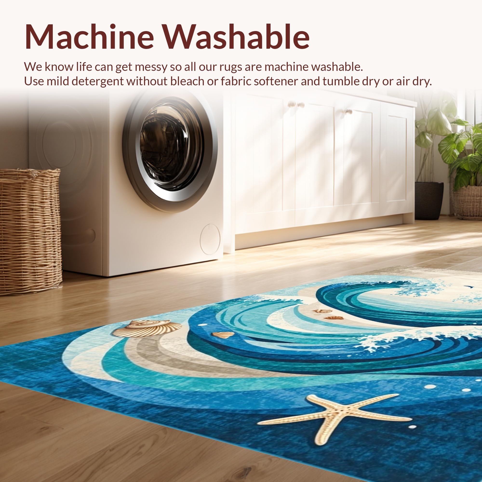 Ultra Soft Area Rug, Non Slip, Stain Resistant, Washable Area Rugs for Living Room, Bedroom, Elegant Ocean Wave Aesthetic(Blue) Overview: