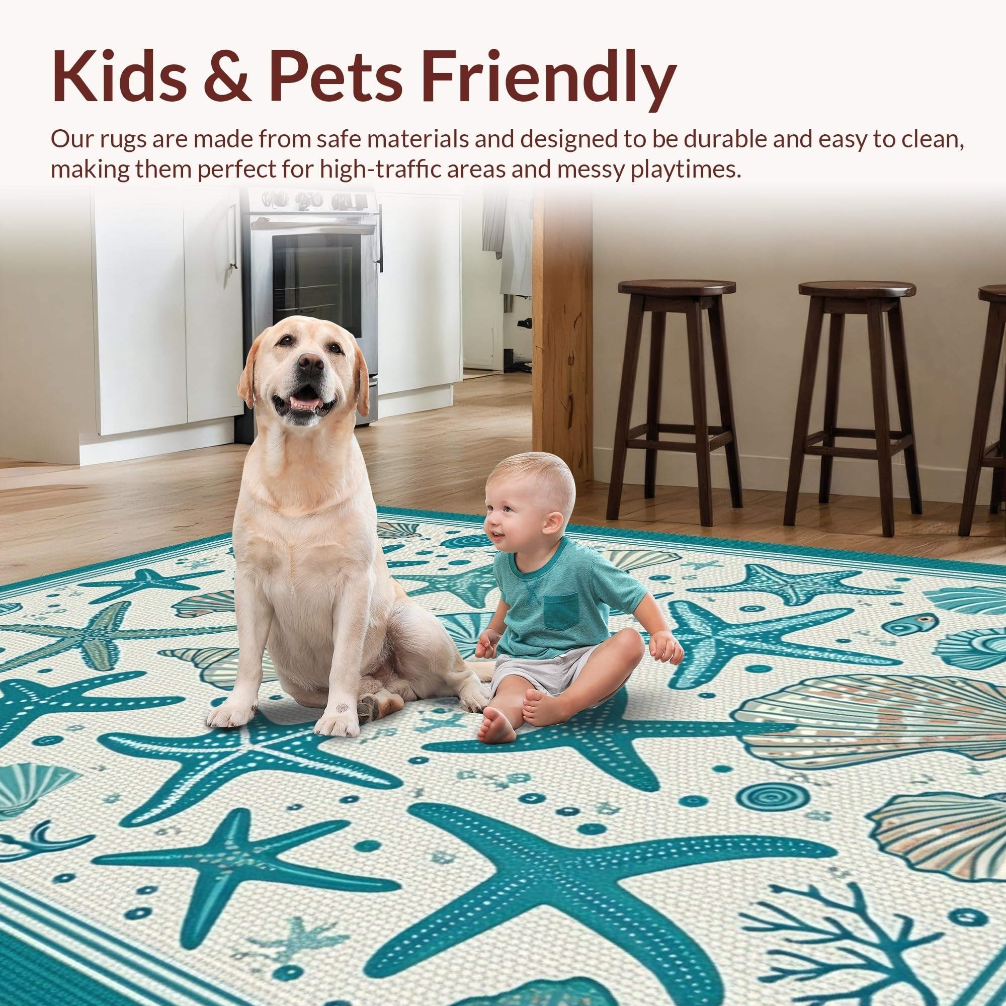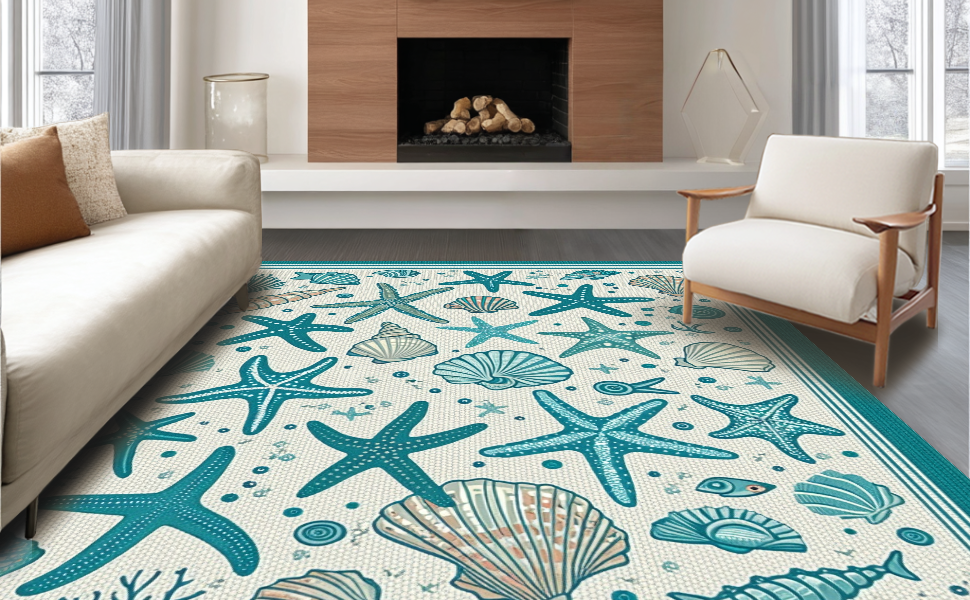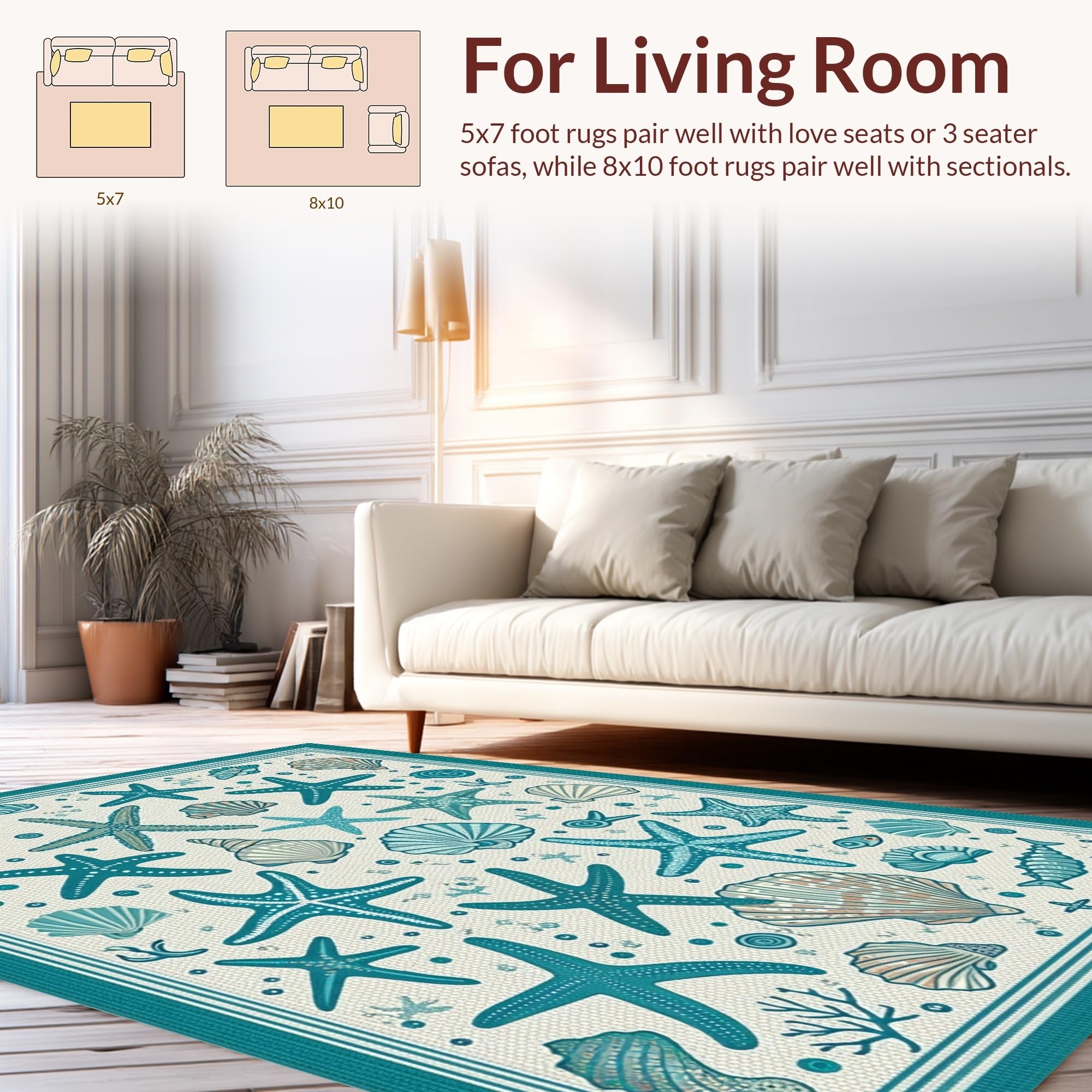 Ultra Soft Area Rug, Non Slip, Stain Resistant, Washable Area Rugs for Living Room, Bedroom, Elegant Oceanic Visual Theme(White) Overview:
