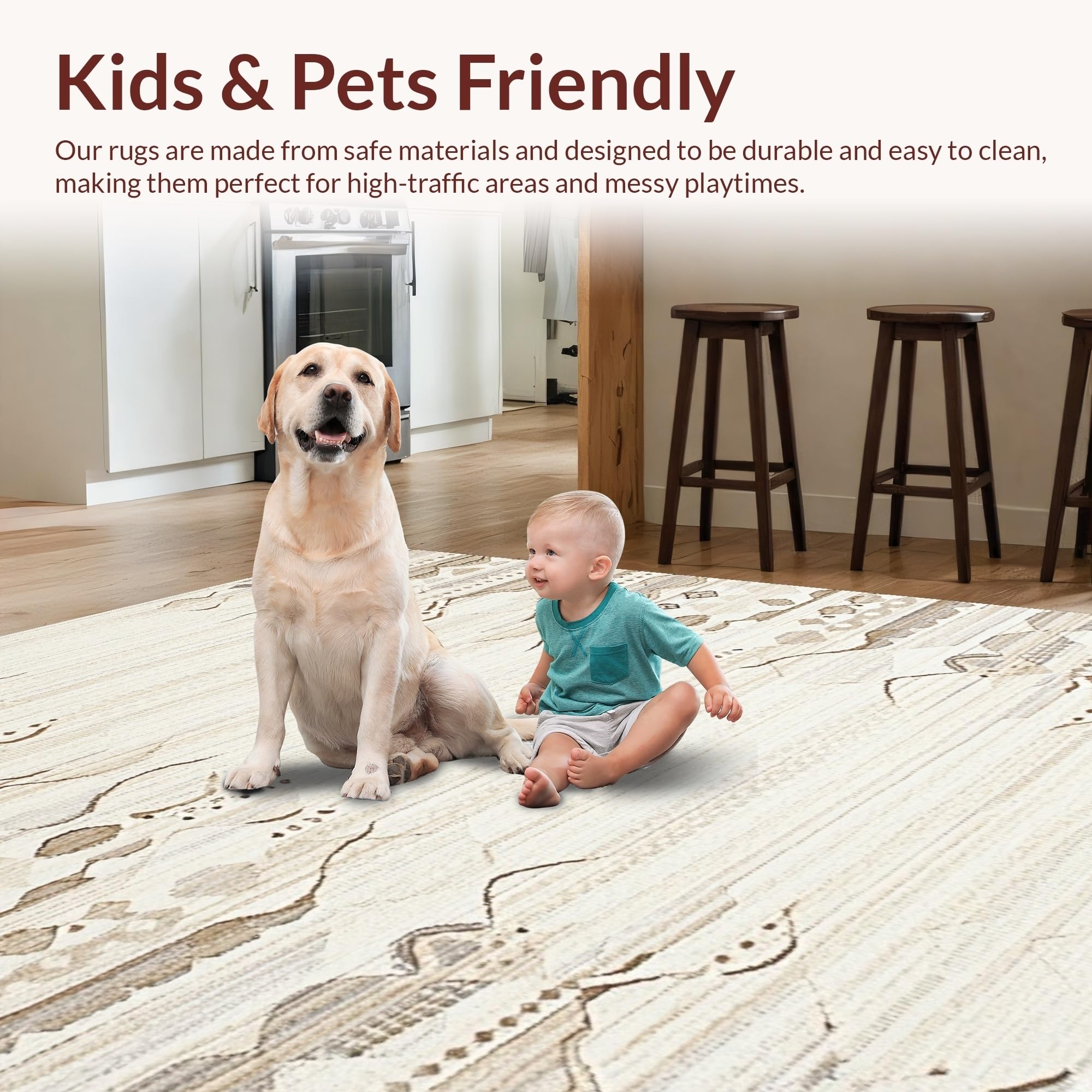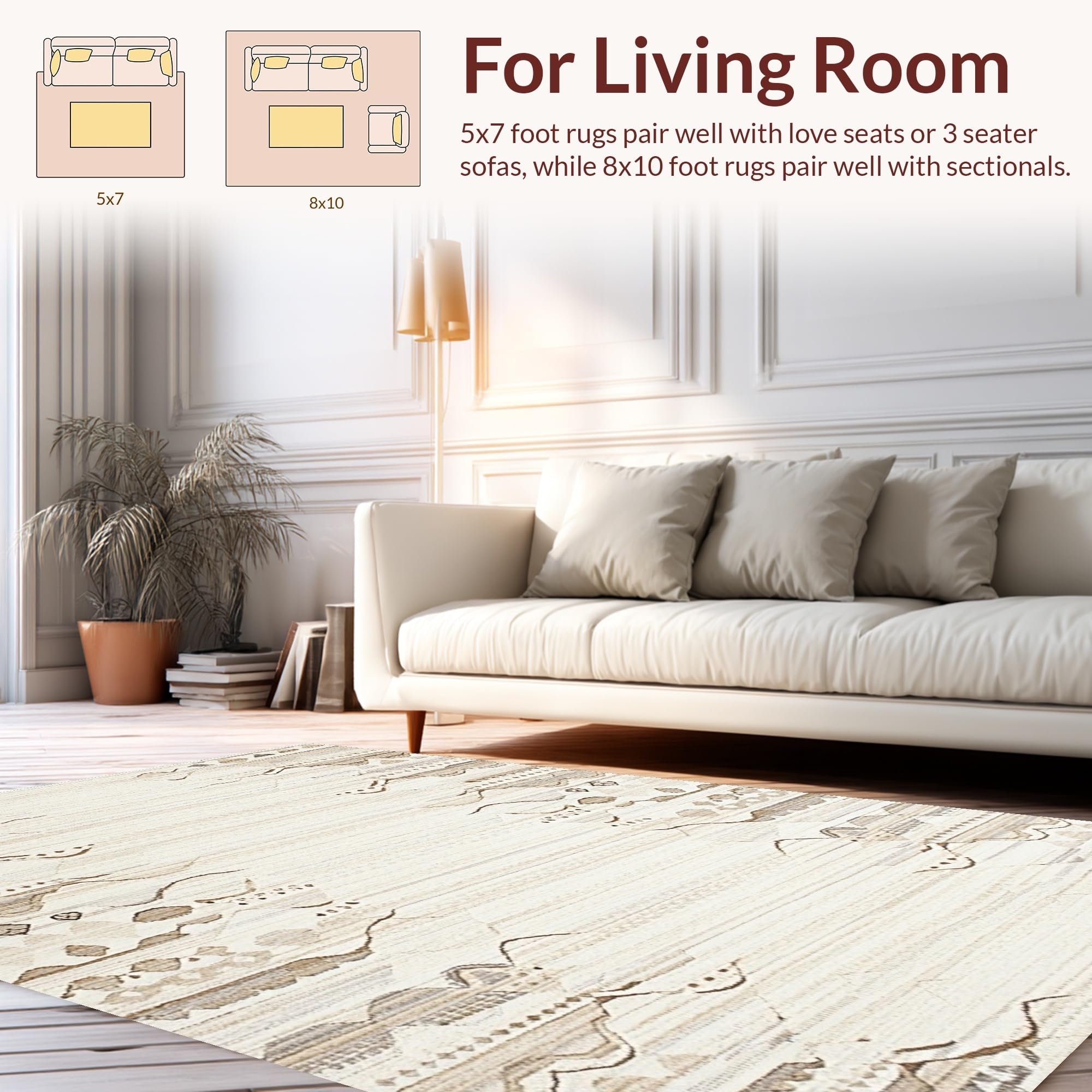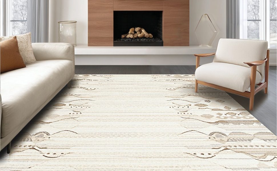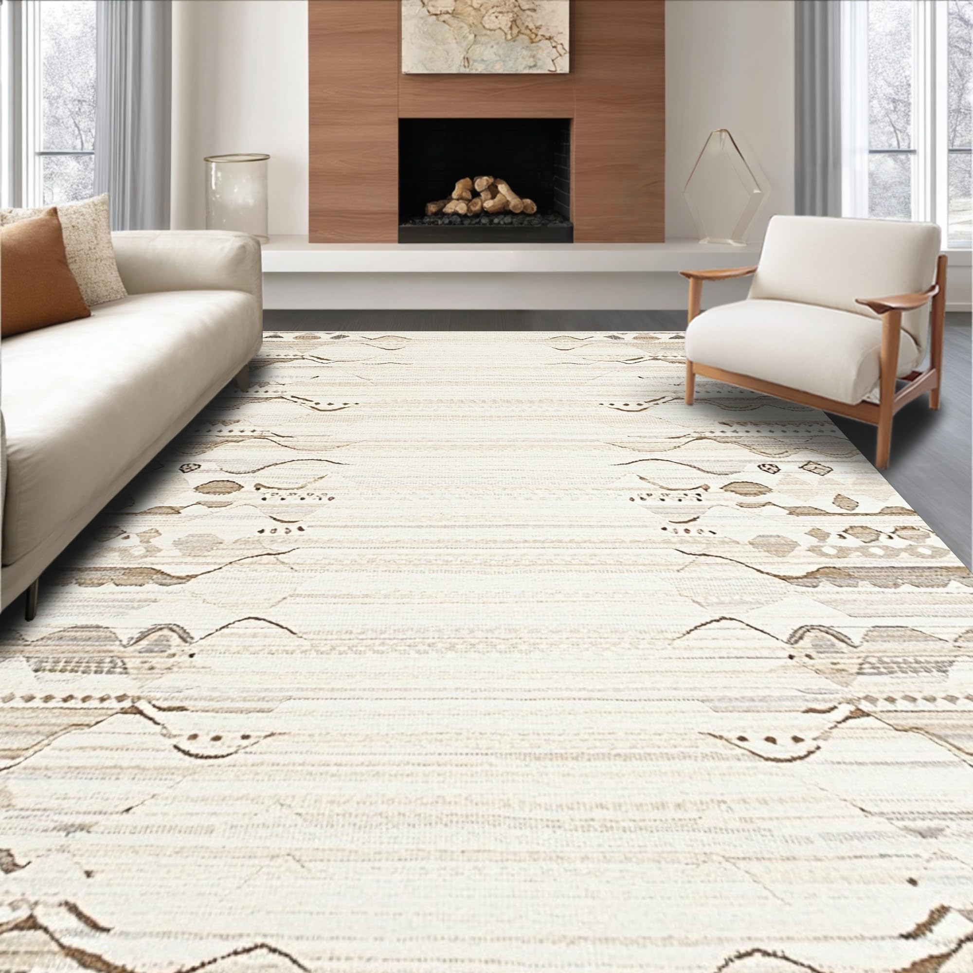 Ultra Soft Area Rug, Non Slip, Stain Resistant, Washable Area Rugs for Living Room, Bedroom, Elegant Off White Scalloped Aesthetic(Beige) Overview: