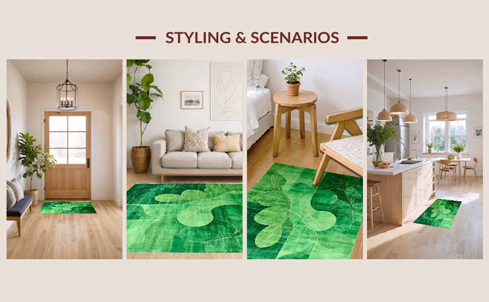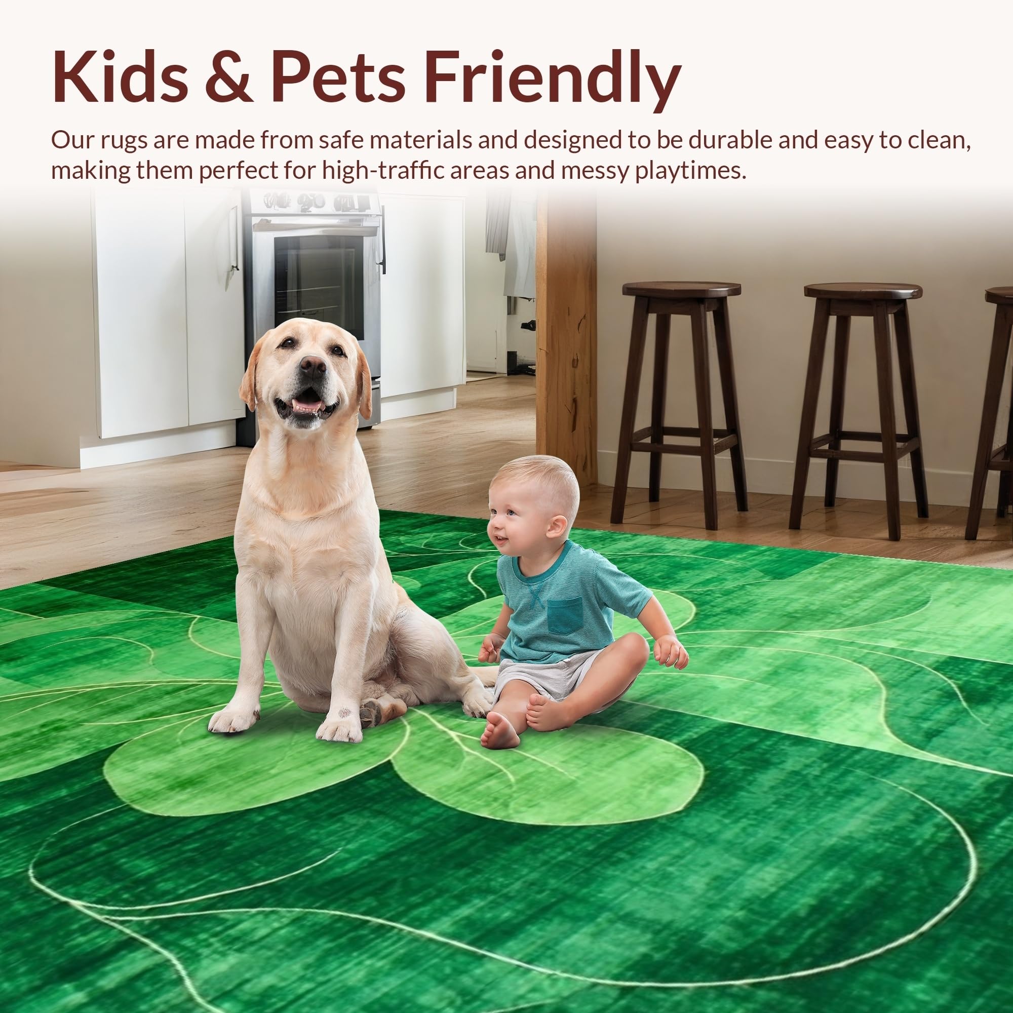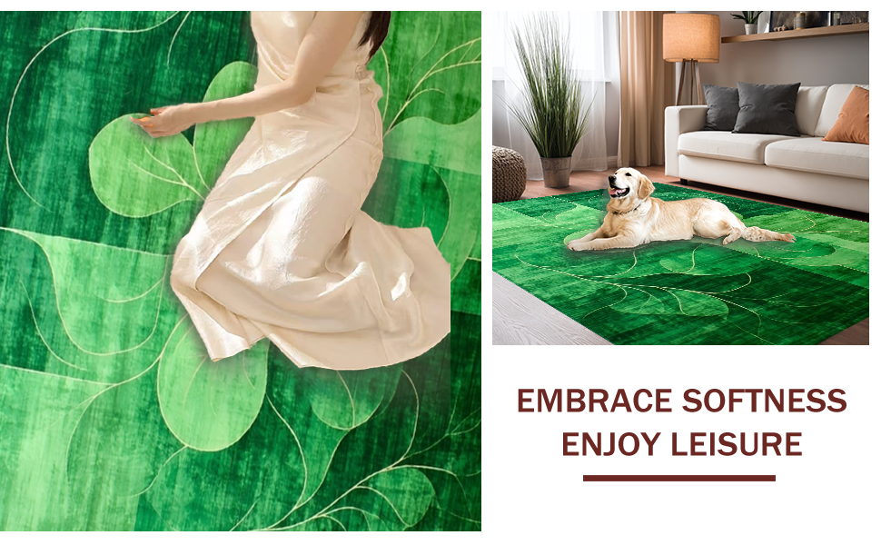 Ultra Soft Area Rug, Non Slip, Stain Resistant, Washable Area Rugs for Living Room, Bedroom, Elegant Olive Green Abstract Design(Green) Overview: