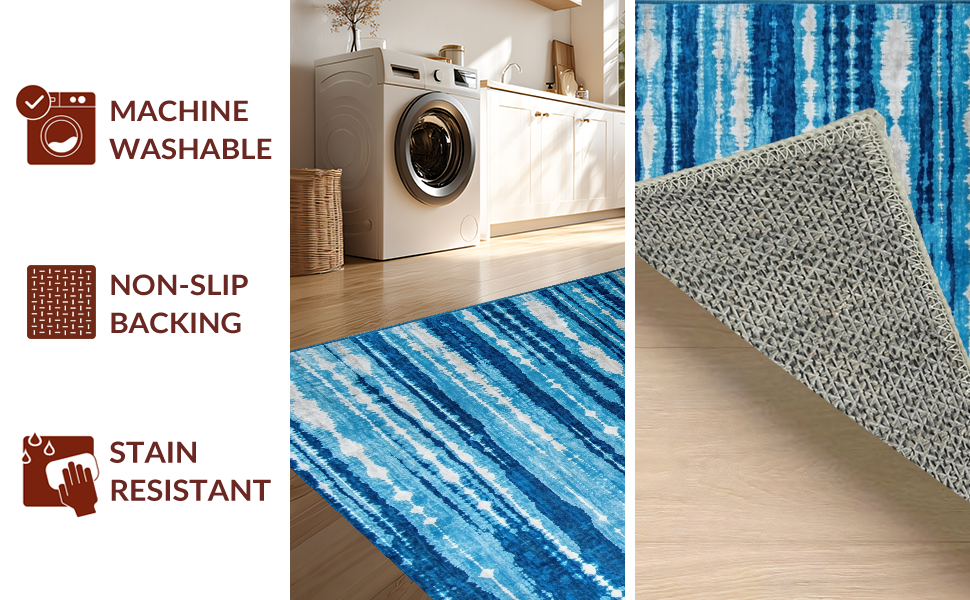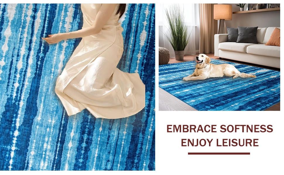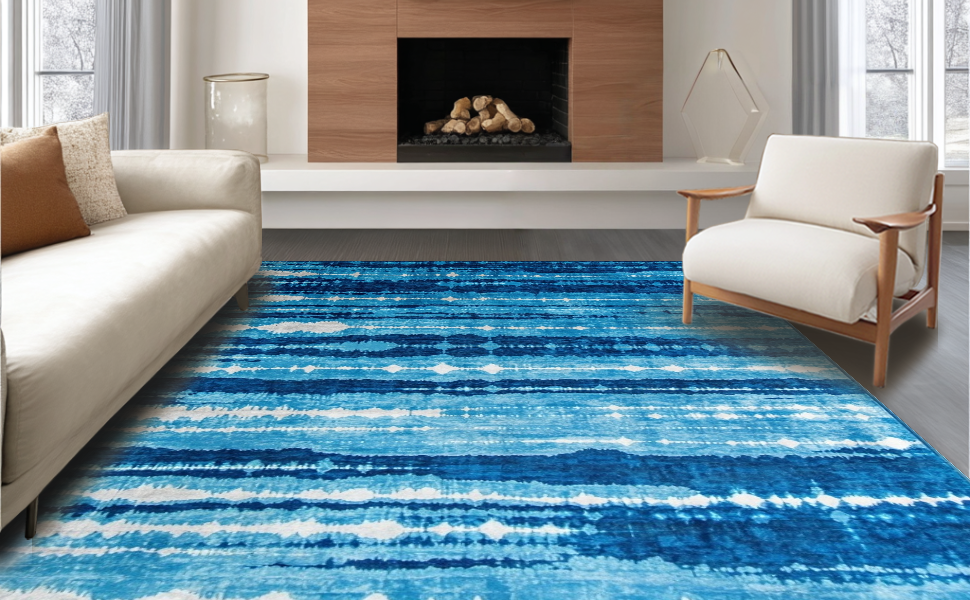 Ultra Soft Area Rug, Non Slip, Stain Resistant, Washable Area Rugs for Living Room, Bedroom, Elegant Ombre Textured Finish(Blue) Overview: