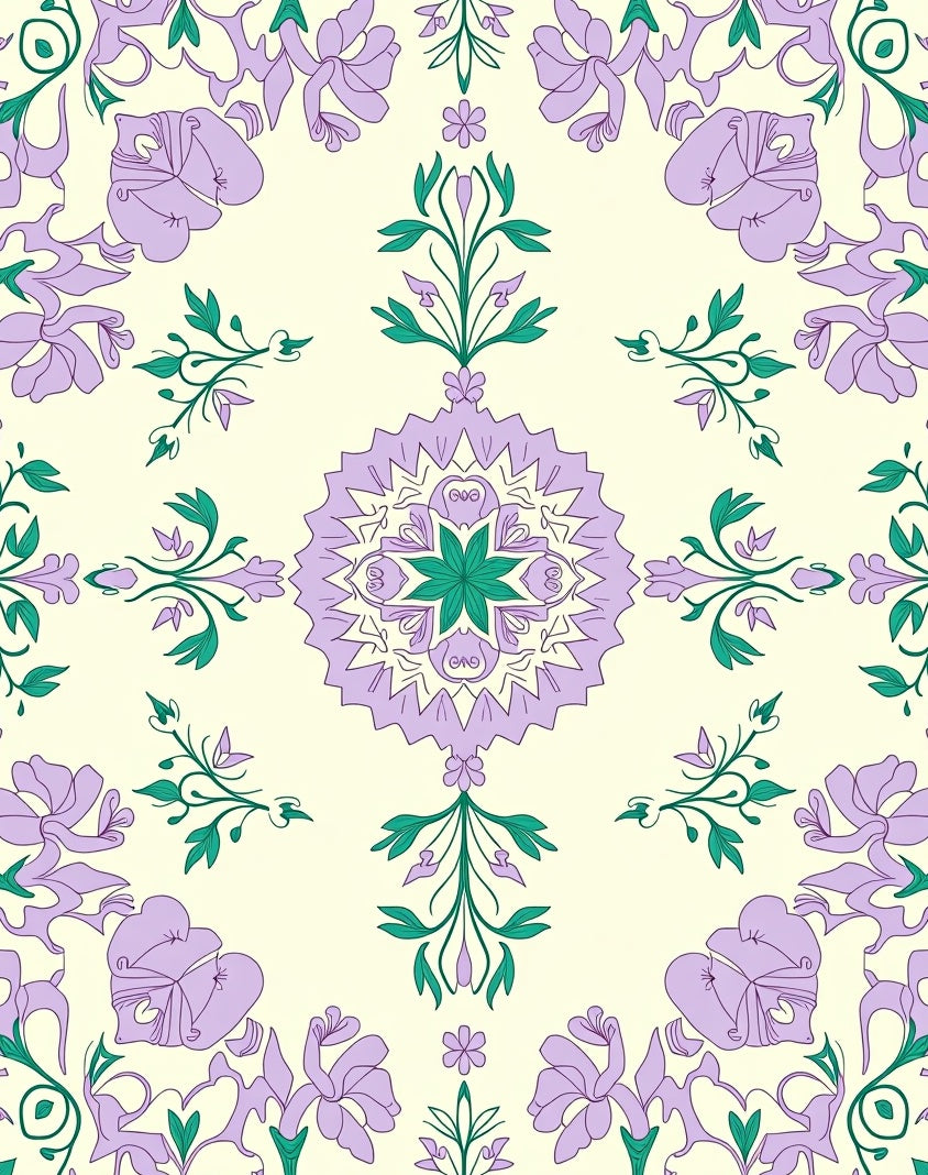 Elegant Oushak Inspired Floral Medallion with Intricate Vine Motifs(Purple)