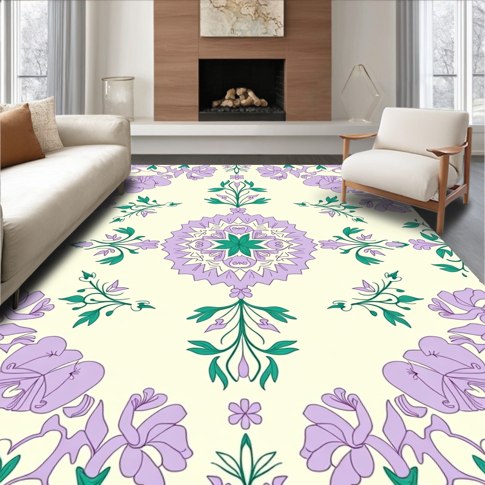 Flatwoven High Traffic Area Rug, Elegant Oushak Inspired Floral Medallion with Intricate Vine Motifs, Non Slip, Stain Resistant, Washable Area Rugs for Living Room, Bedroom (Purple) Overview: