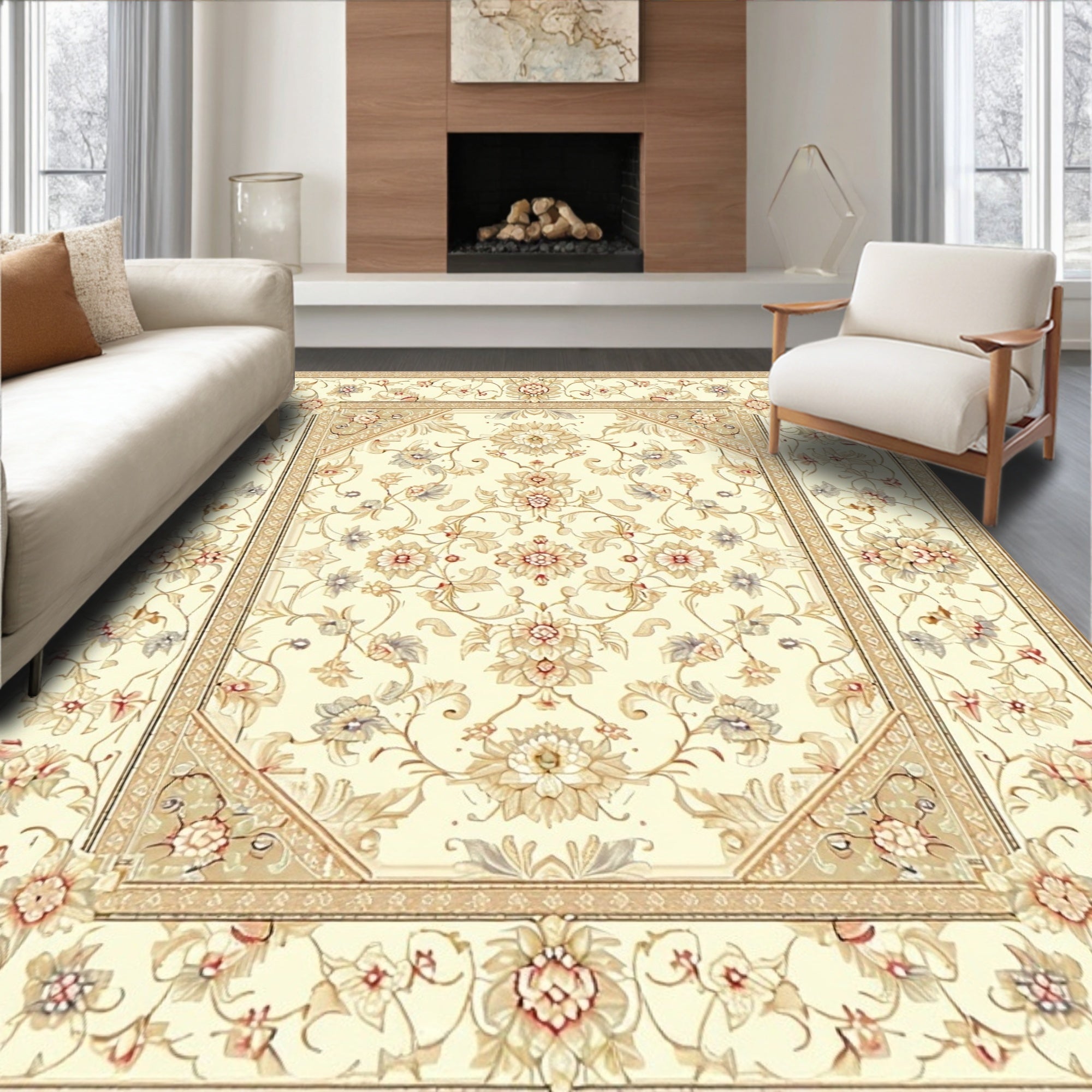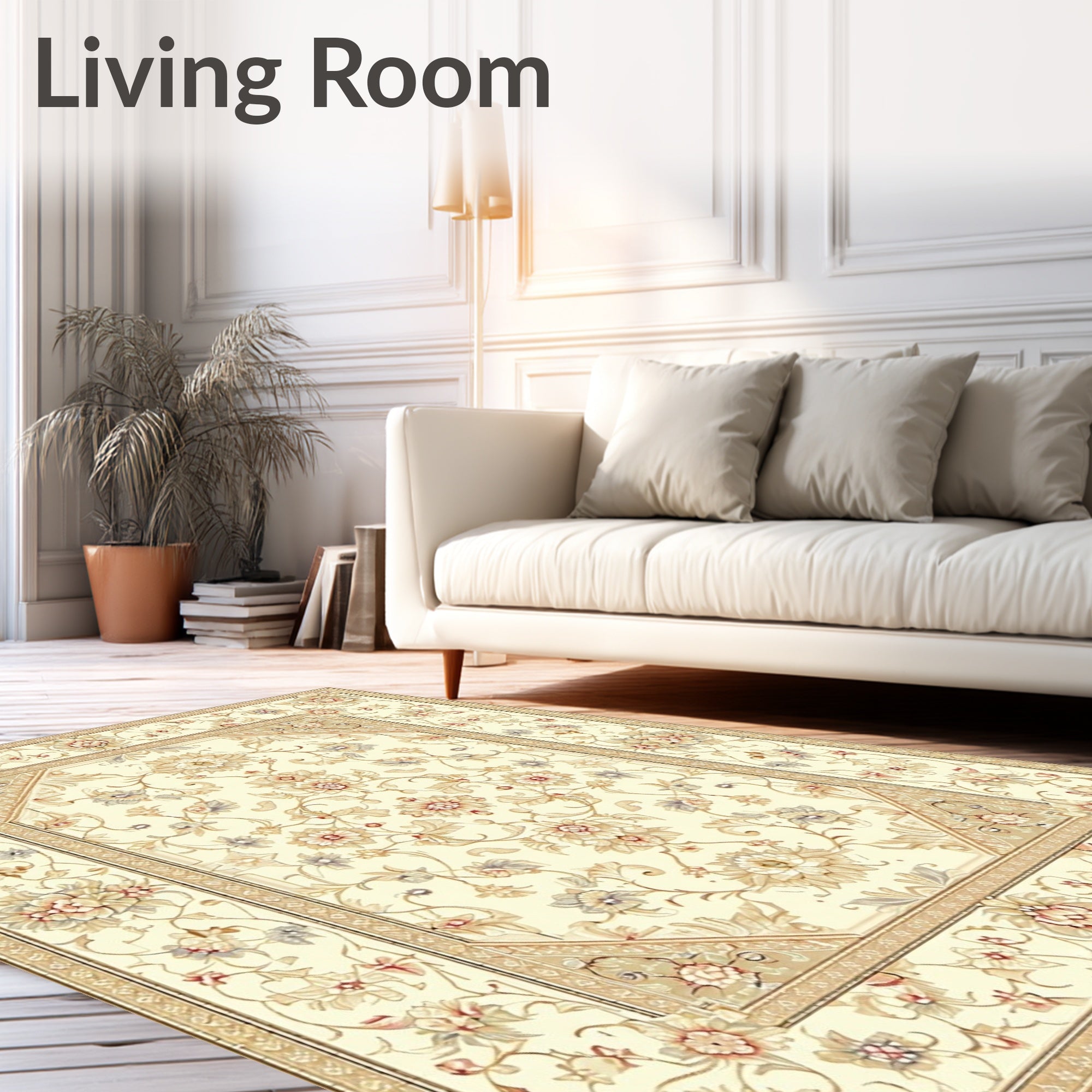 Ultra Soft Area Rug, Non Slip, Stain Resistant, Washable Area Rugs for Living Room, Bedroom, Elegant Oval Area Featuring Delicate Beige Ivory Medallion Motif(Beige) Overview: