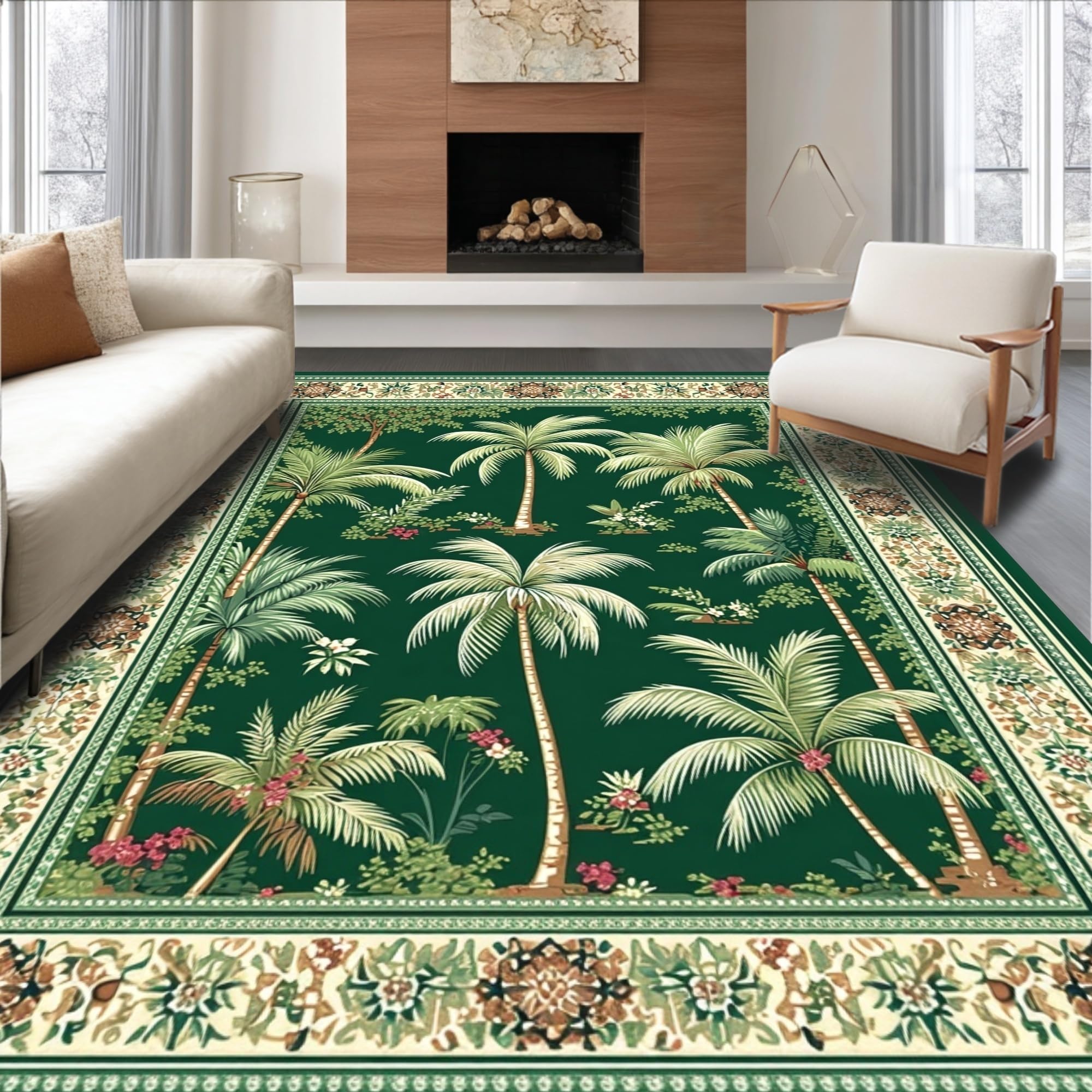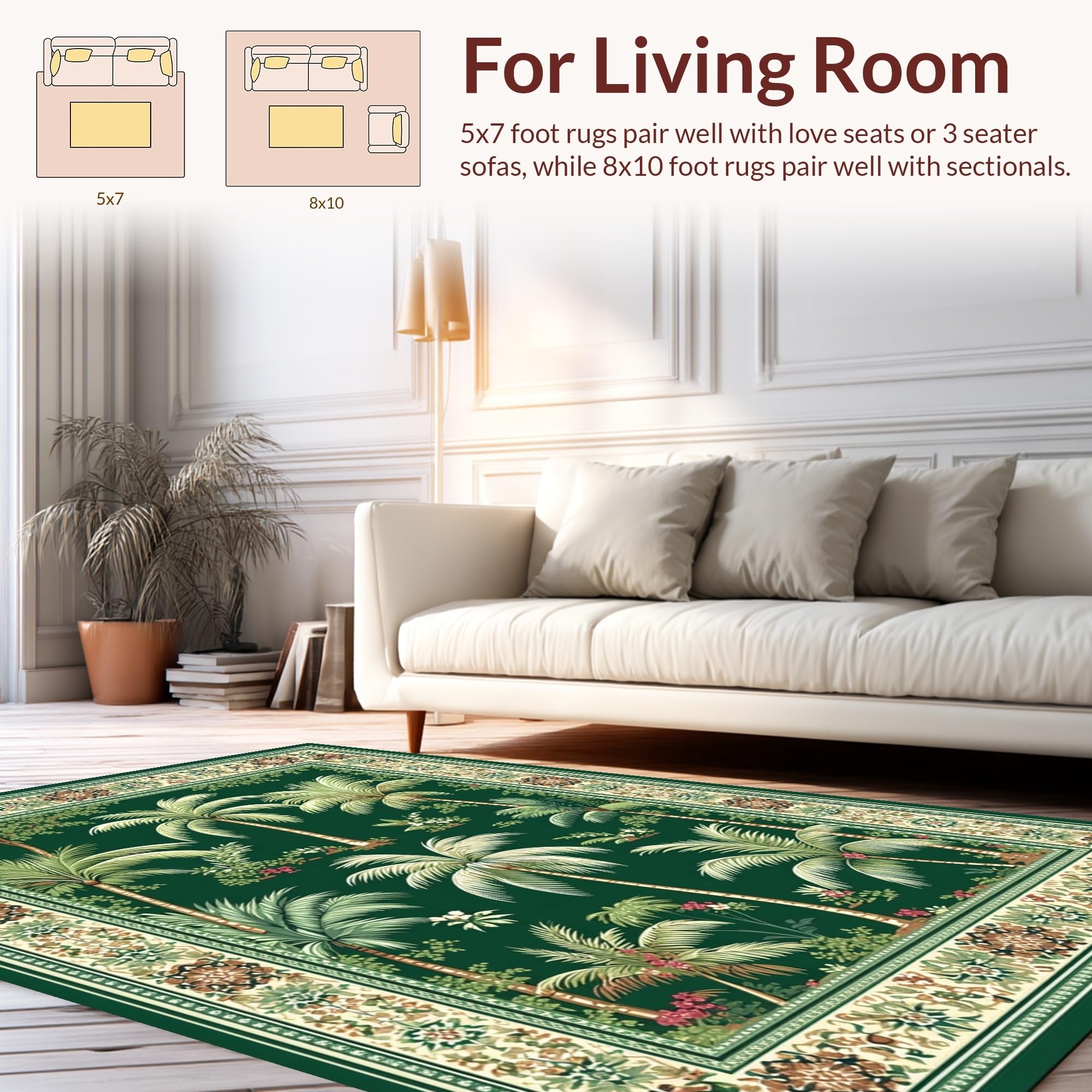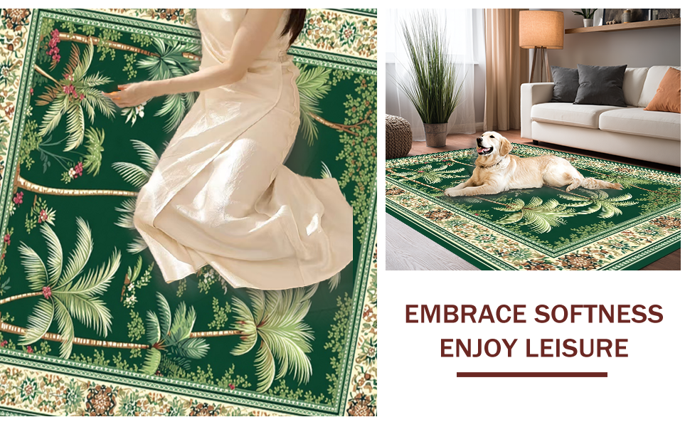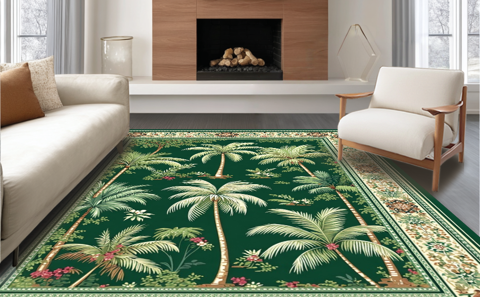 Ultra Soft Area Rug, Non Slip, Stain Resistant, Washable Area Rugs for Living Room, Bedroom, Elegant Palm Leaf Motif(Green) Overview: