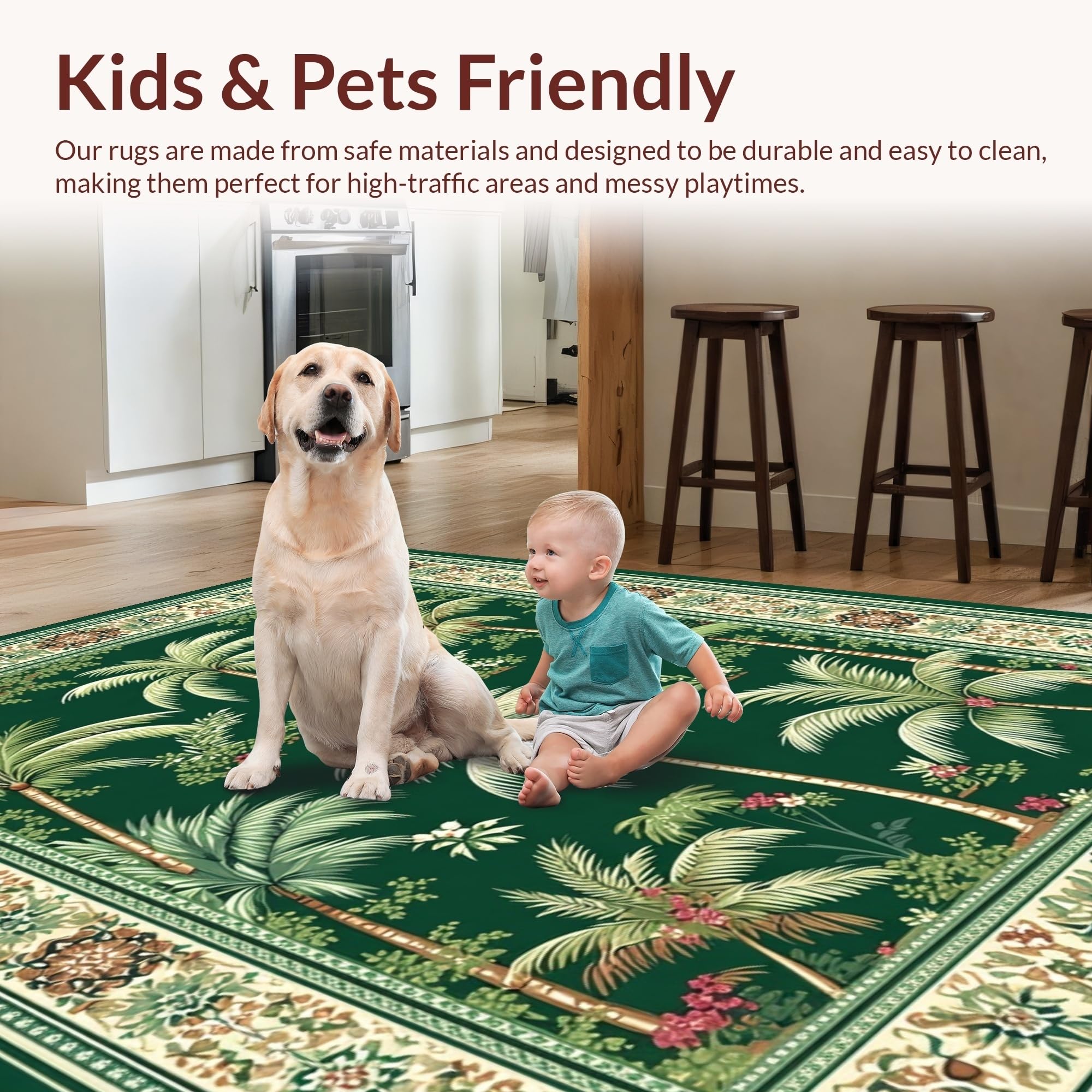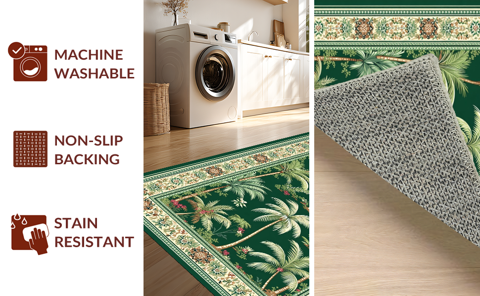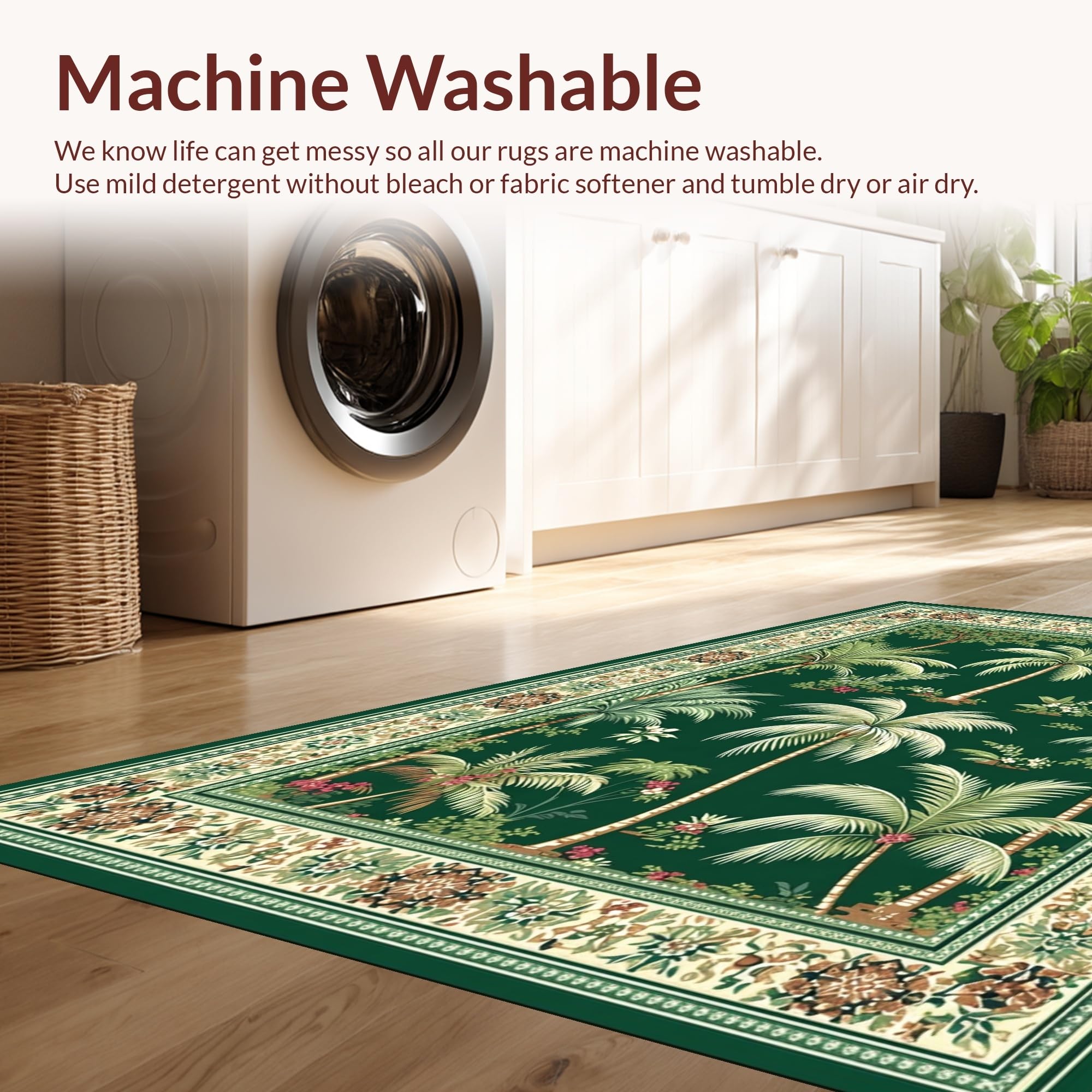 Ultra Soft Area Rug, Non Slip, Stain Resistant, Washable Area Rugs for Living Room, Bedroom, Elegant Palm Leaf Motif(Green) Overview: