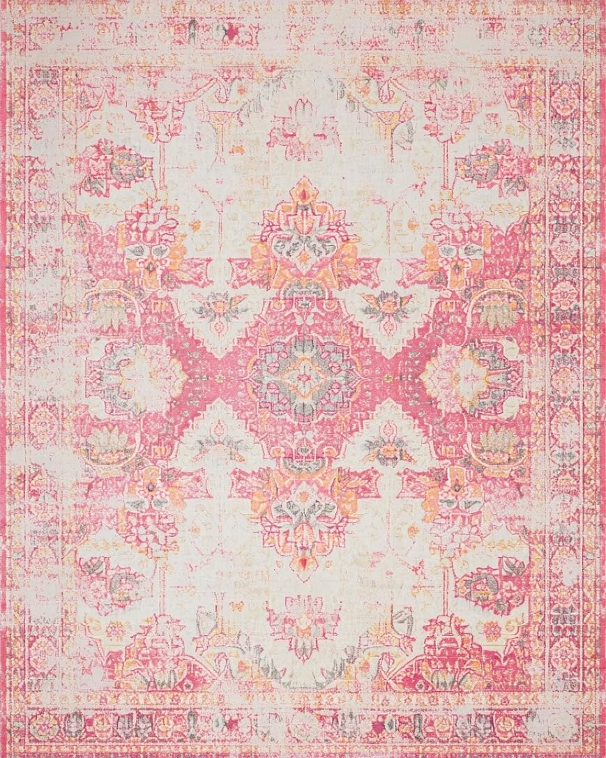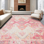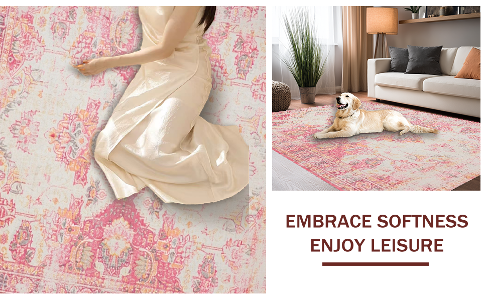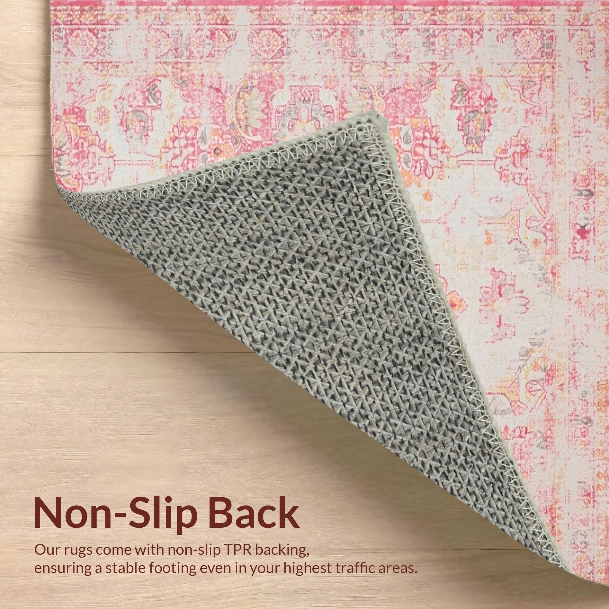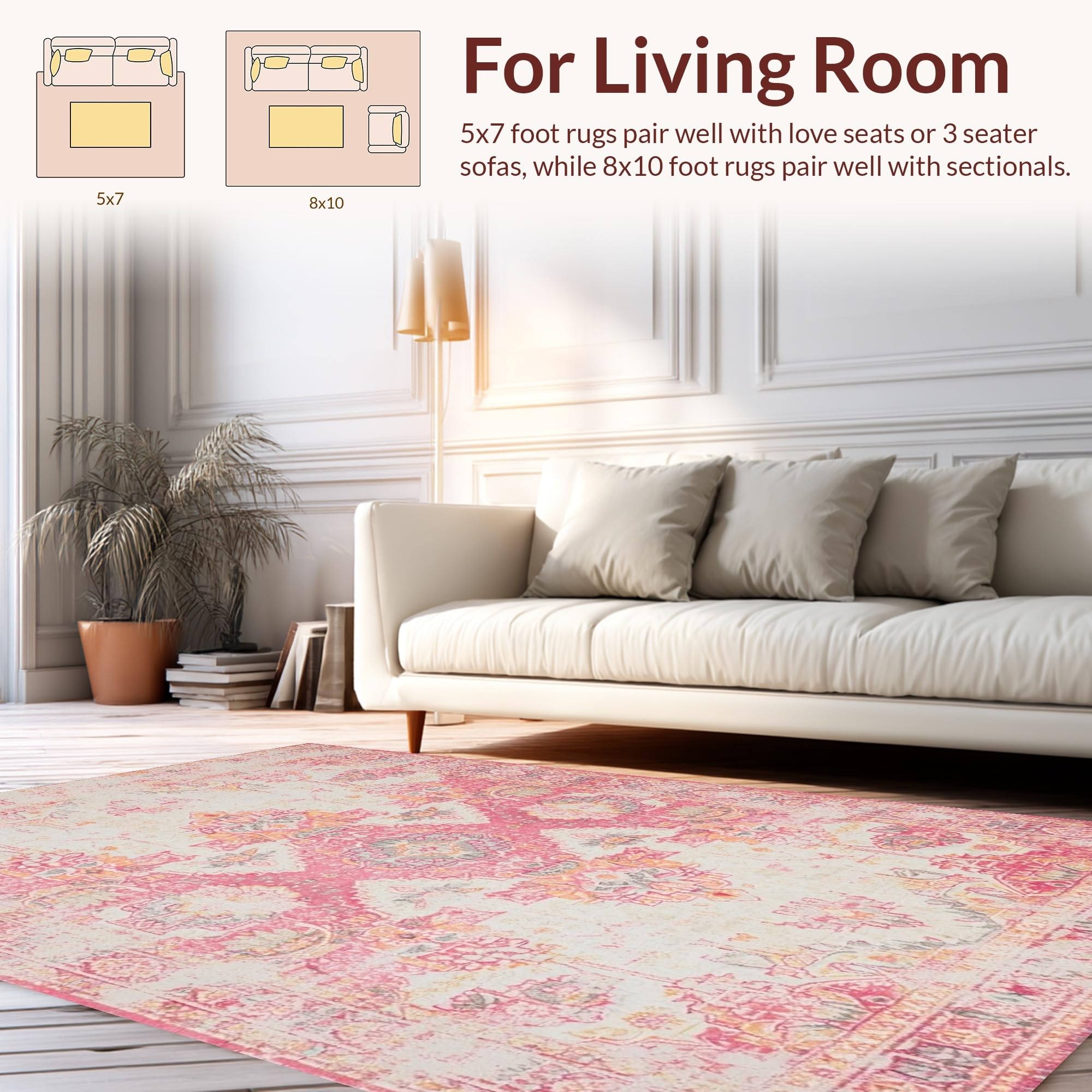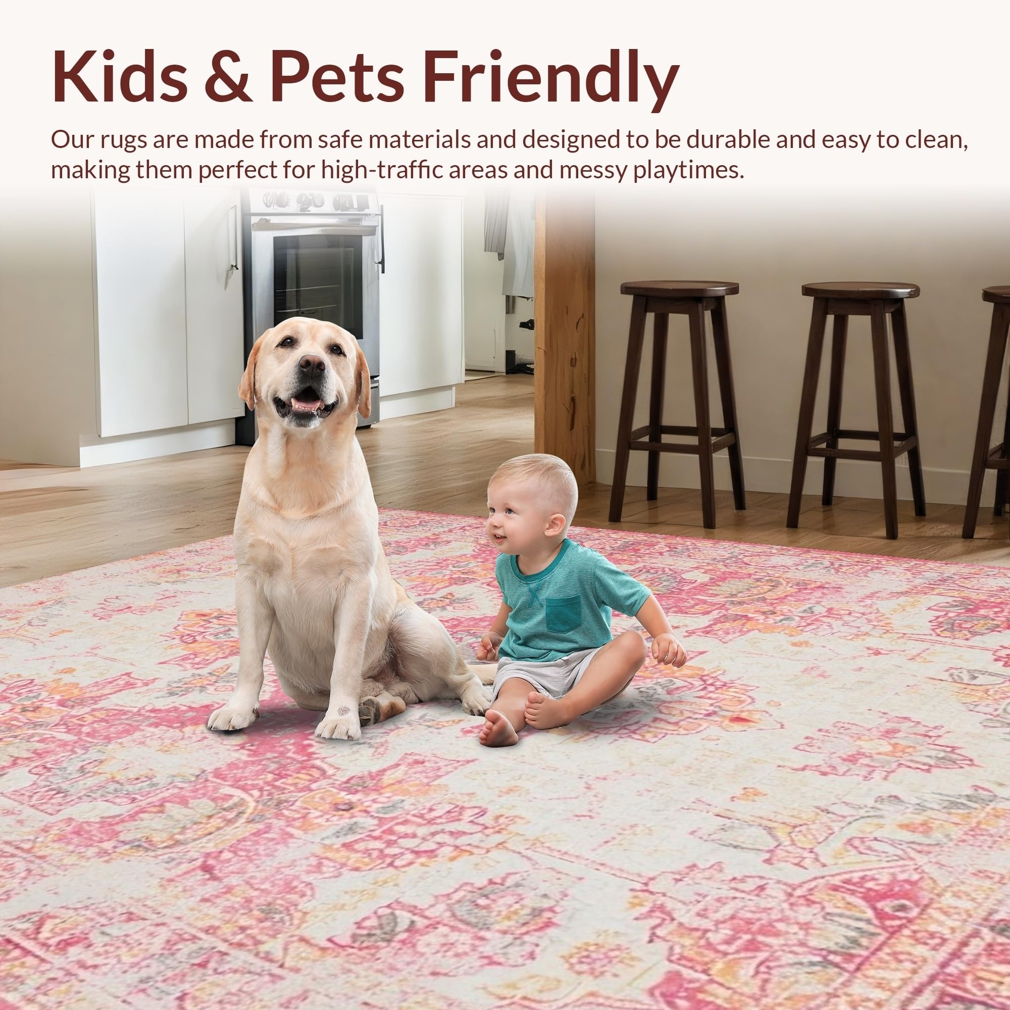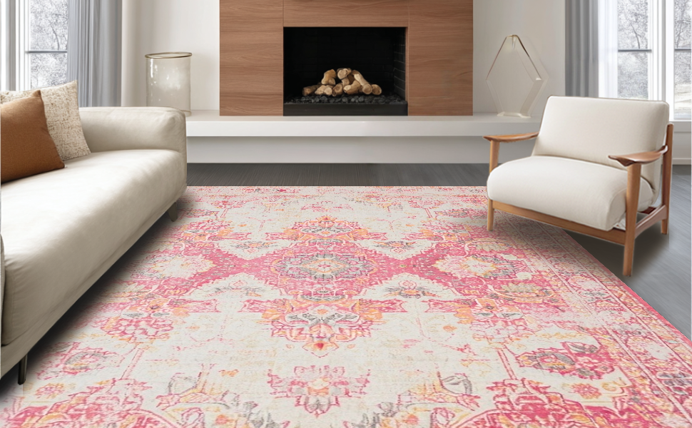 Ultra Soft Area Rug, Non Slip, Stain Resistant, Washable Area Rugs for Living Room, Bedroom, Elegant Pastel Distressed Motif(Pink) Overview: