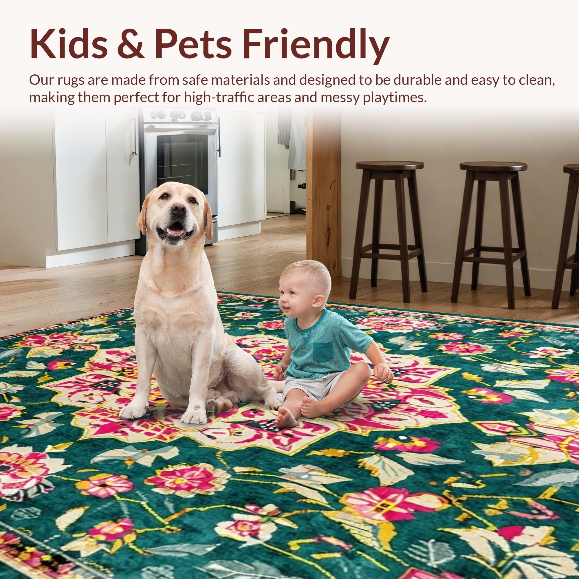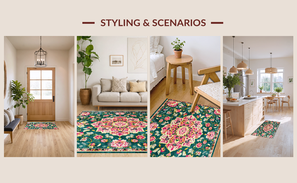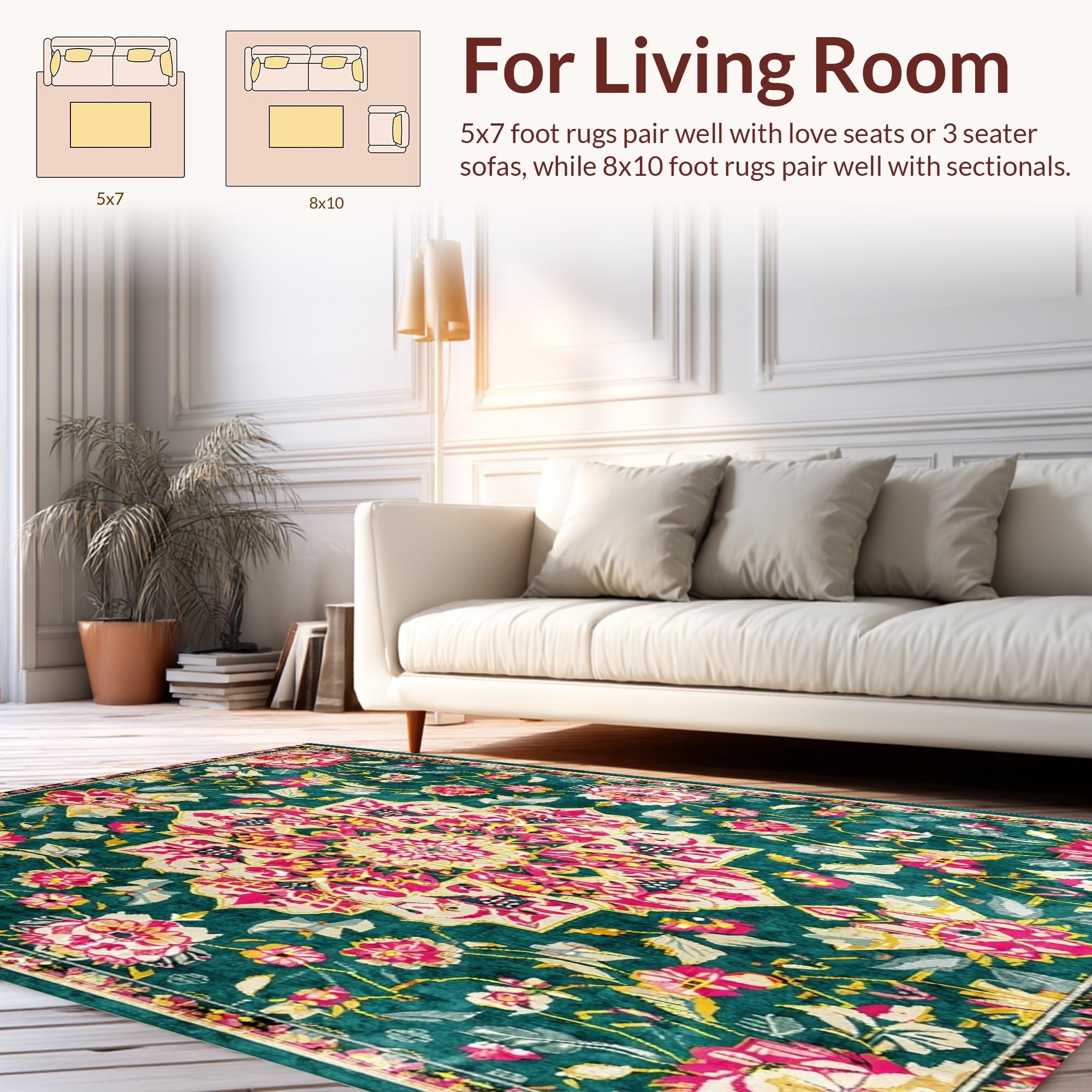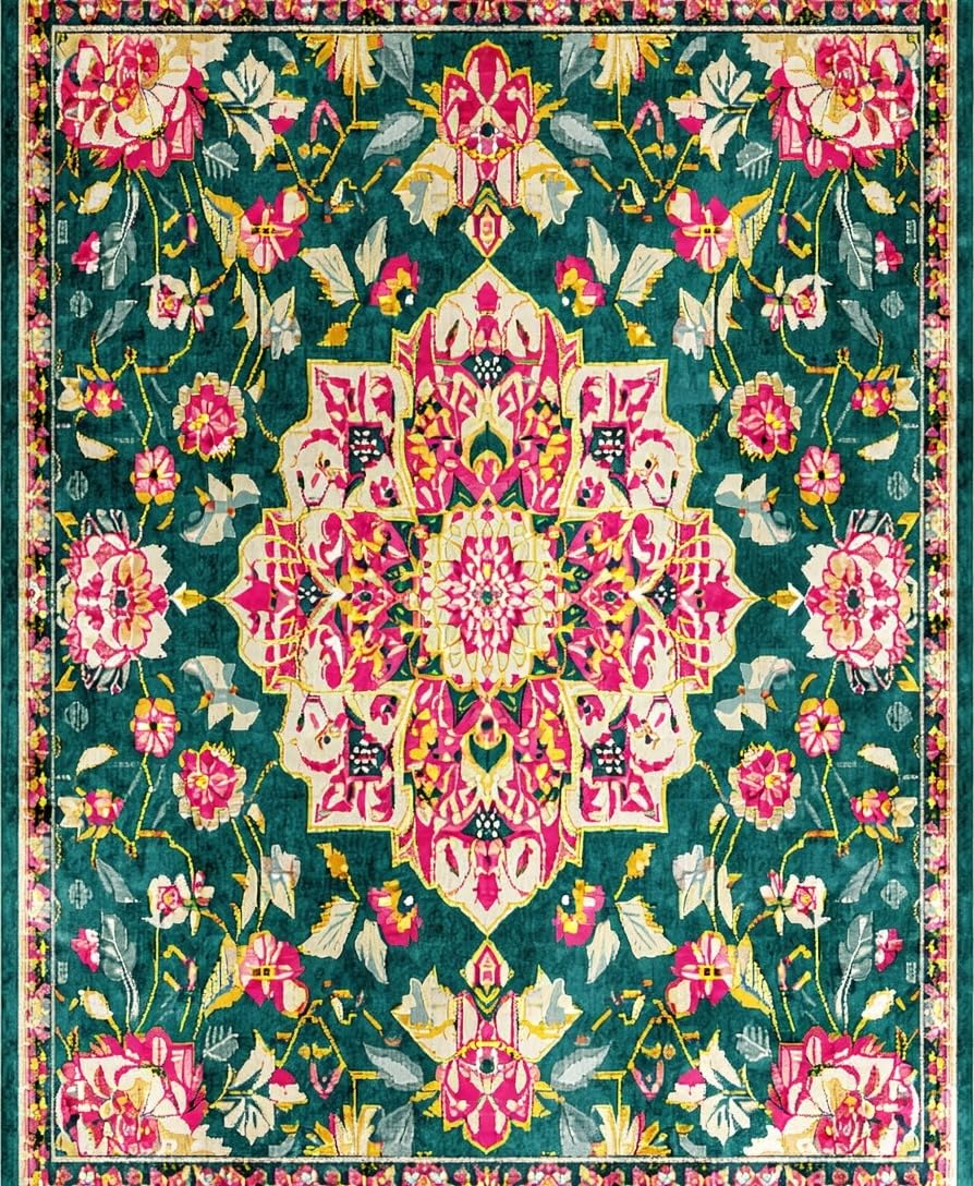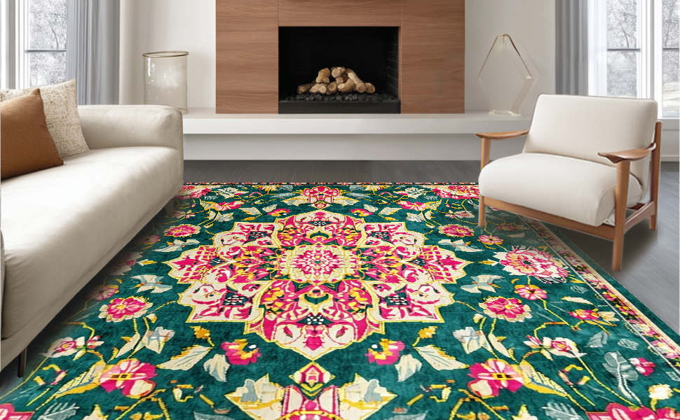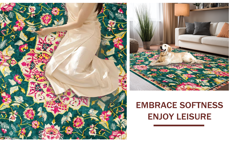 Ultra Soft Area Rug, Non Slip, Stain Resistant, Washable Area Rugs for Living Room, Bedroom, Elegant Pastel Floral Arrangement(Green) Overview: