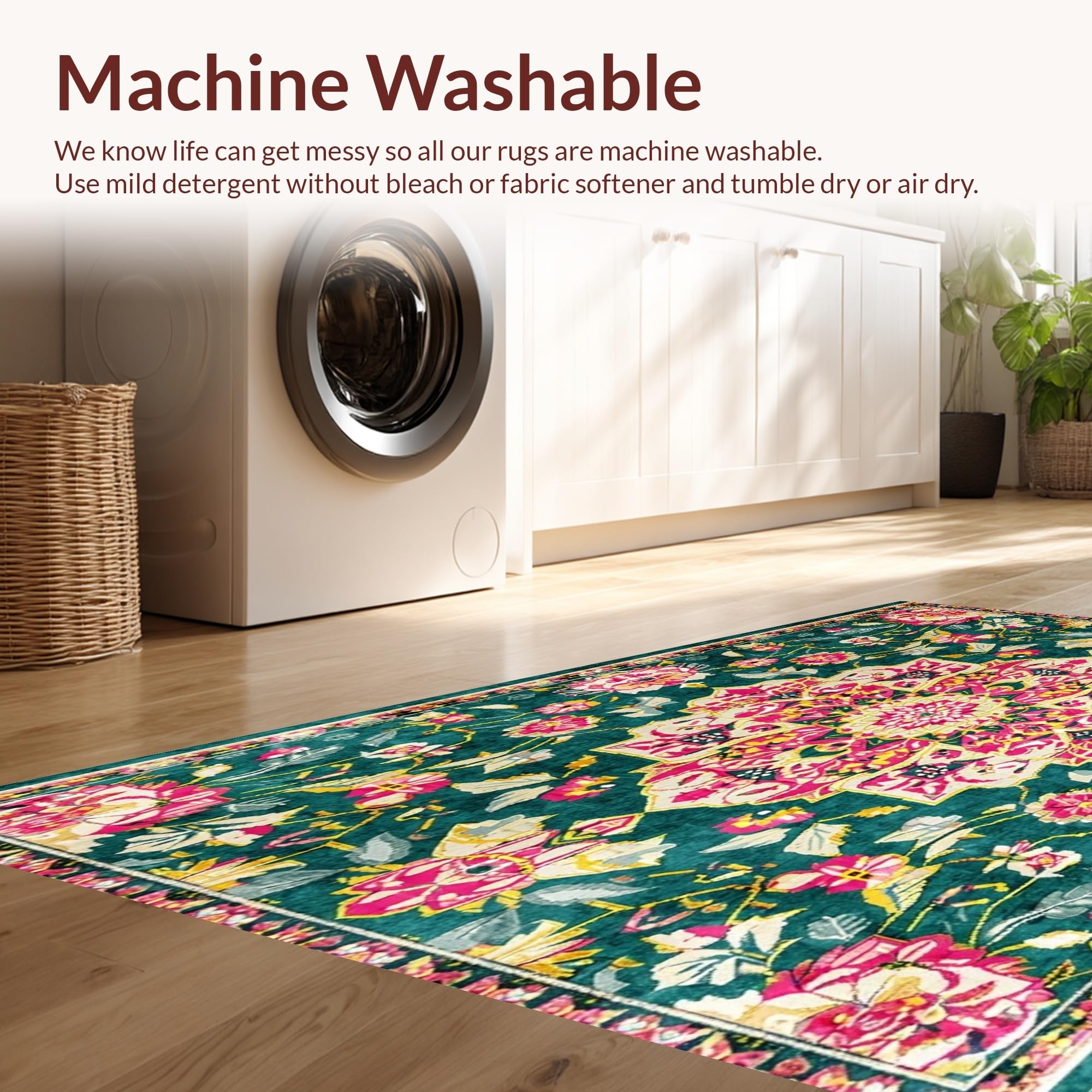 - Machine Washable: Our rugs can be easily thrown in the wash machine.