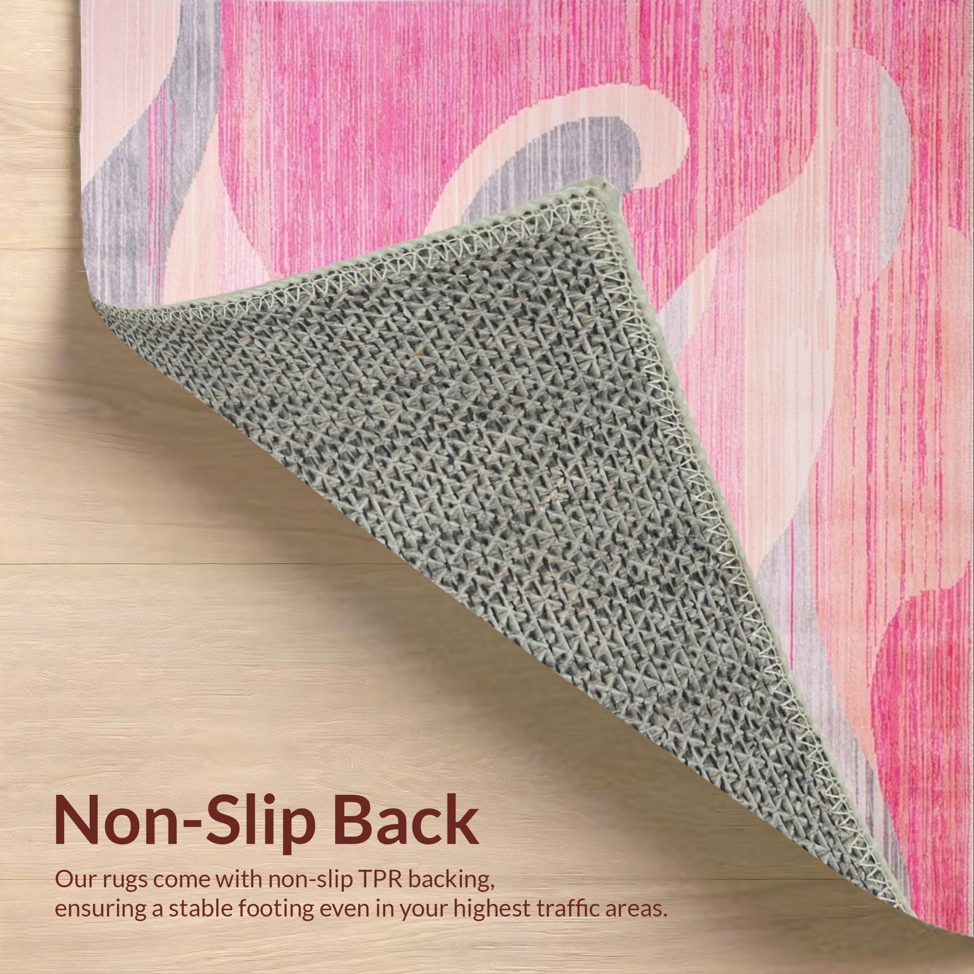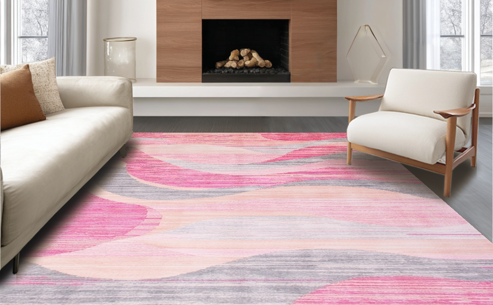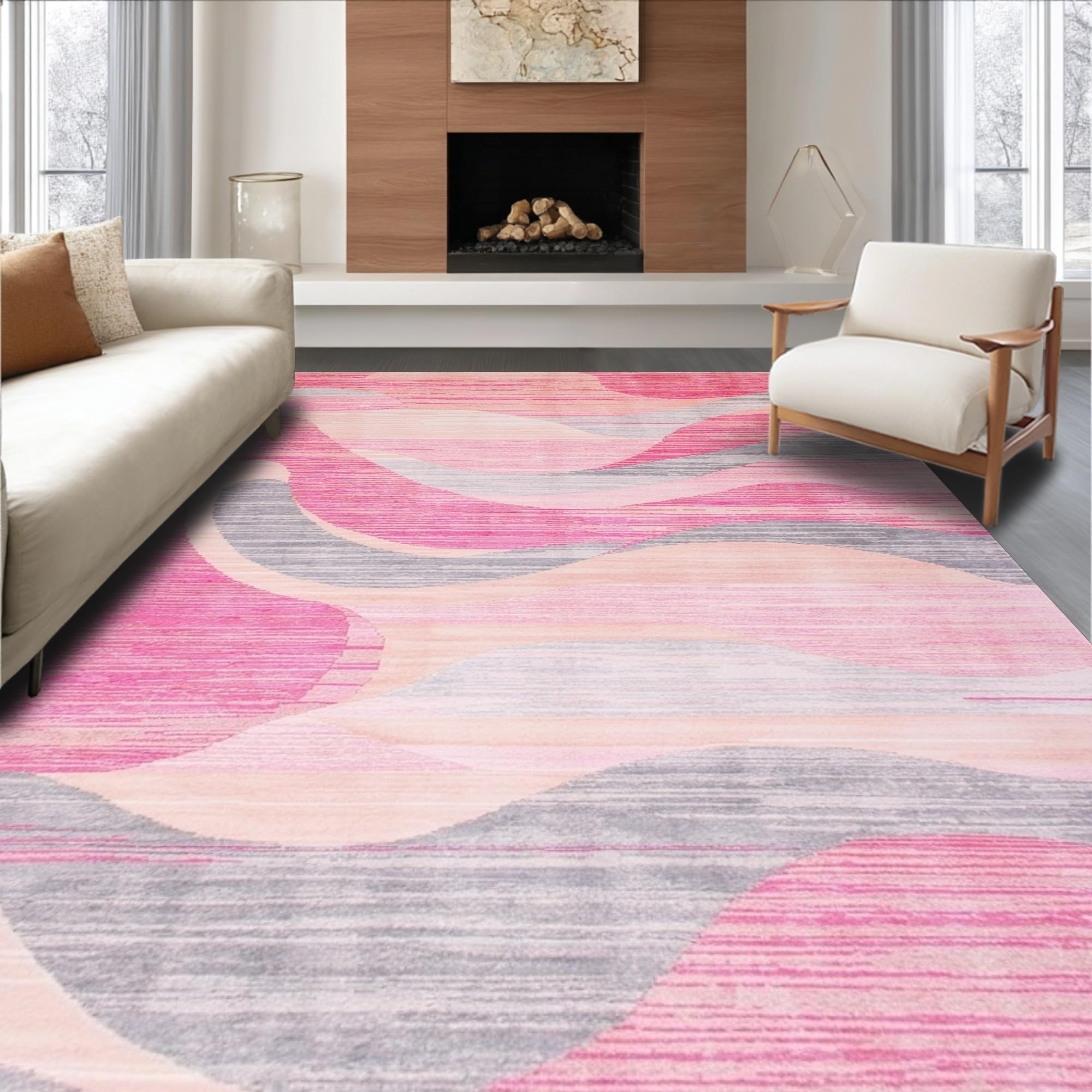 Ultra Soft Area Rug, Non Slip, Stain Resistant, Washable Area Rugs for Living Room, Bedroom, Elegant Pastel Fluid Design(Pink) Overview: