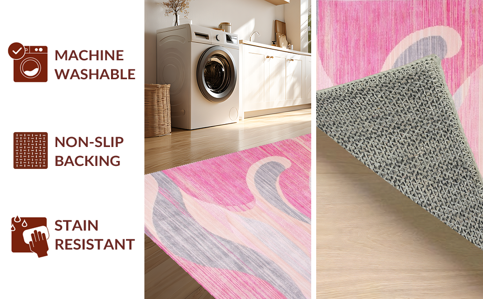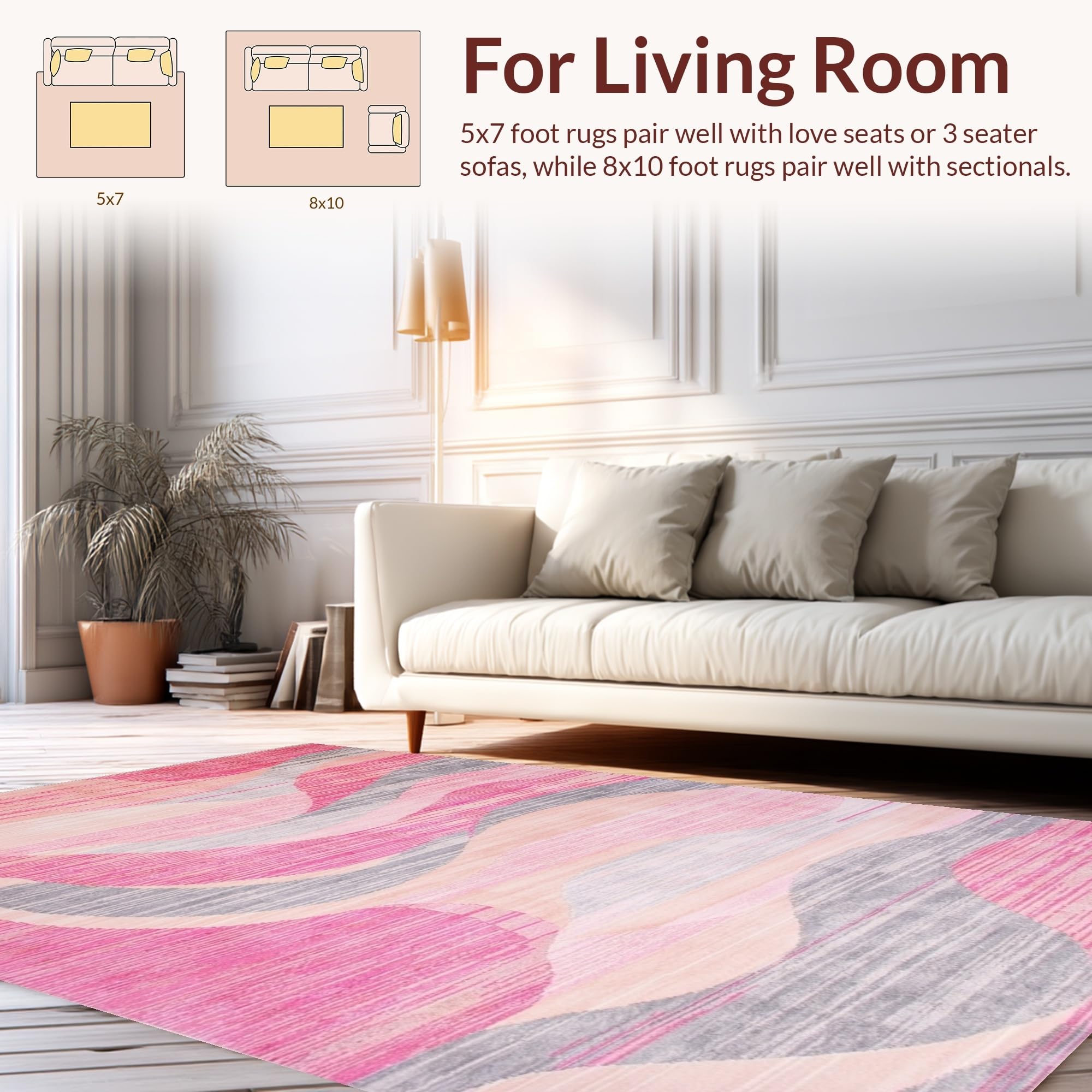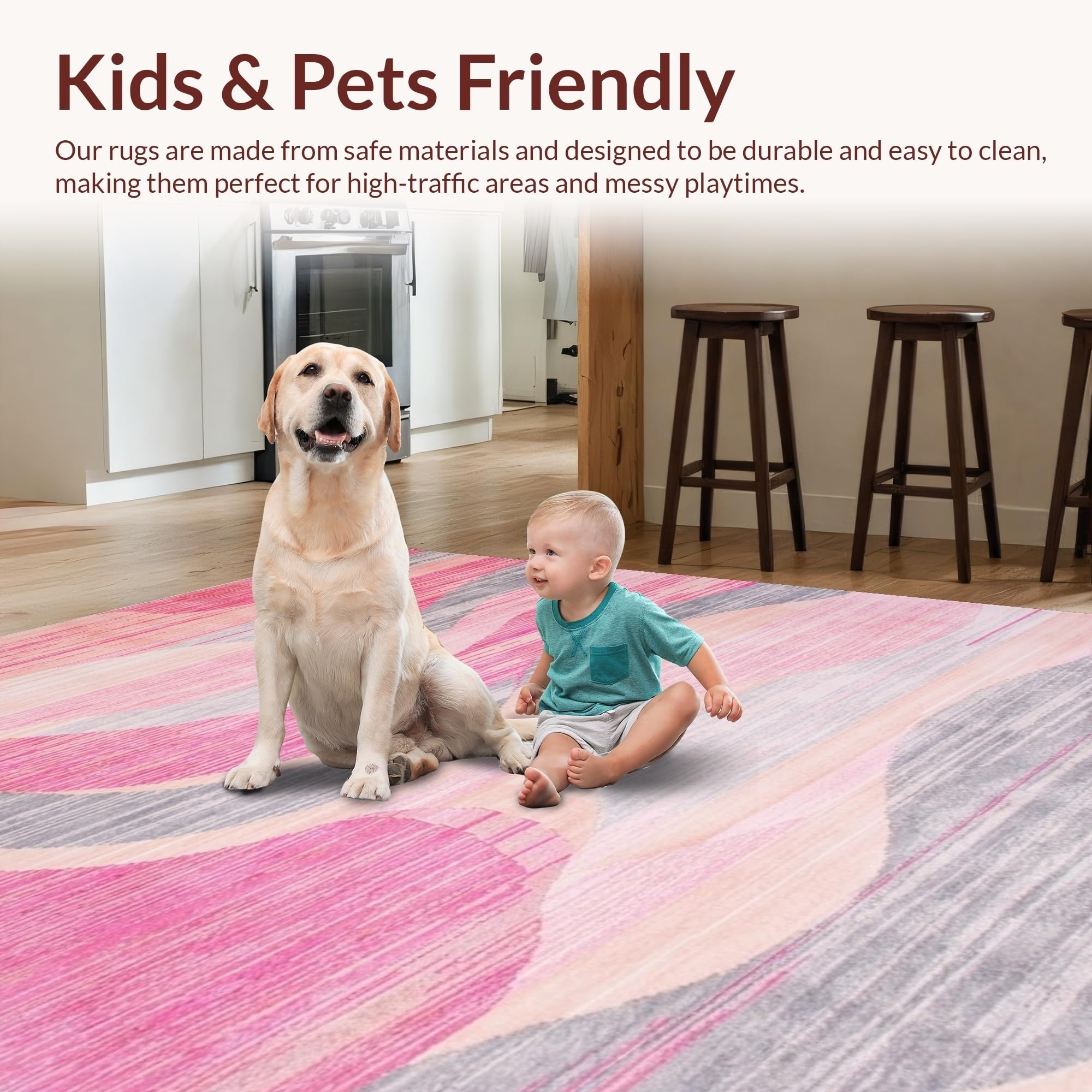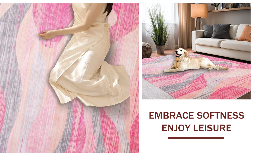 Ultra Soft Area Rug, Non Slip, Stain Resistant, Washable Area Rugs for Living Room, Bedroom, Elegant Pastel Fluid Design(Pink) Overview: