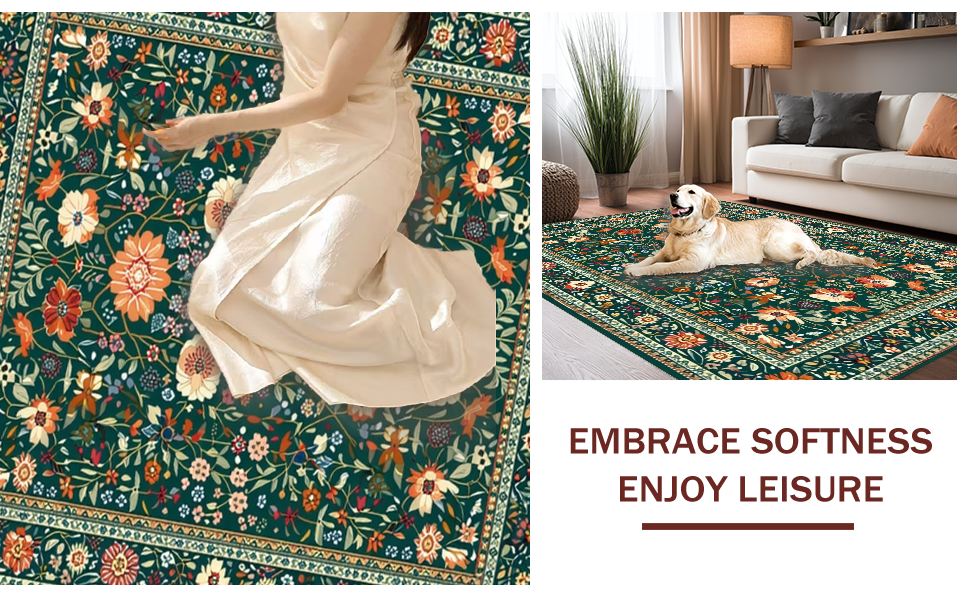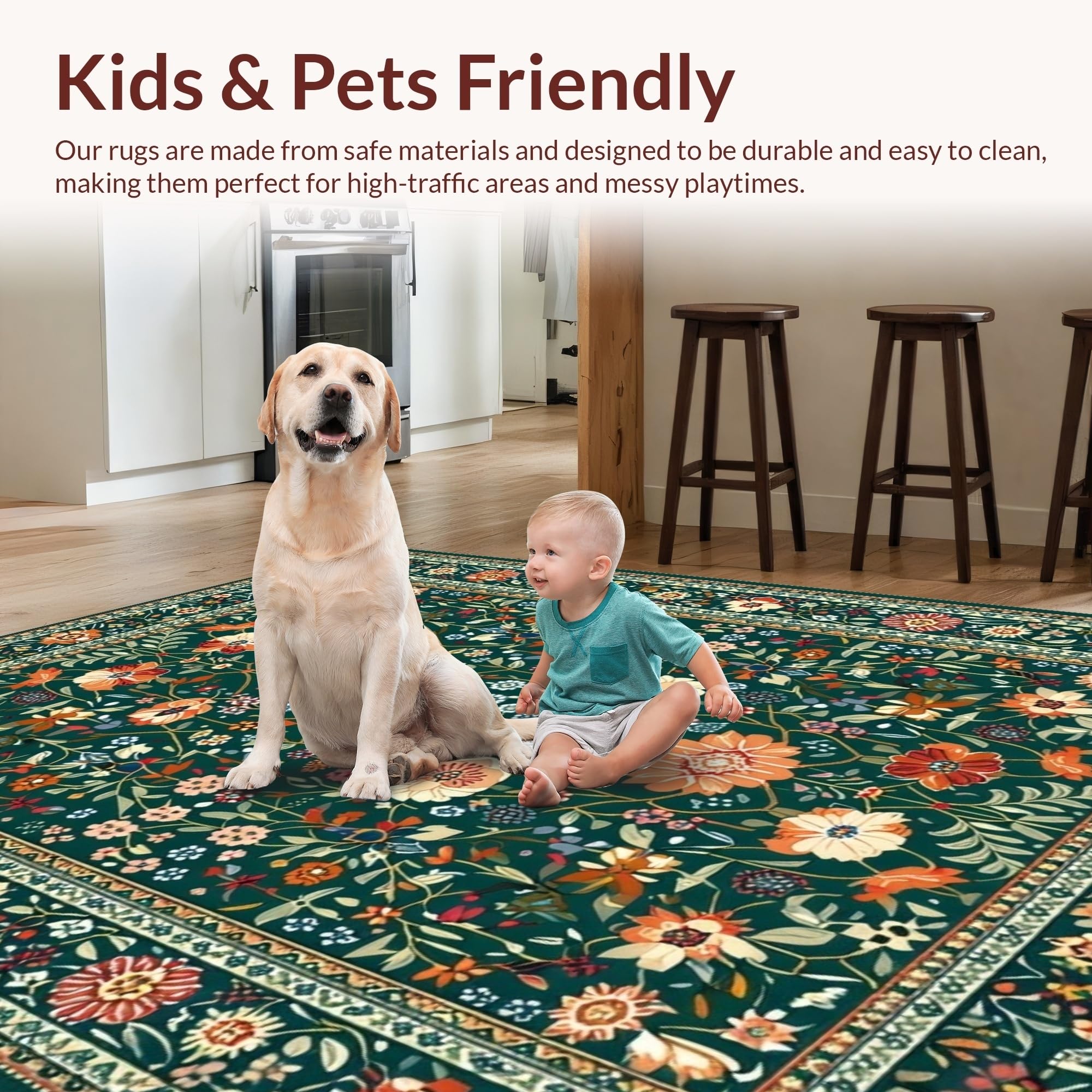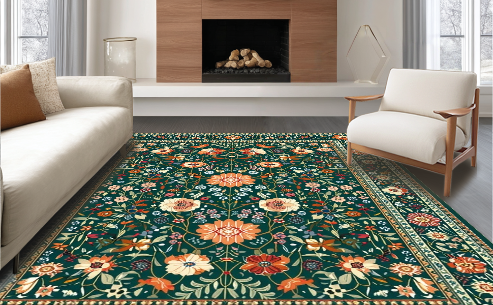 Ultra Soft Area Rug, Non Slip, Stain Resistant, Washable Area Rugs for Living Room, Bedroom, Elegant Pastel Geometric Fusion(Green) Overview: