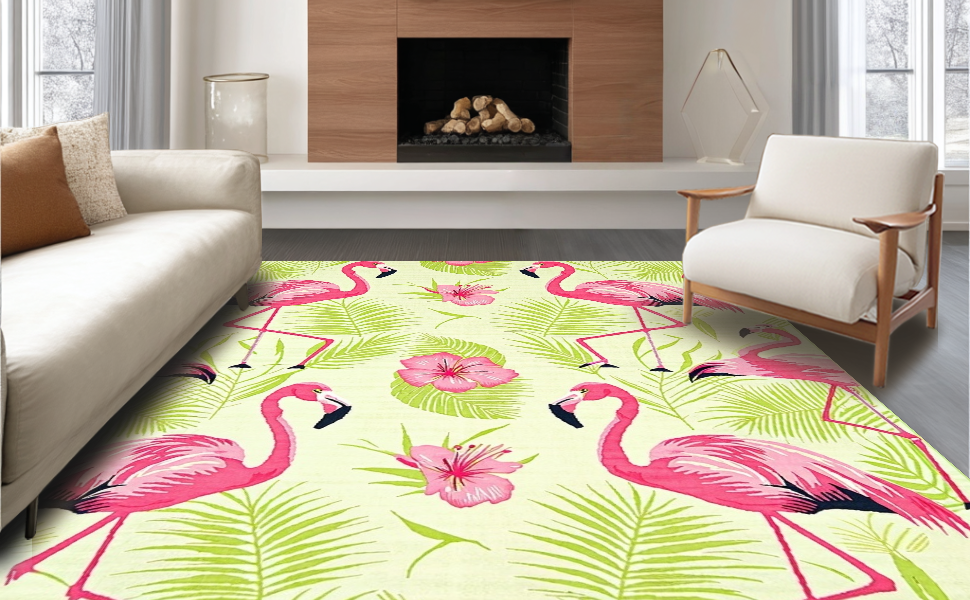 Ultra Soft Area Rug, Non Slip, Stain Resistant, Washable Area Rugs for Living Room, Bedroom, Elegant Pastel Nature Motif(Pink) Overview: