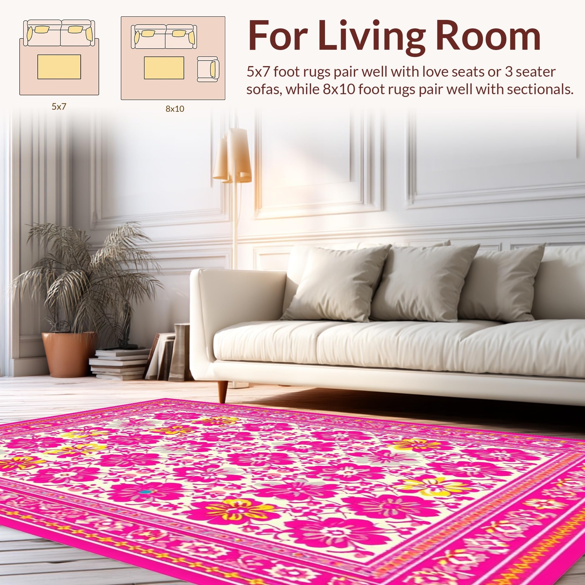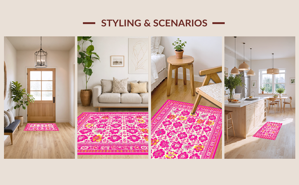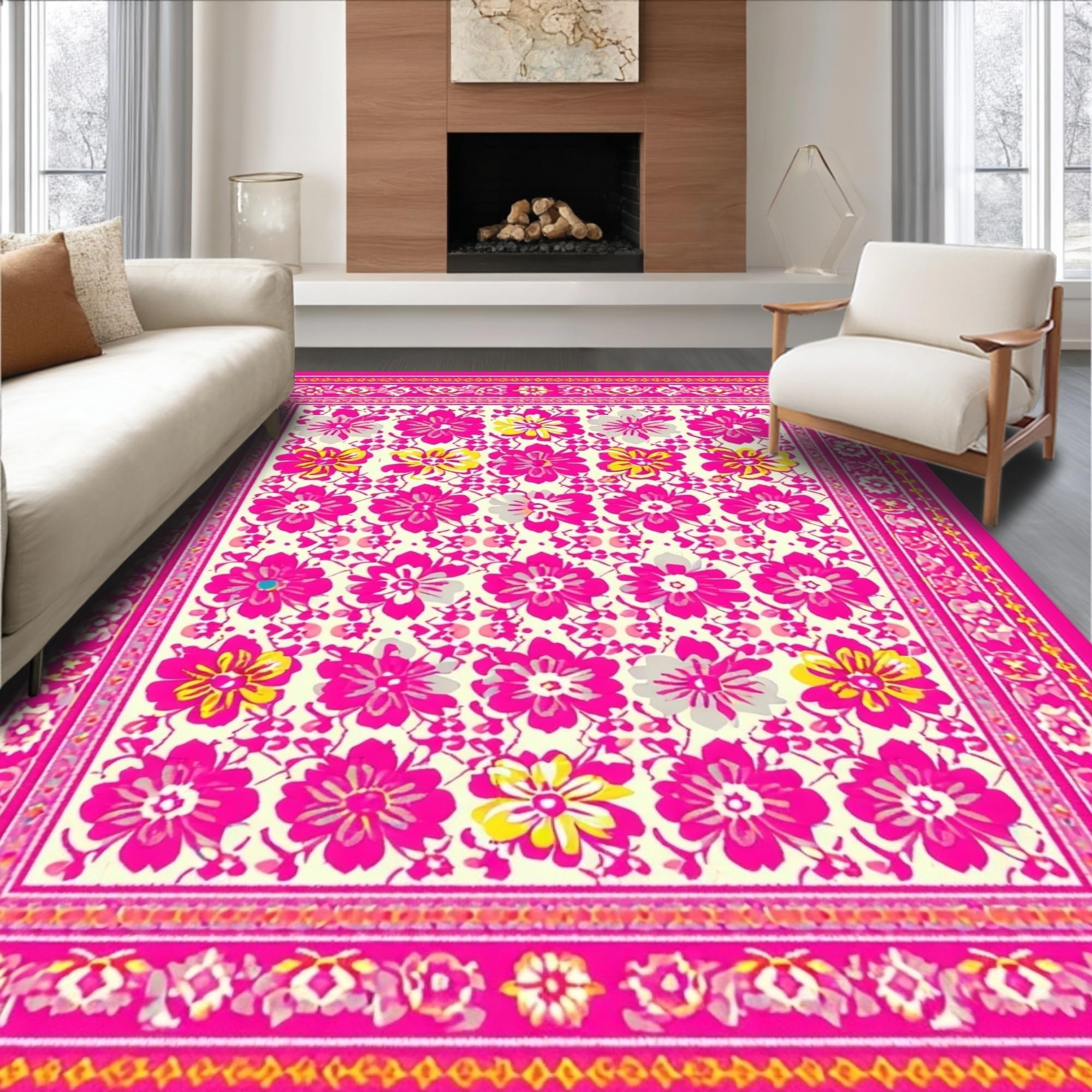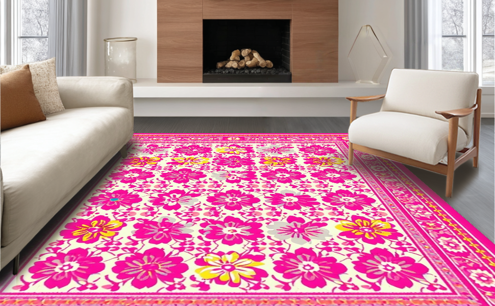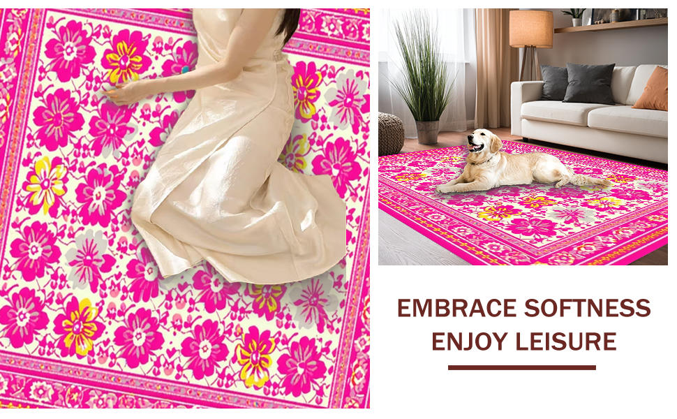 Ultra Soft Area Rug, Non Slip, Stain Resistant, Washable Area Rugs for Living Room, Bedroom, Elegant Pastel Petal Arrangement(Pink) Overview: